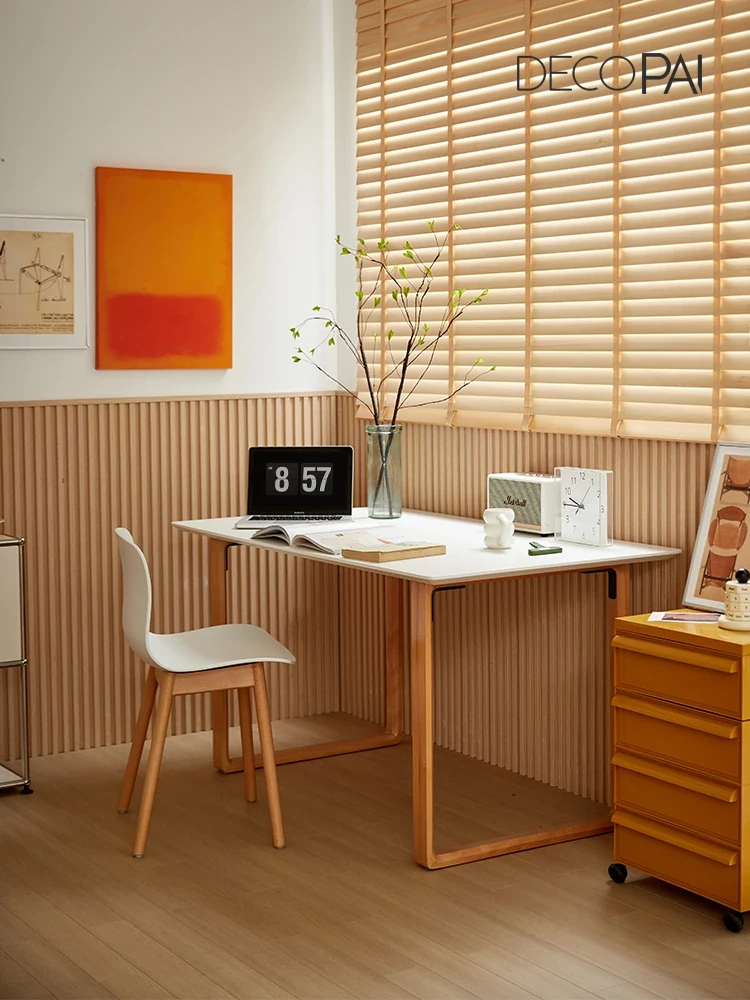 フランス風クリームデザインのシンプルなスタディデスク、インスタ映えする一人用学習デスク。寝室や書斎にぴったり!小型の家でも使えるスタイリッシュなオフィスデスクです。