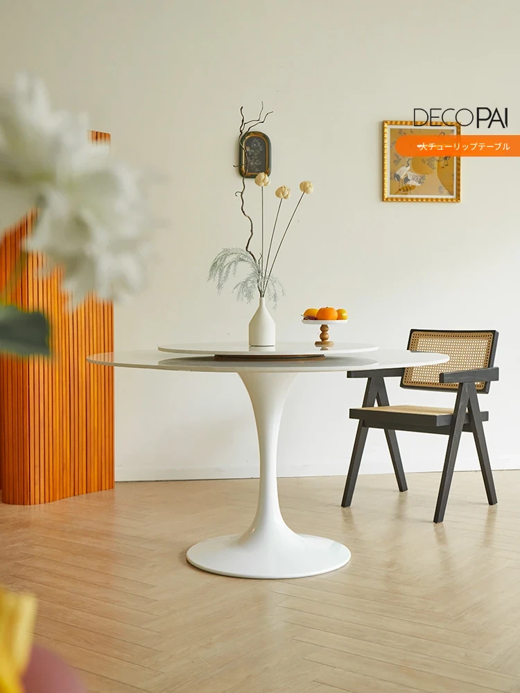 ホワイト岩板ダイニングテーブル|北欧風モダンデザイン|小スペース向けの人気ラウンドテーブル|家庭用|スタイリッシュな食事空間を演出!