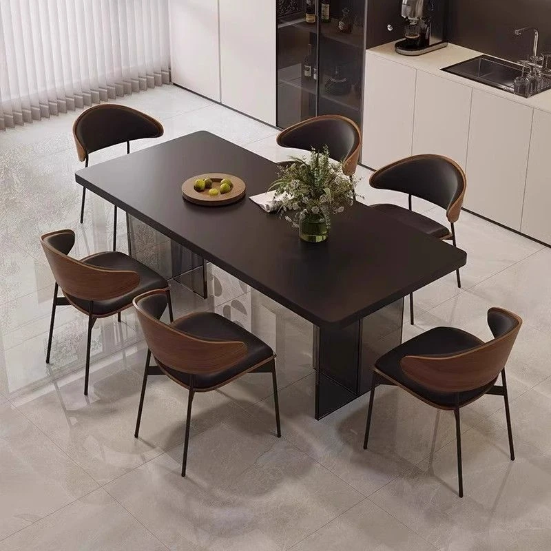 新作!飾派家具 洞石岩板テーブルセット - 小さなスペースでも映える、スタイリッシュな長方形ダイニングテーブル。レストランやリビングに最適な中古風デザインで、家庭用にもぴったりです!