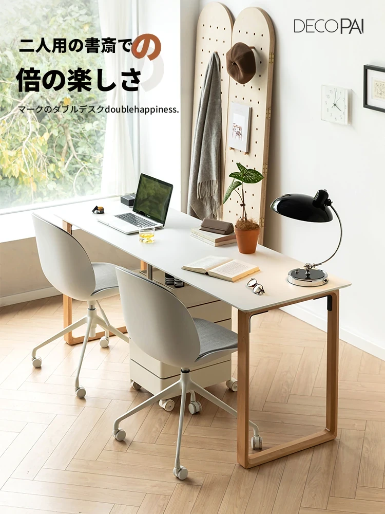 デザイン派家具 ダブルデスク 多バイン材使用 シンプルでスタイリッシュなロングテーブル リビングにも最適なミニマルオフィスデスク 大型ワークスペースに最適