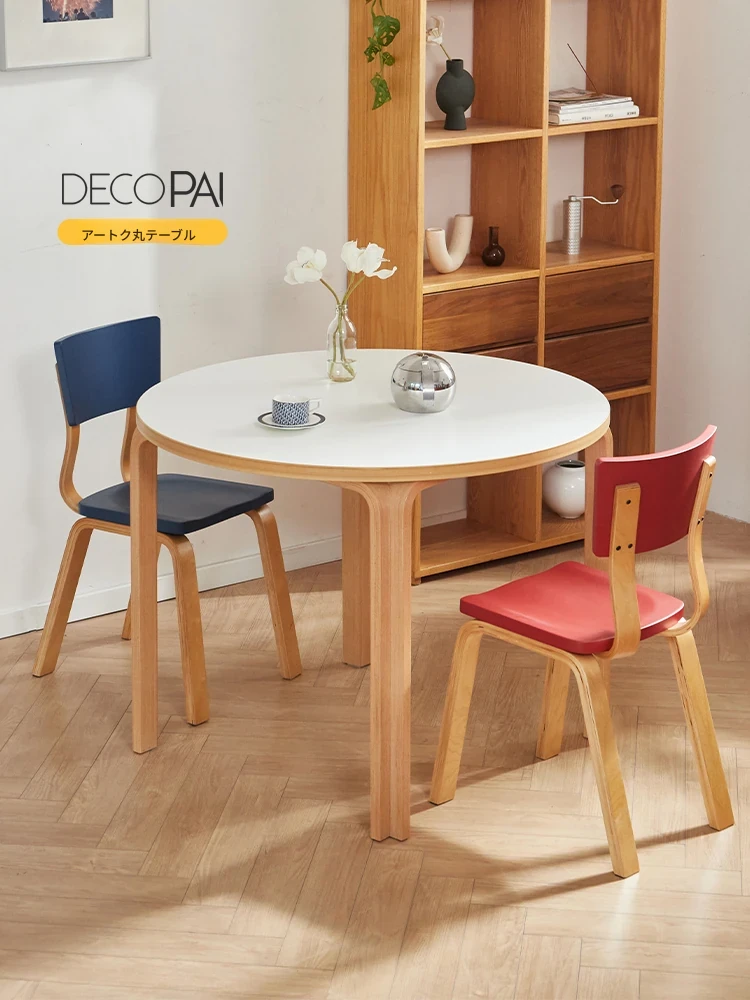 北欧風のモダンデザイン!小さな家にぴったりな円形ダイニングテーブルセット。シンプルでスタイリッシュな白い天然木製テーブルと椅子の組み合わせで、食事の時間を特別に演出します。