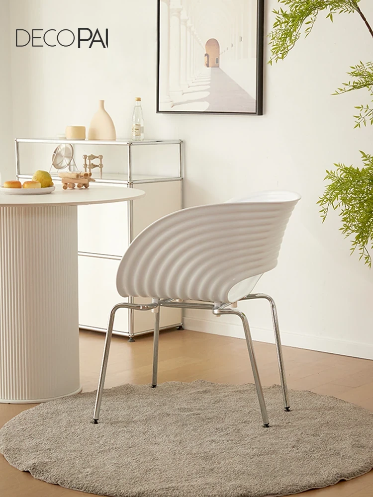White Shell Chair - Retro Nordic Dining Chair, Minimalist Plastic Desk Chair, Trendy INS Meeting Chair for Stylish Spaces