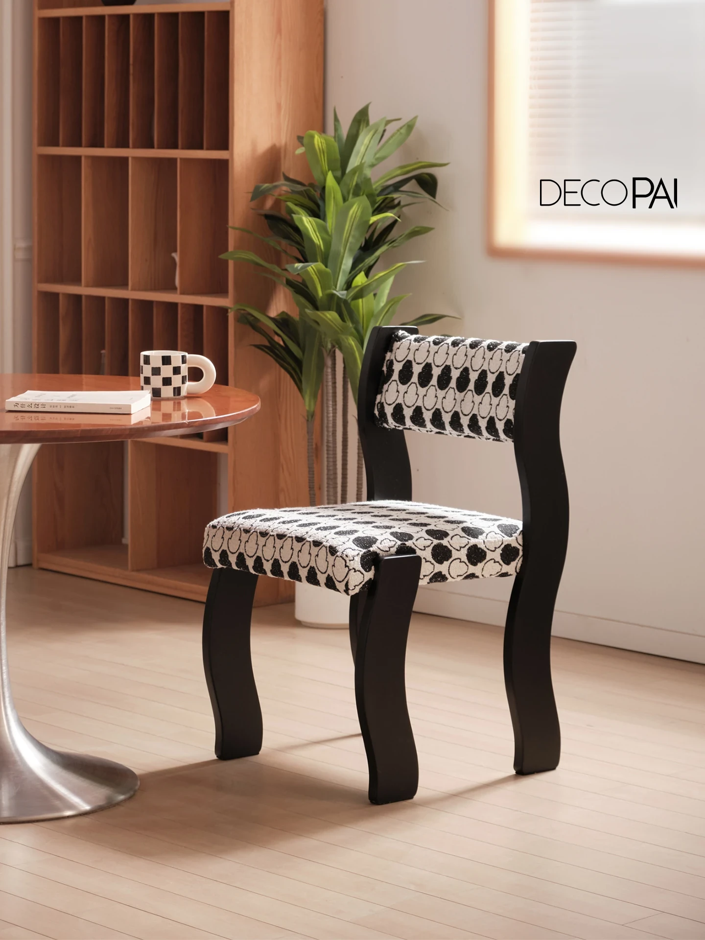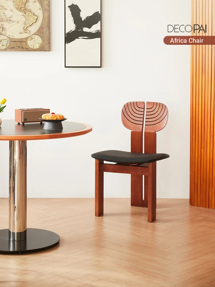 Vintage Solid Wood Designer Chair - Unique Shaped Backrest Dining Stool for Home Use, Bohemian Wabi-Sabi Style, Perfect for Retro Decor and Cozy Dining Experiences