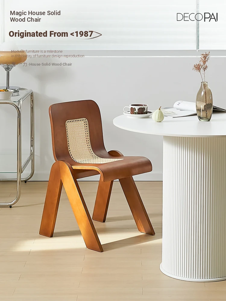 Vintage Rattan Dining Chair - Solid Wood Backrest for Home Use, Perfect for Balconies and Small Spaces, Stylish Ins-inspired Leisure Chair, Ideal for Study Desks and Cozy Nooks!