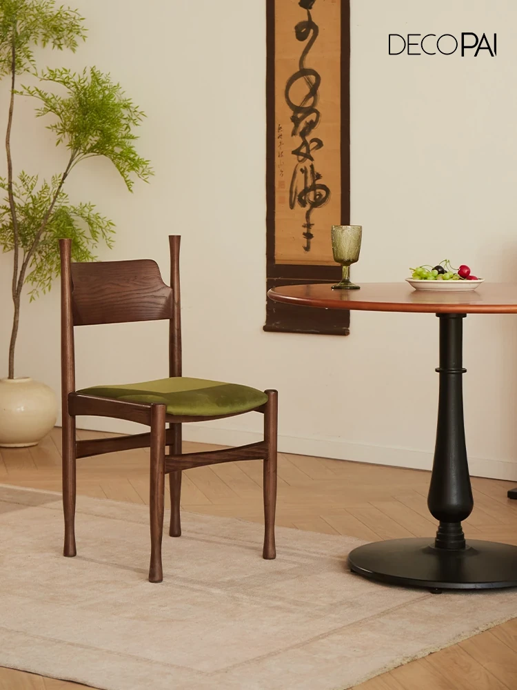 Vintage Style Solid Wood Dining Chair with Soft Cushion - Ideal for Home, Dining Room, or Study Desk - Retro Single Backrest Chair for Comfort and Elegance