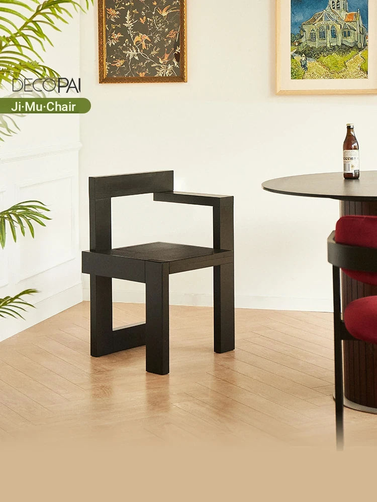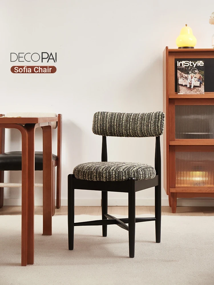 French Minimalist Solid Wood Dining Chair - Stylish and Comfortable Vintage Design for Small Spaces - Perfect for Home Use and Trendy Dining Rooms
