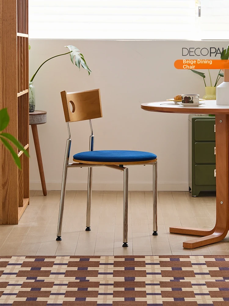 Vintage-Inspired Single Dining Chair with Backrest - Modern Minimalist Stainless Steel for Home Use, Perfect for Trendy Interiors!