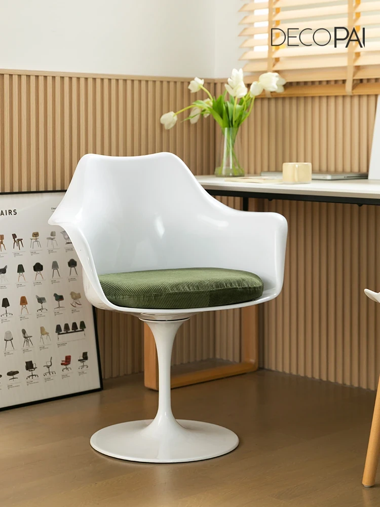 Nordic Minimalist White Swivel Chair with Armrests - Trendy Computer Desk Chair with Backrest, Perfect for Bedroom Makeup or Study - Tulip Design