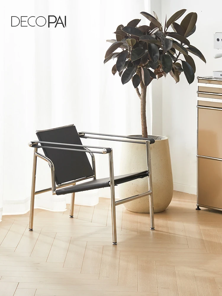 Designer's LC1 Basculant Chair - Stylish Armchair for Home and Balcony, Relax in Bauhaus-Inspired Stainless Steel Single Seat