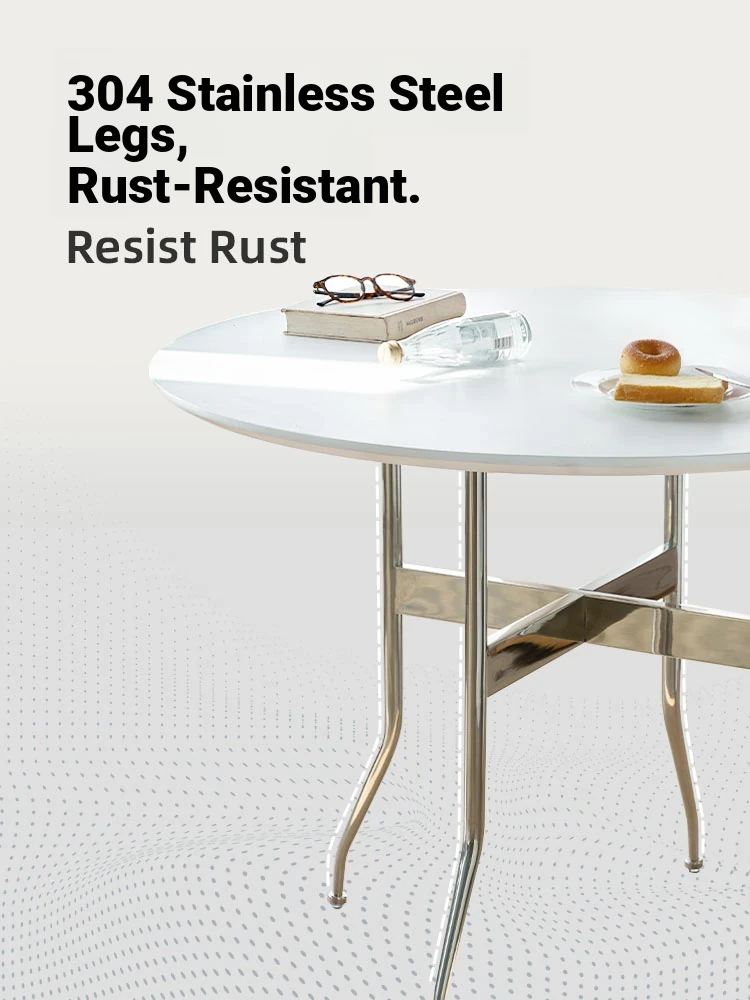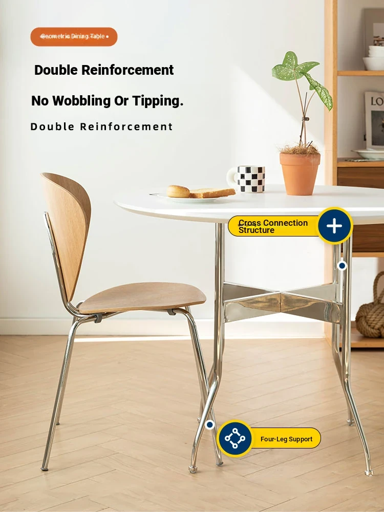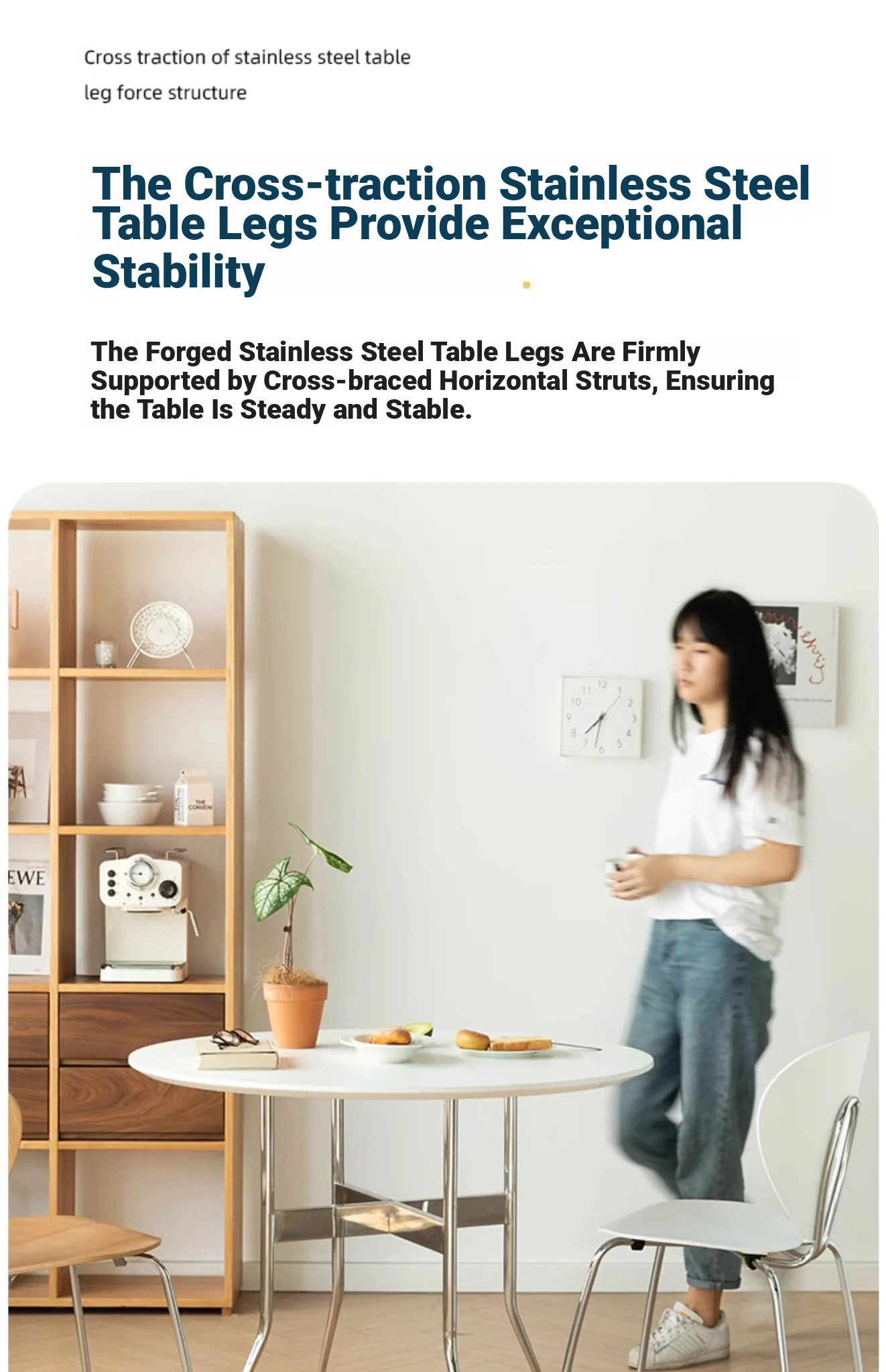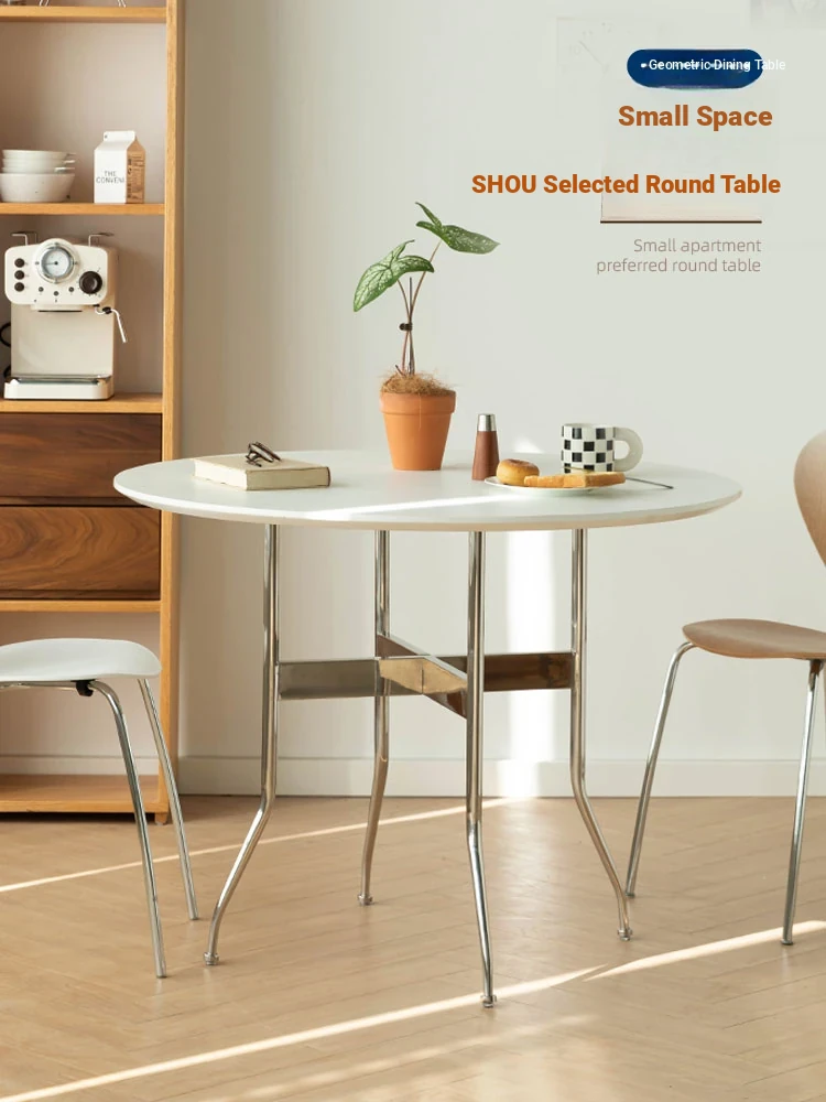 Modern Minimalist Round Dining Table Set - Stainless Steel and Iron Dining Room Furniture for Home Use, Sleek Design Perfect for Contemporary Spaces.