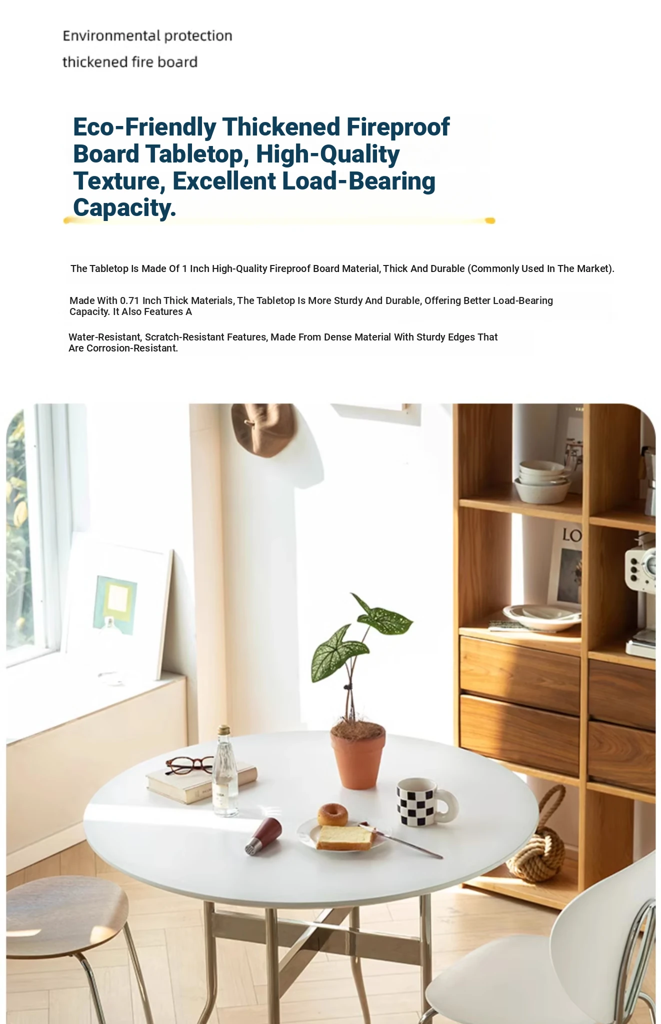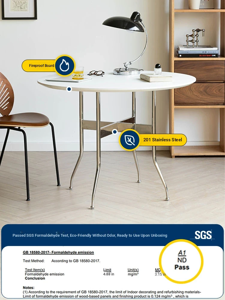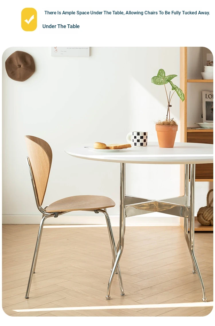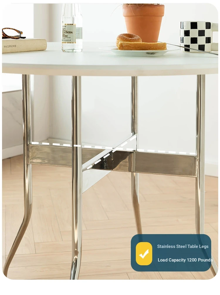 Modern Minimalist Round Dining Table Set - Stainless Steel and Iron Dining Room Furniture for Home Use, Sleek Design Perfect for Contemporary Spaces.