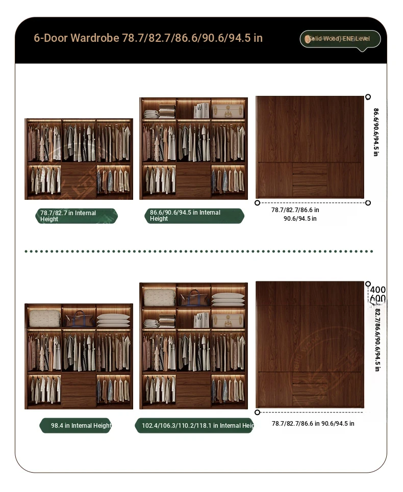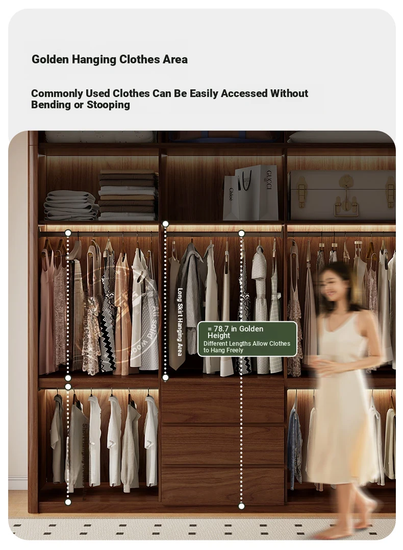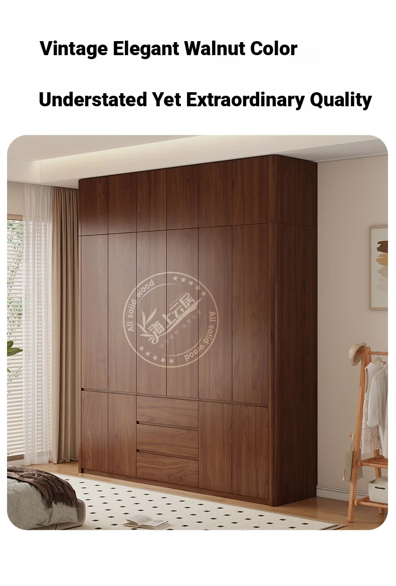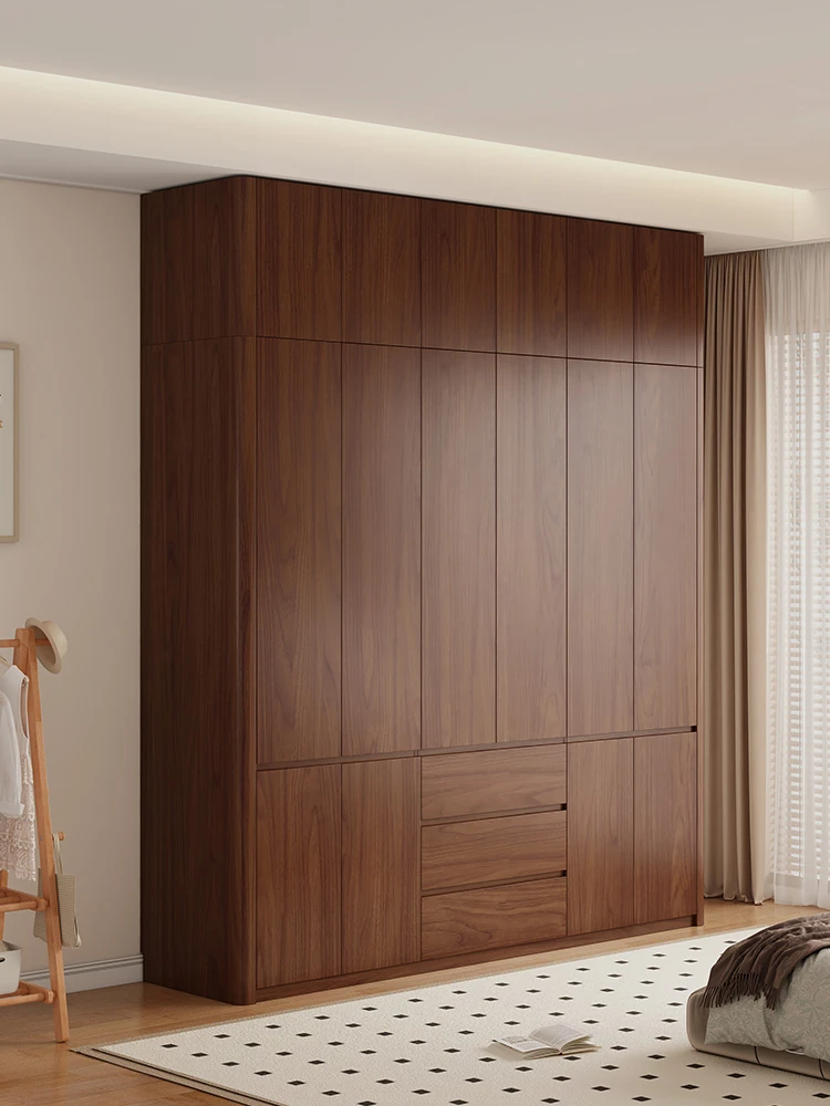 2025年新作!全実木製のレトロスタイルクローゼット - 2.5-3メートル高、手を使わずに開閉できるトップキャビネット付き!おしゃれな寝室にぴったりの高品質衣装収納。