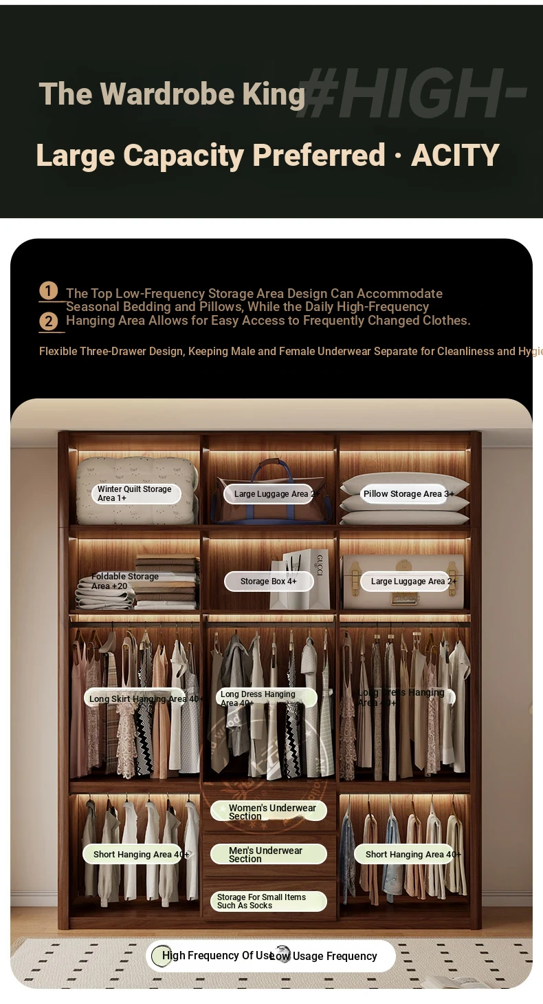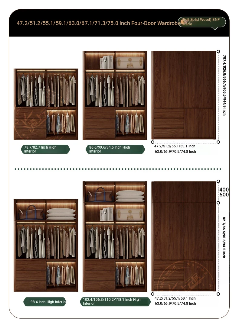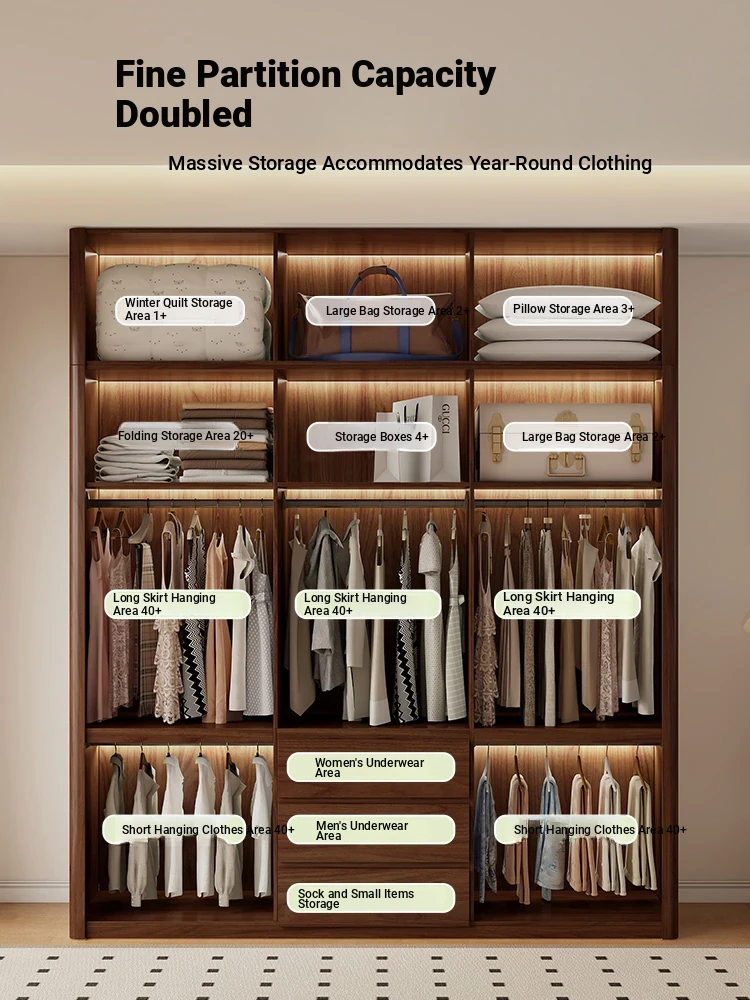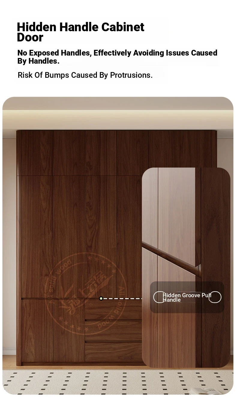 2025年新作!全実木製のレトロスタイルクローゼット - 2.5-3メートル高、手を使わずに開閉できるトップキャビネット付き!おしゃれな寝室にぴったりの高品質衣装収納。