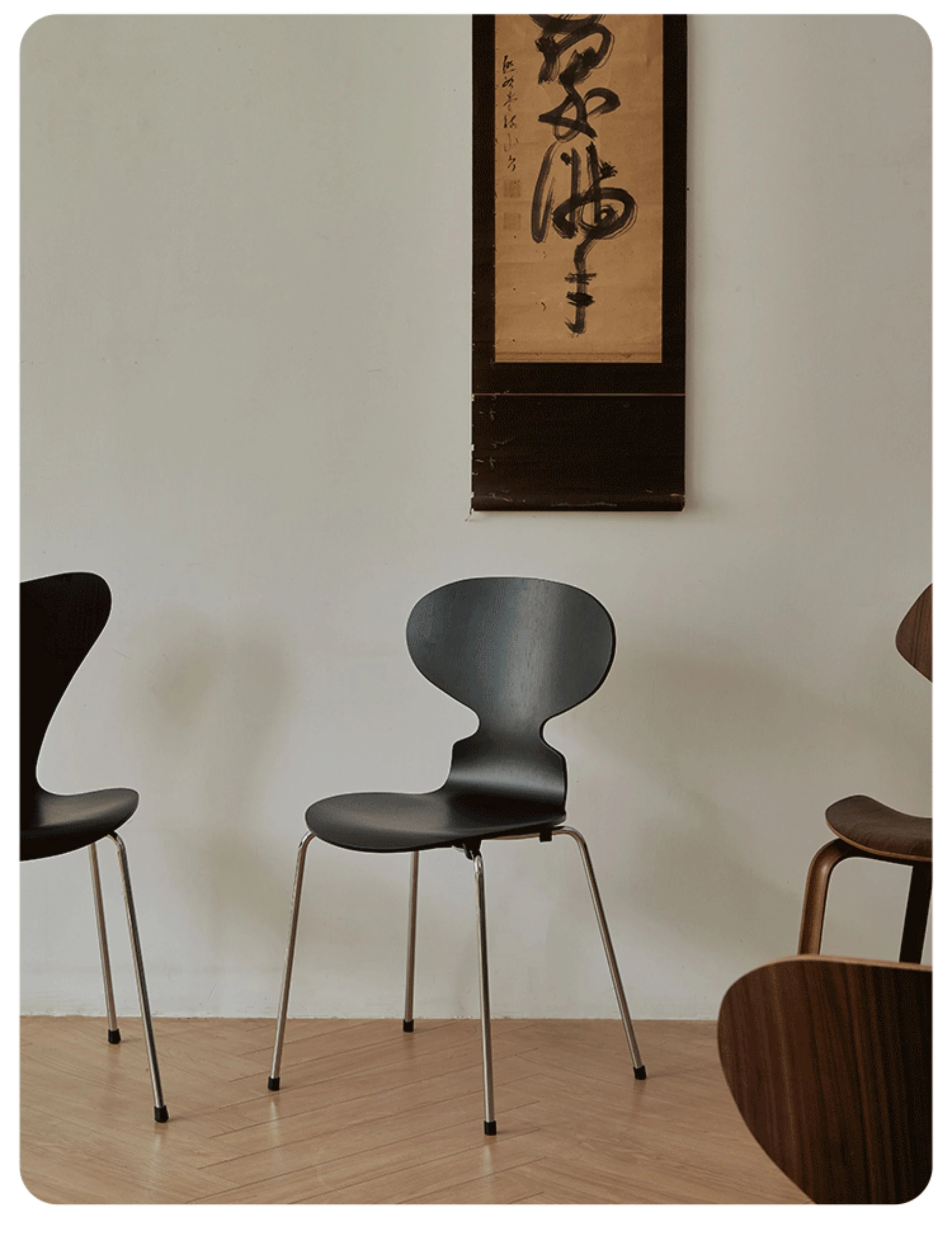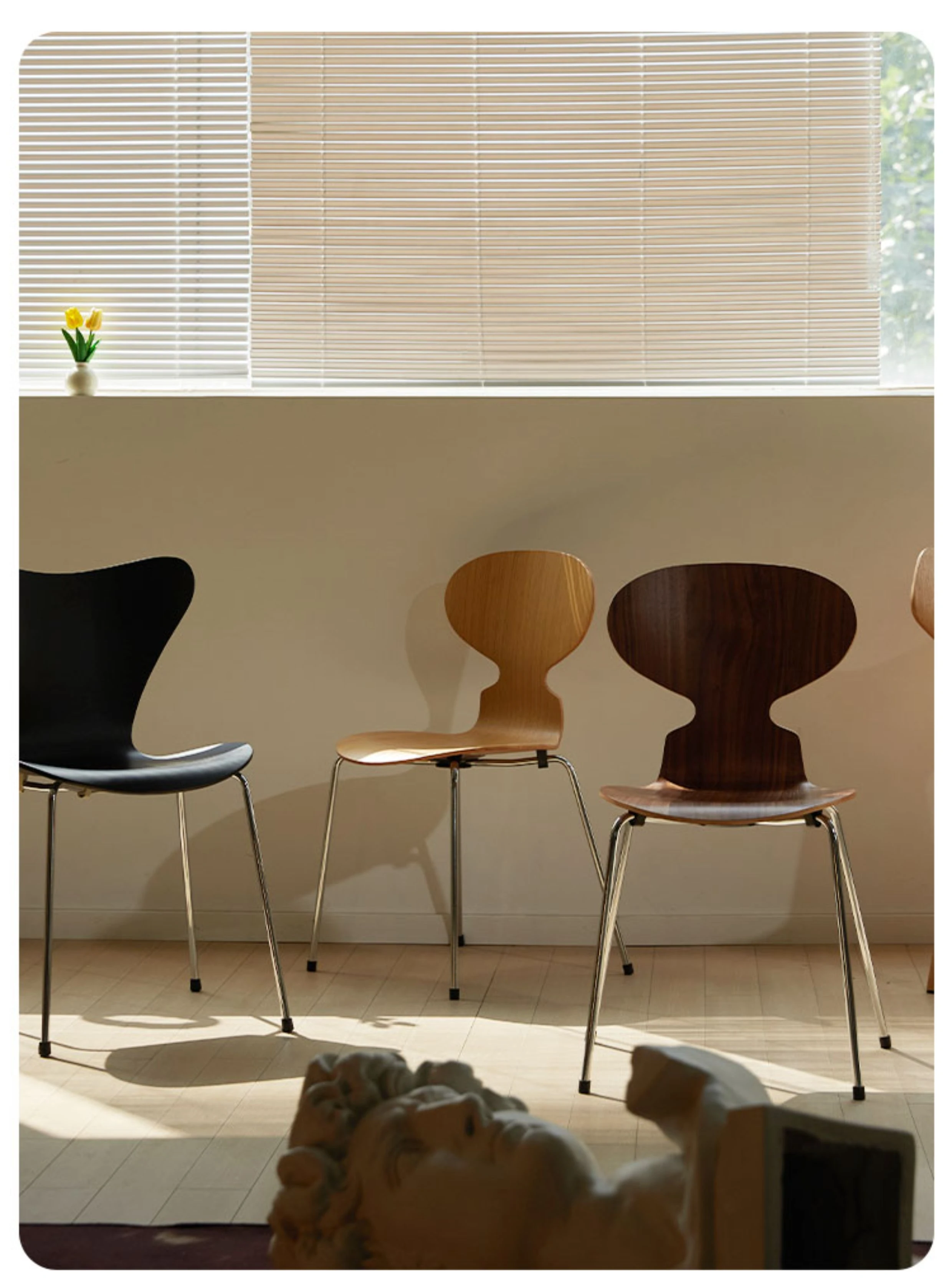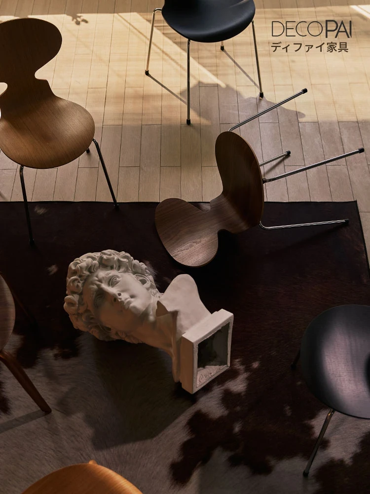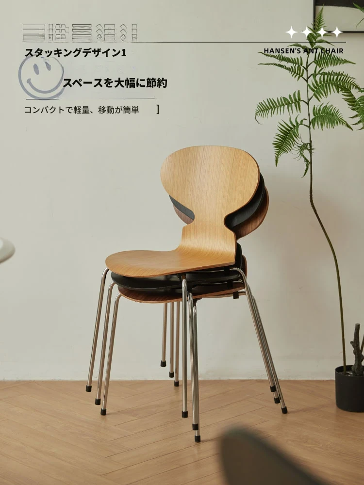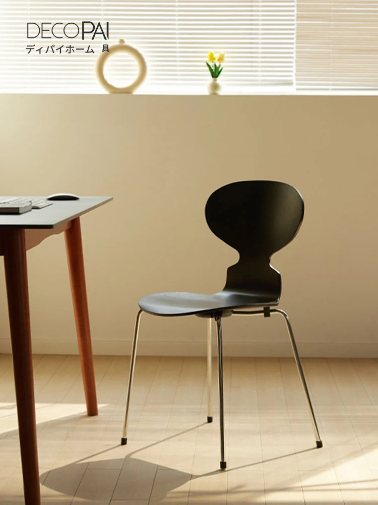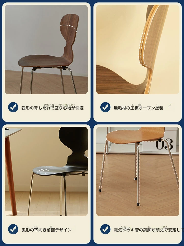 AntChair 蚂蚁椅 - 北欧スタイルのレトロデザイン!木製背もたれとアイアンフレームの組み合わせで、家のインテリアにぴったりなダイニングチェア。化粧台にも最適!心地よい座り心地を実現し、毎日の生活に彩りを加えます。