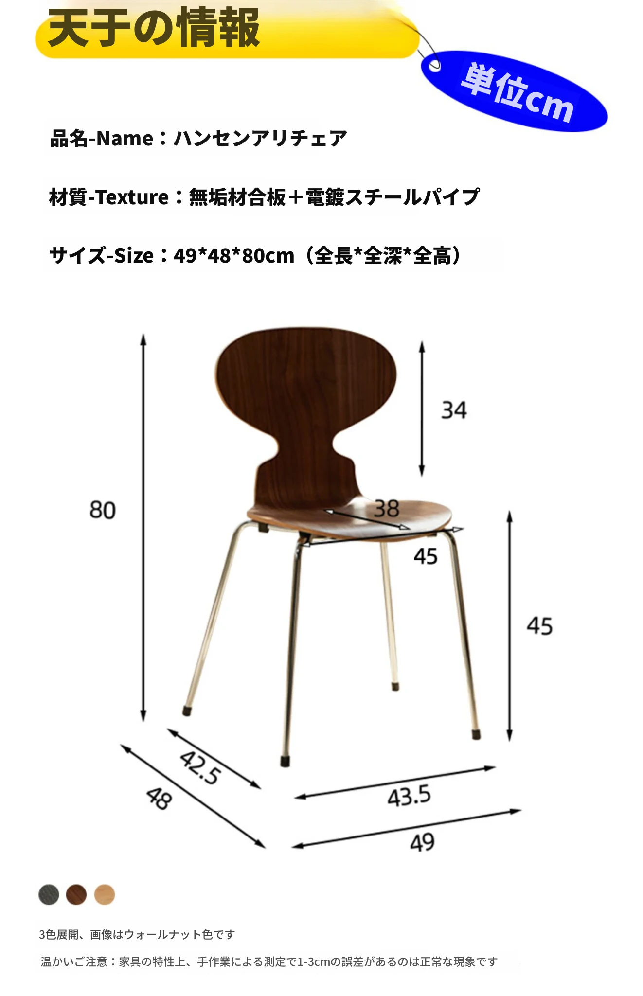 ウォールナットカラー アリ椅子
