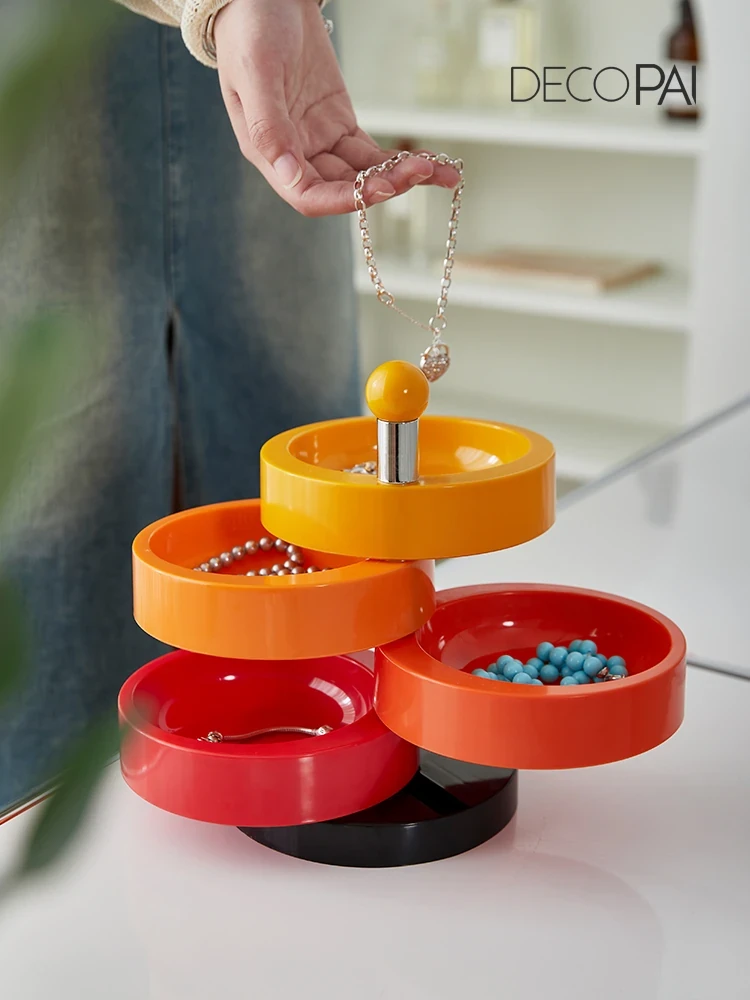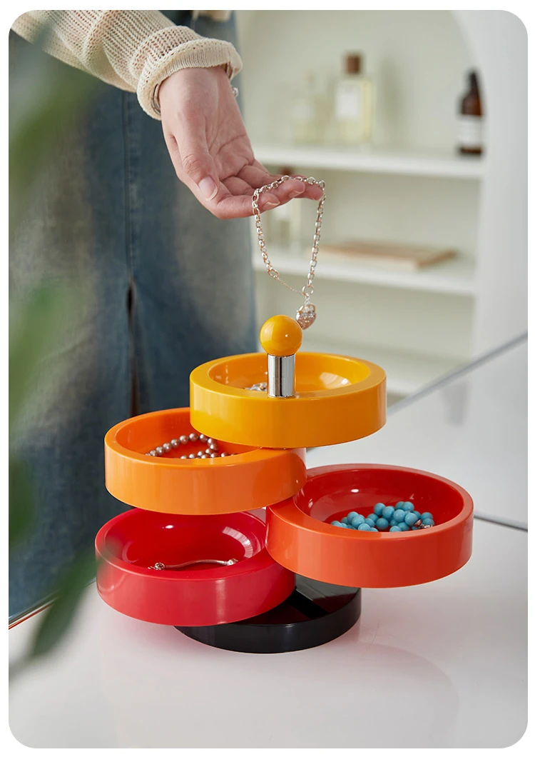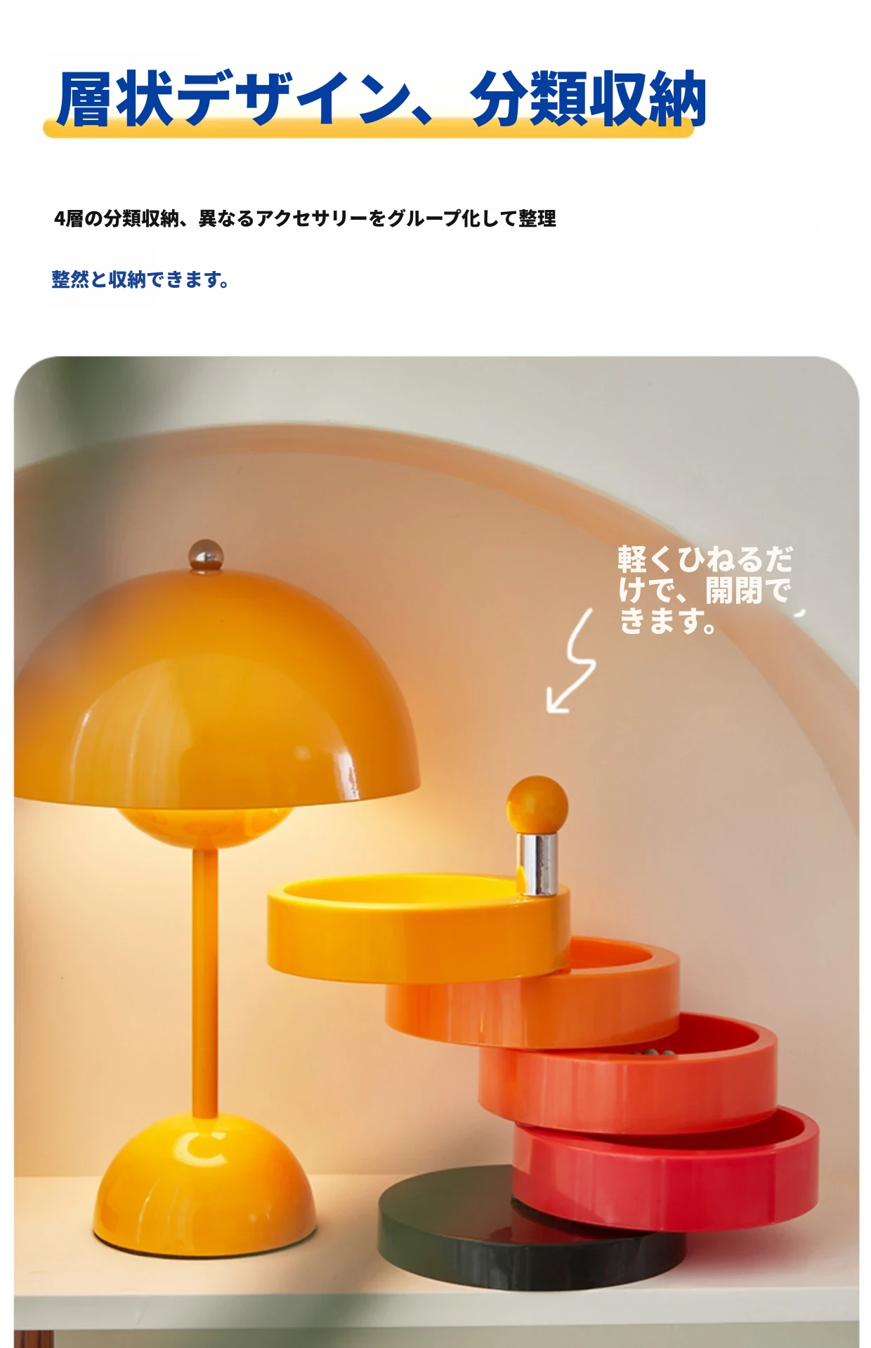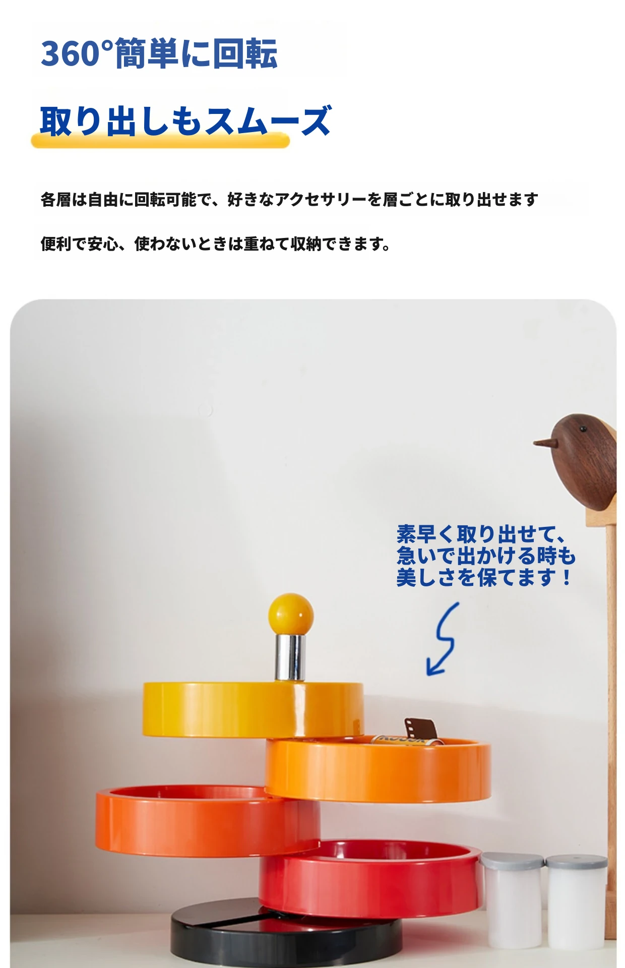 飾り派のクリエイティブな多層回転ジュエリーボックス - ネックレスやリングをおしゃれに収納できるミニサイズの収納ボックス!あなたの大切なアクセサリーを美しく整理しましょう!