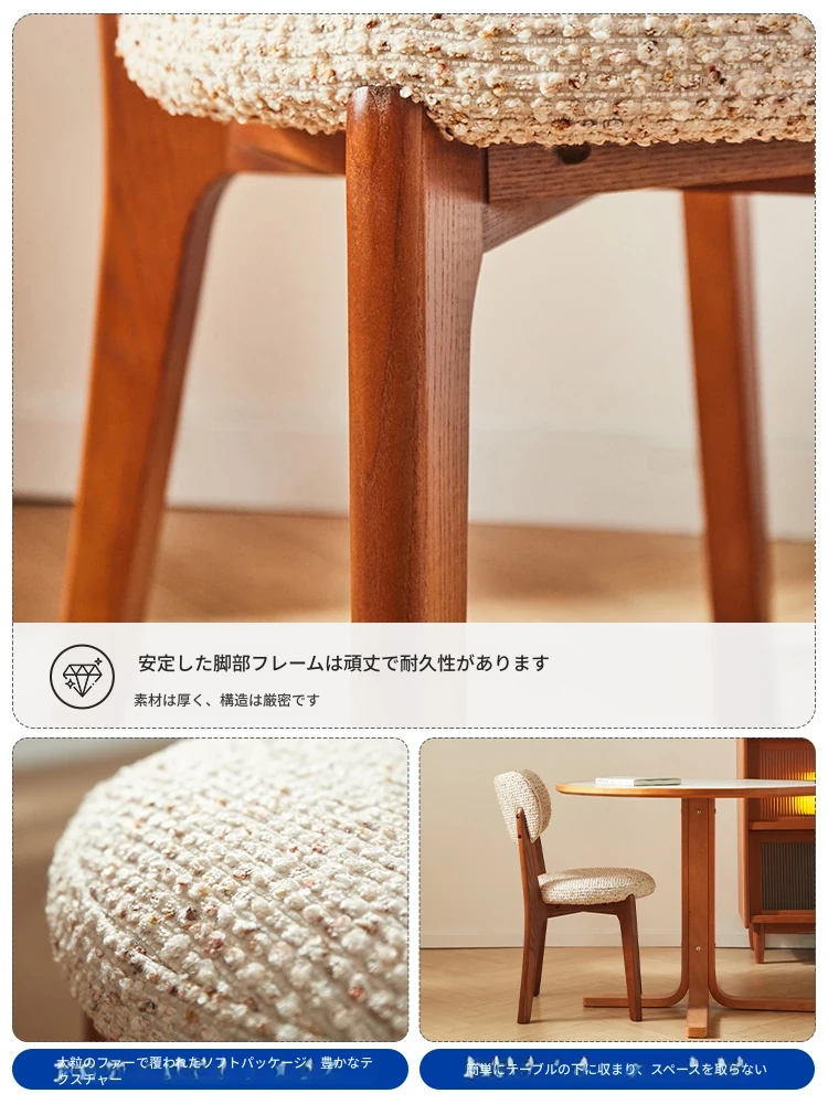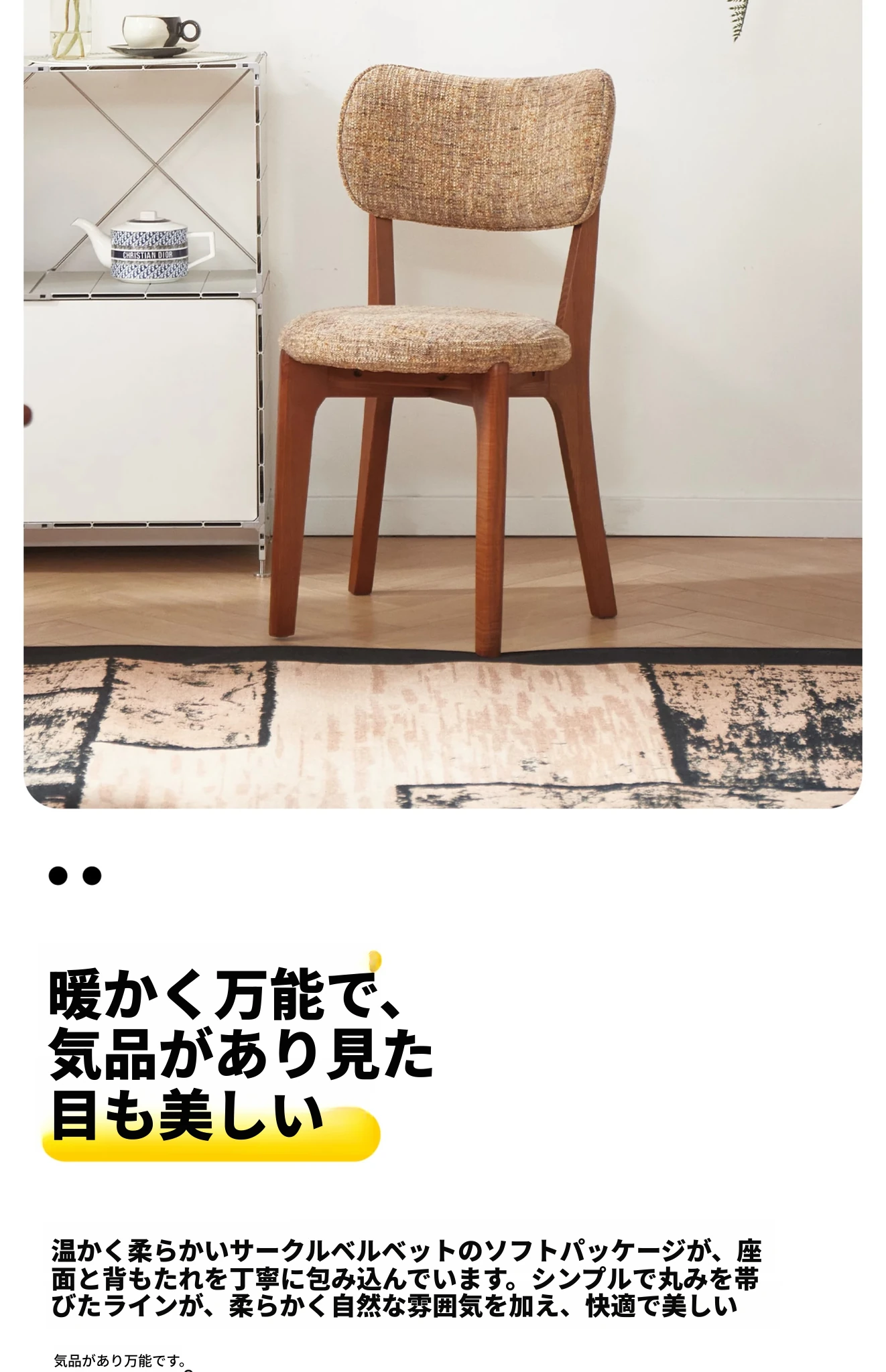 デザイナーズヴィンテージ風ソフトパックダイニングチェア - おしゃれな実木製、ひとり用、レトロな背もたれ付き。お家の食卓にぴったりの魅力的な椅子で、快適な食事時間をお楽しみください!