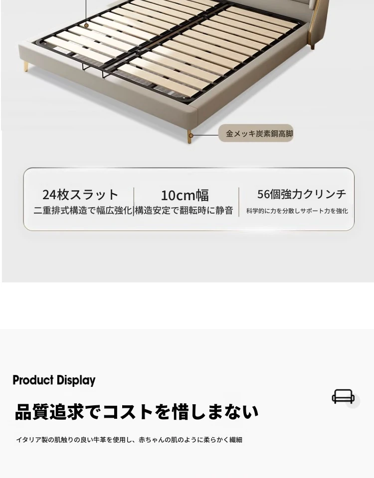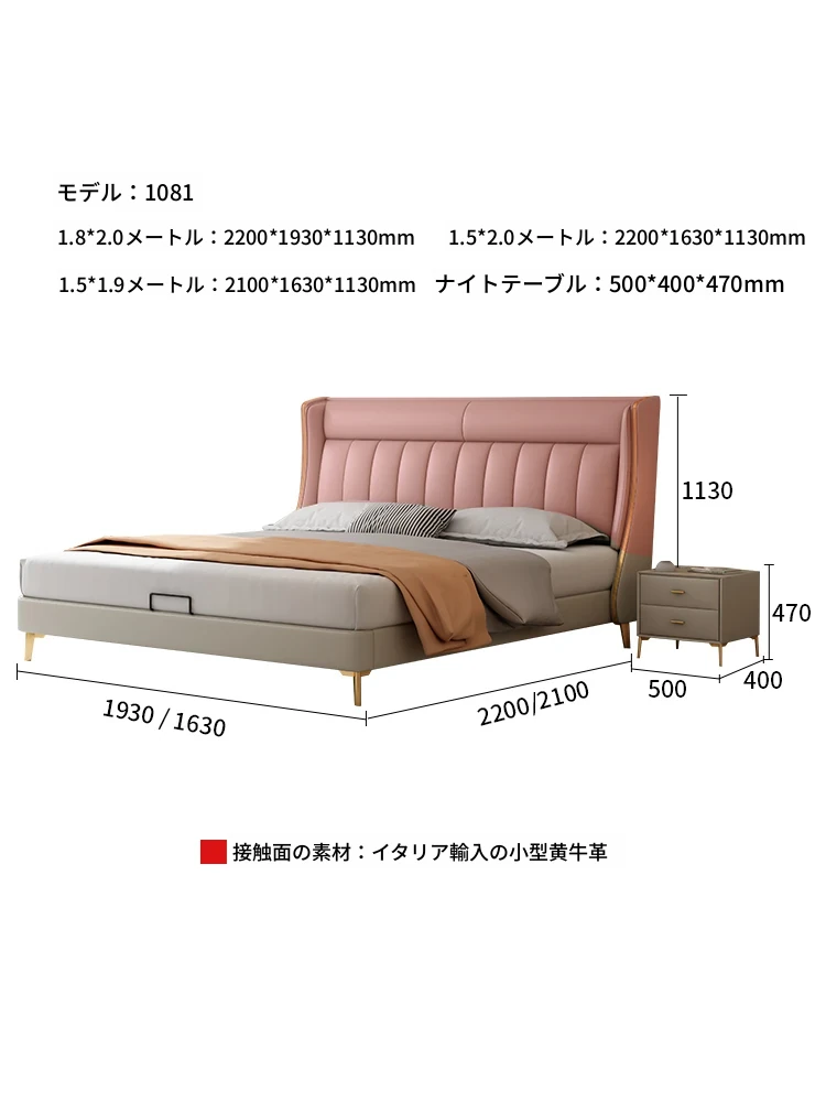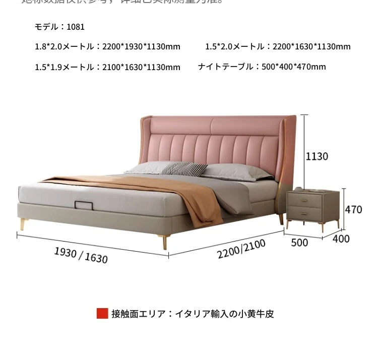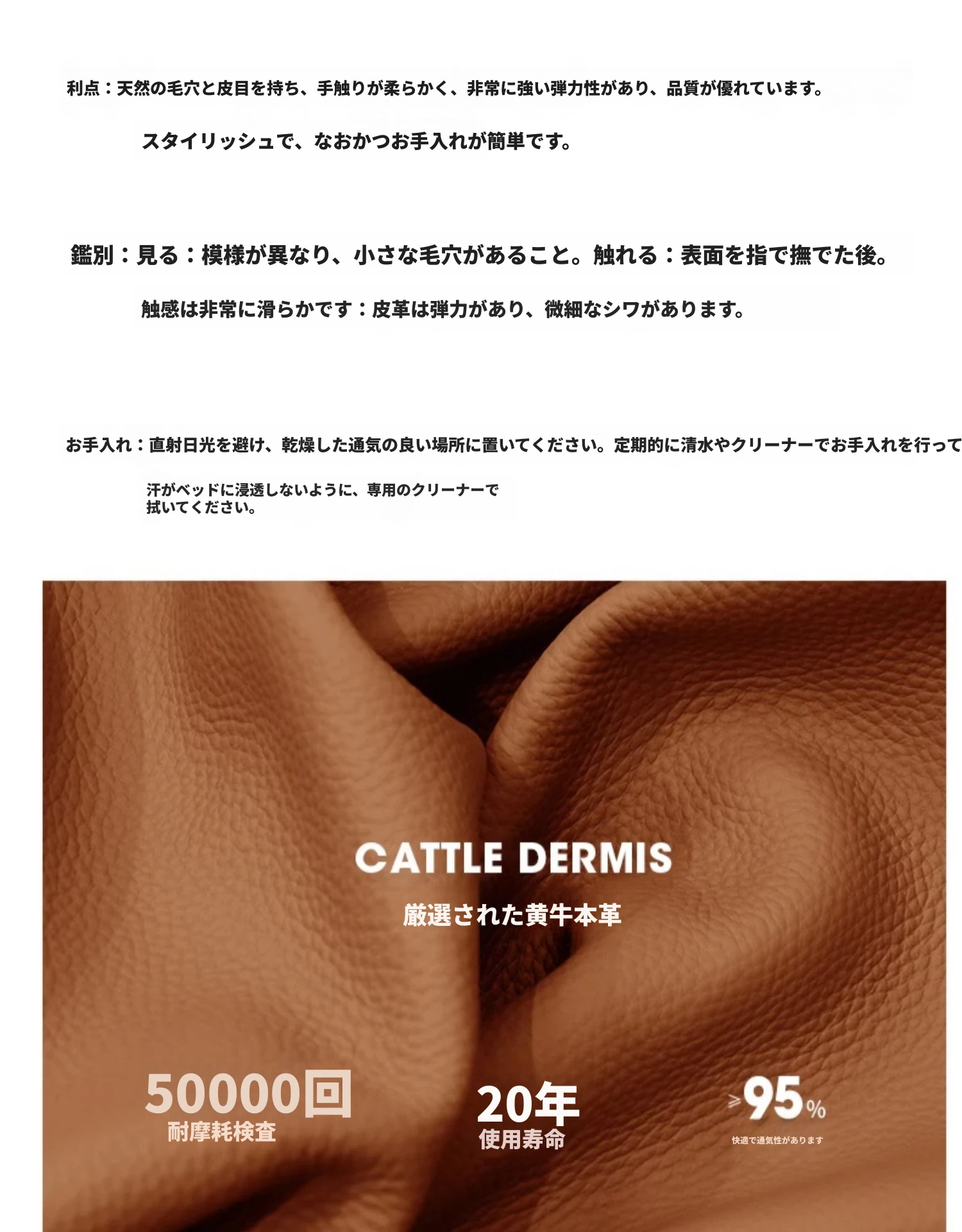 1.8MM厚S級黄牛革シングルベッド+ナイトスタンド*2