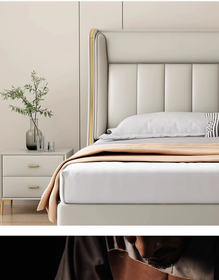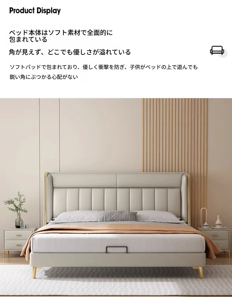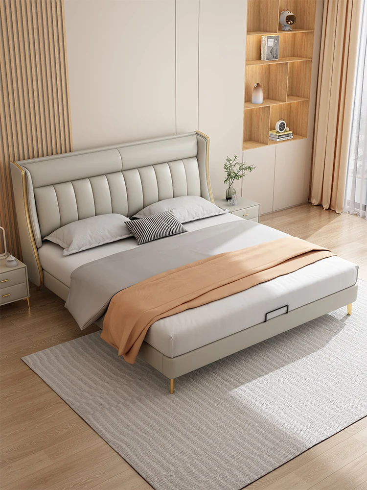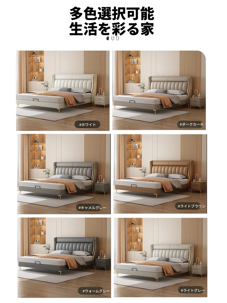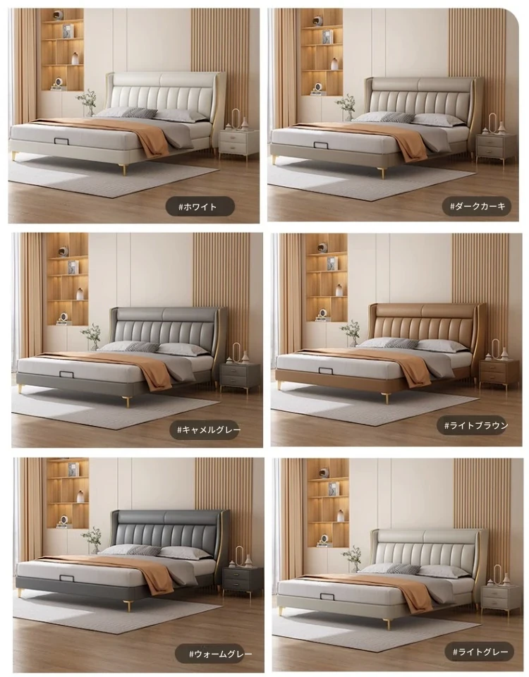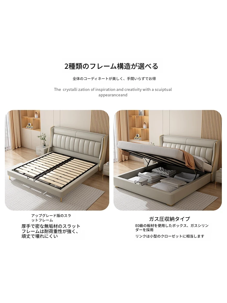 海上云居本革製イタリアンスタイルダブルベッド - 高級牛革ソフトパネル採用、洗練されたデザインで主寝室にぴったりの贅沢な空間を演出!