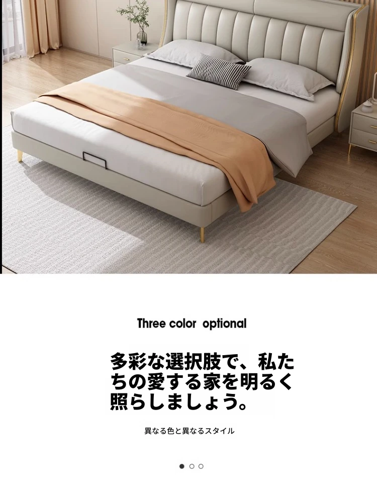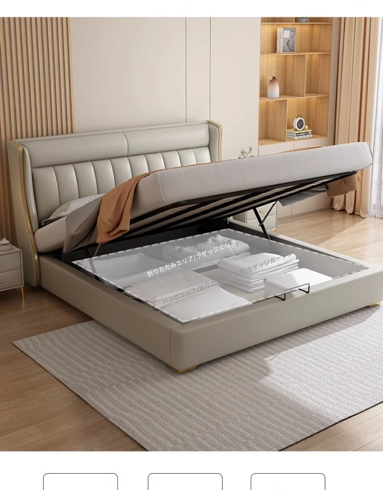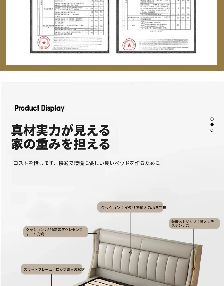 1.8MM厚S級黄牛革シングルベッド+9ゾーンエイソウラテックスマットレス+ナイトスタンド*2