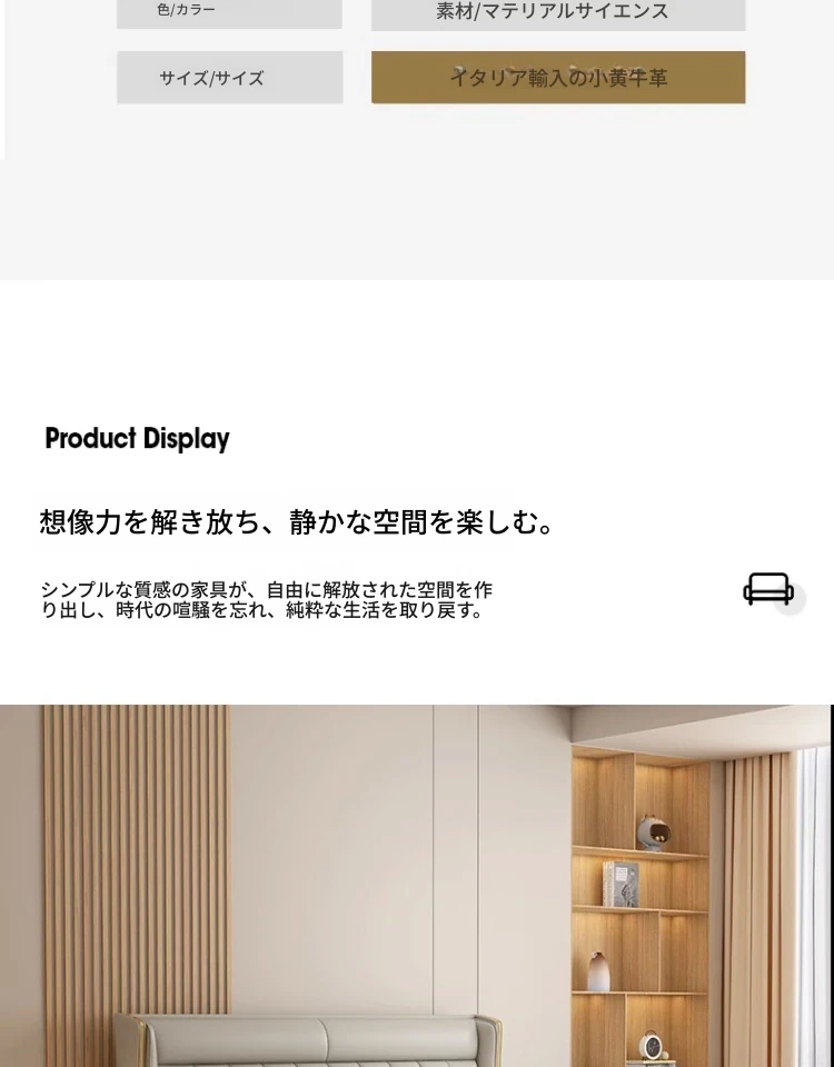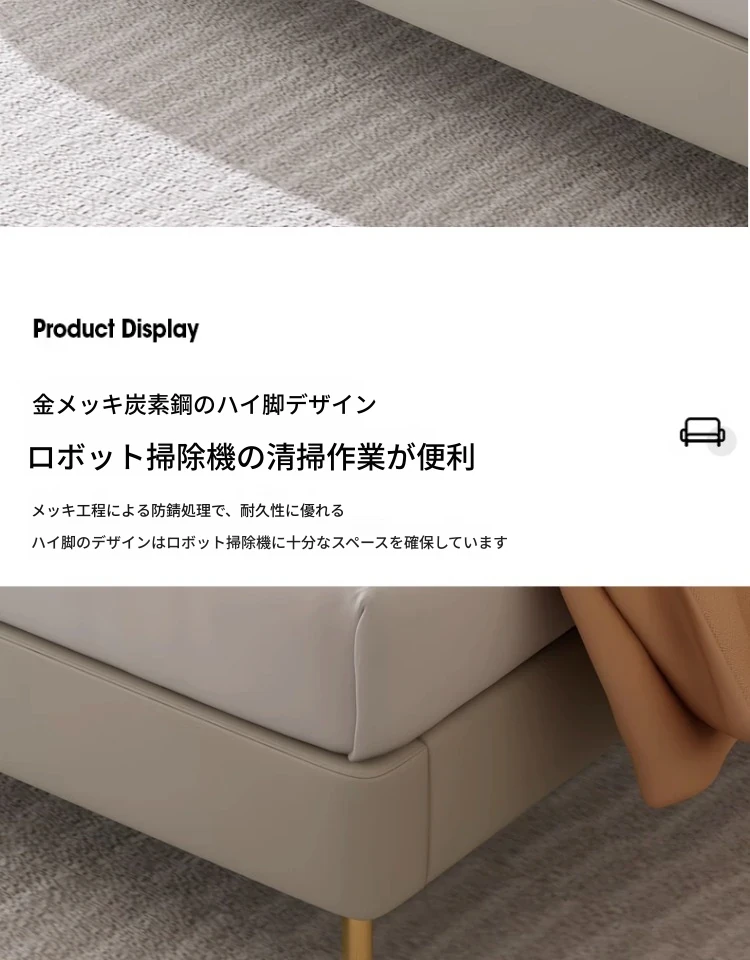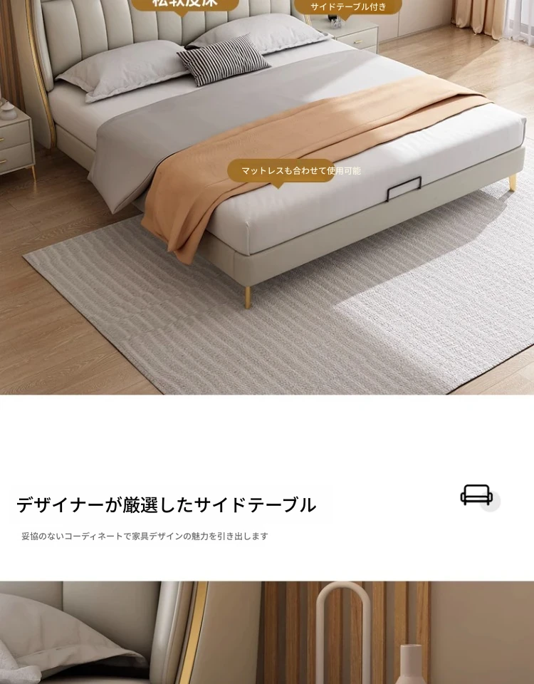 1.8MM厚S級黄牛革シングルベッド+ナイトスタンド*1