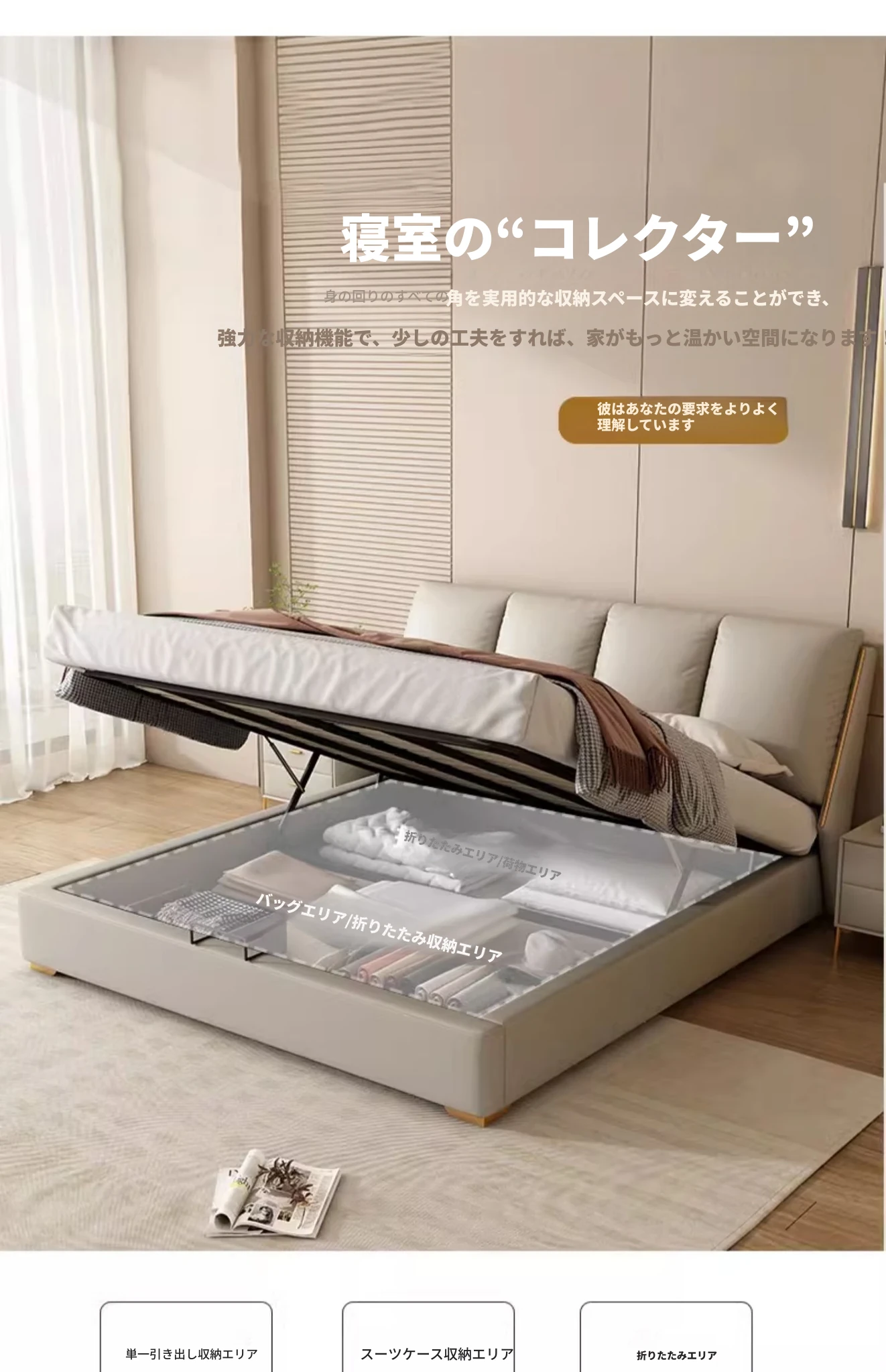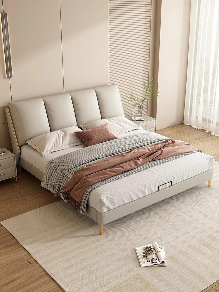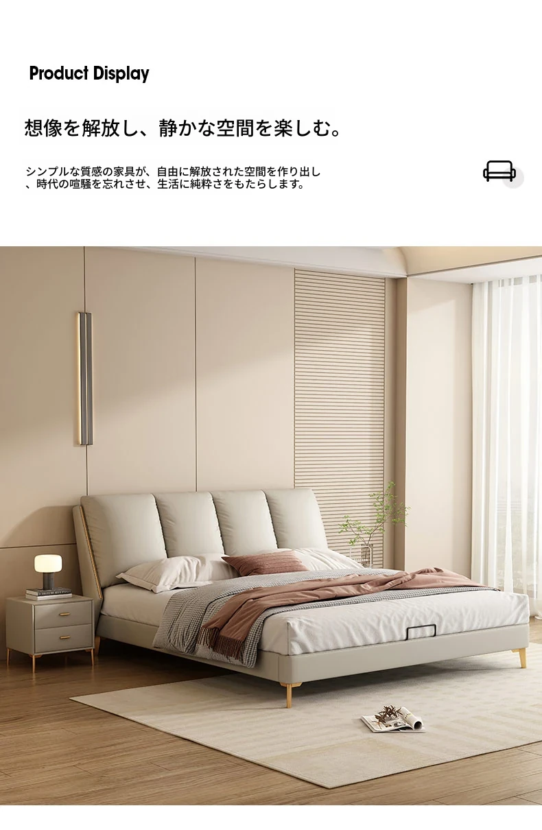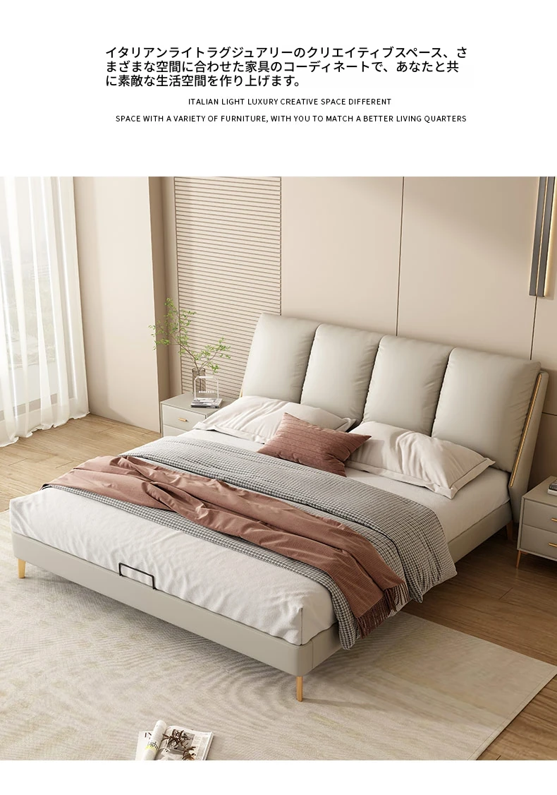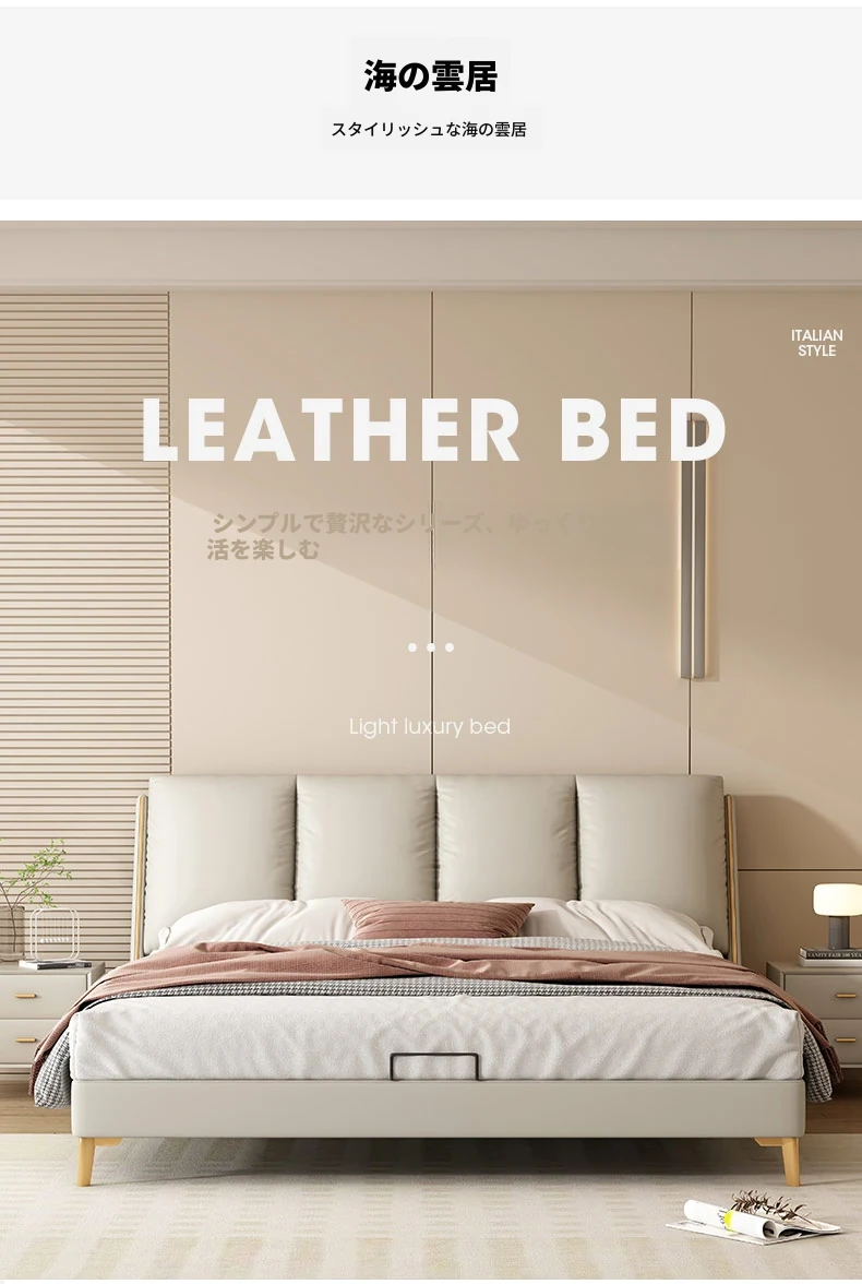 海上云居の本革イタリアンミニマリスト主寝室ベッド - ラグジュアリーで洗練されたデザイン、1.8mのトップレザーソフトパッキングベッド、1.5mサイズもご用意!おしゃれで快適な睡眠空間を実現します。