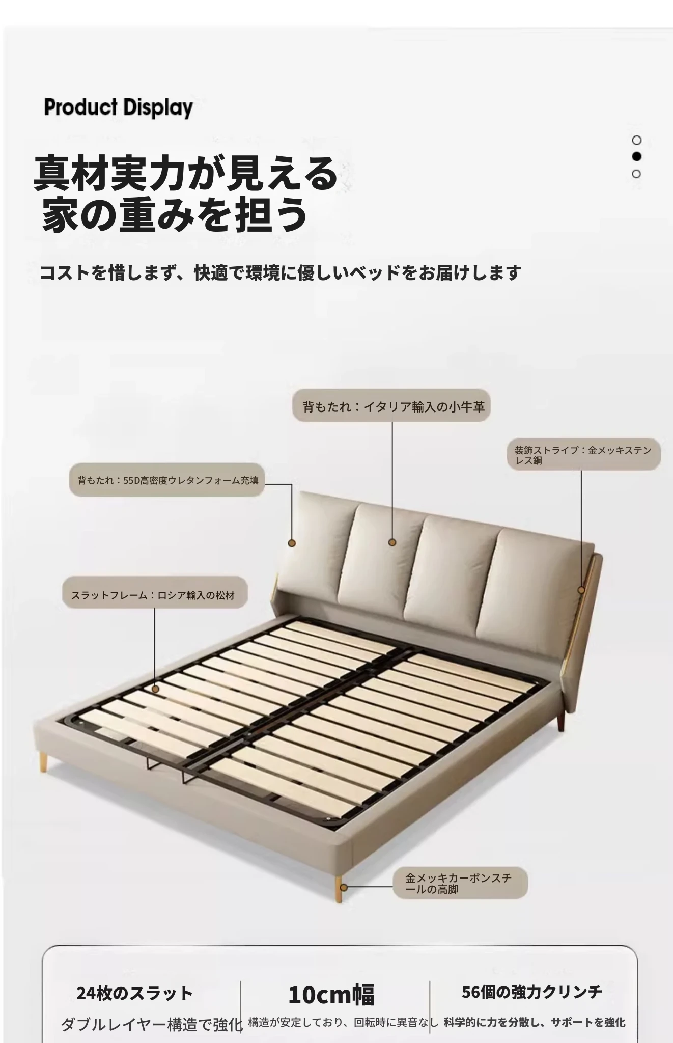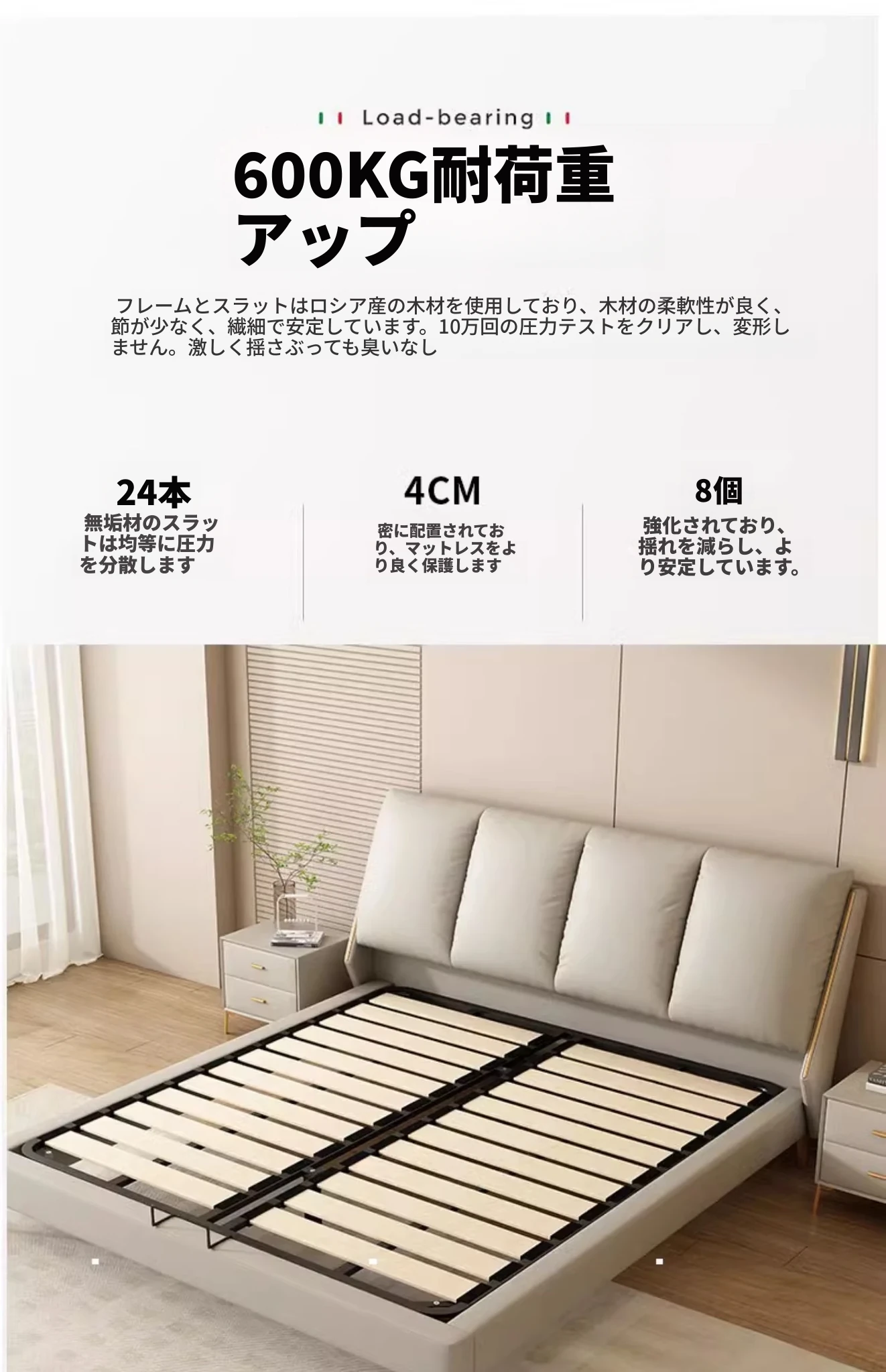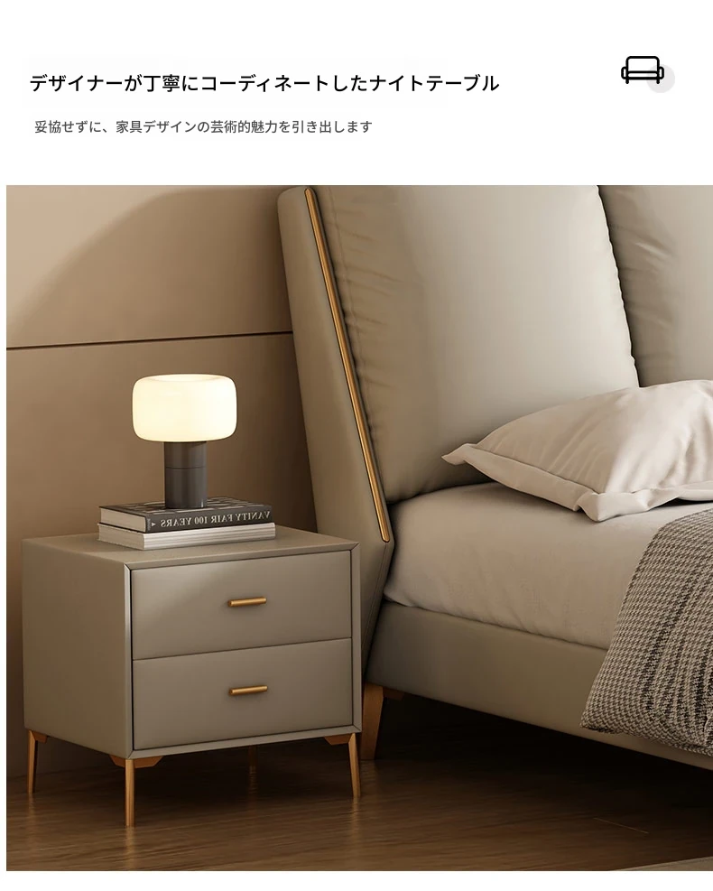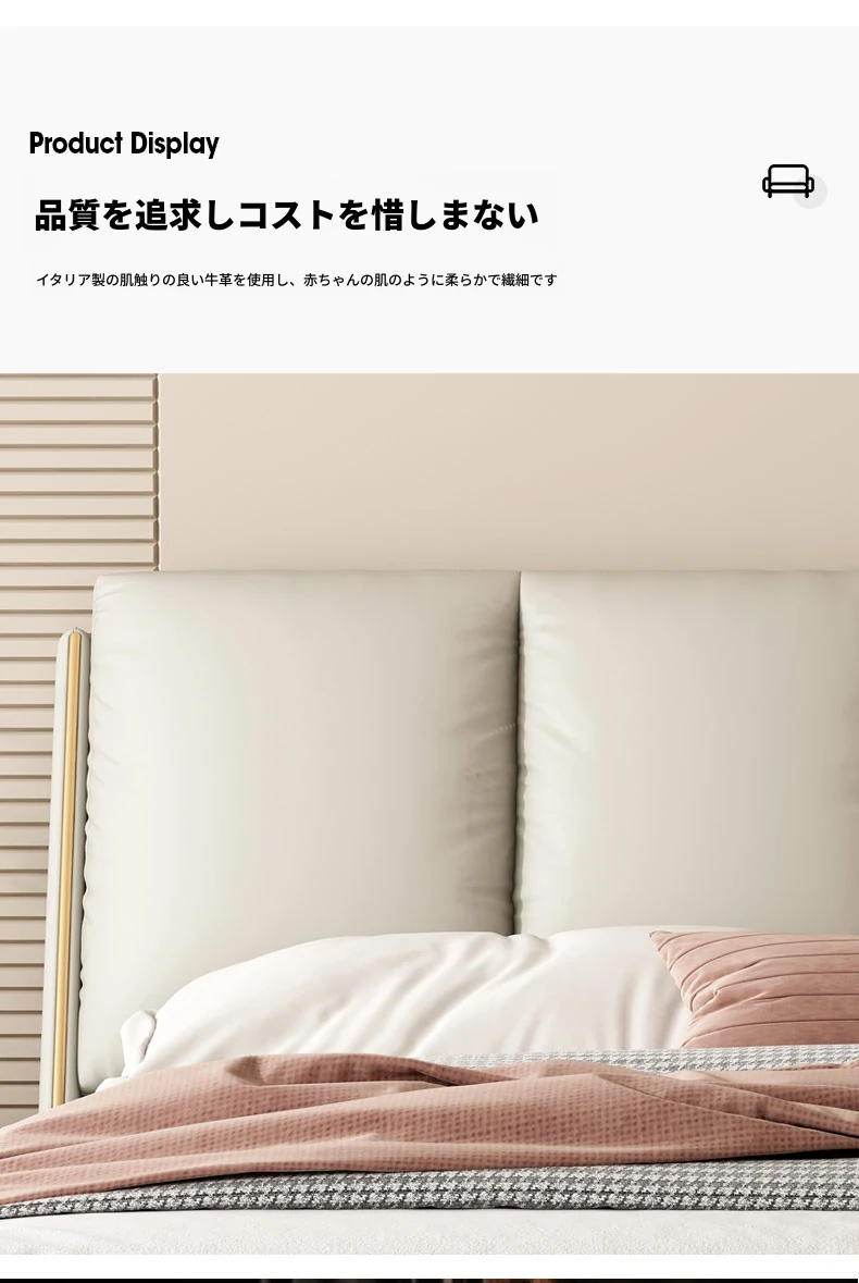 1.8MM厚S級黄牛革シングルベッド+ナイトスタンド*2