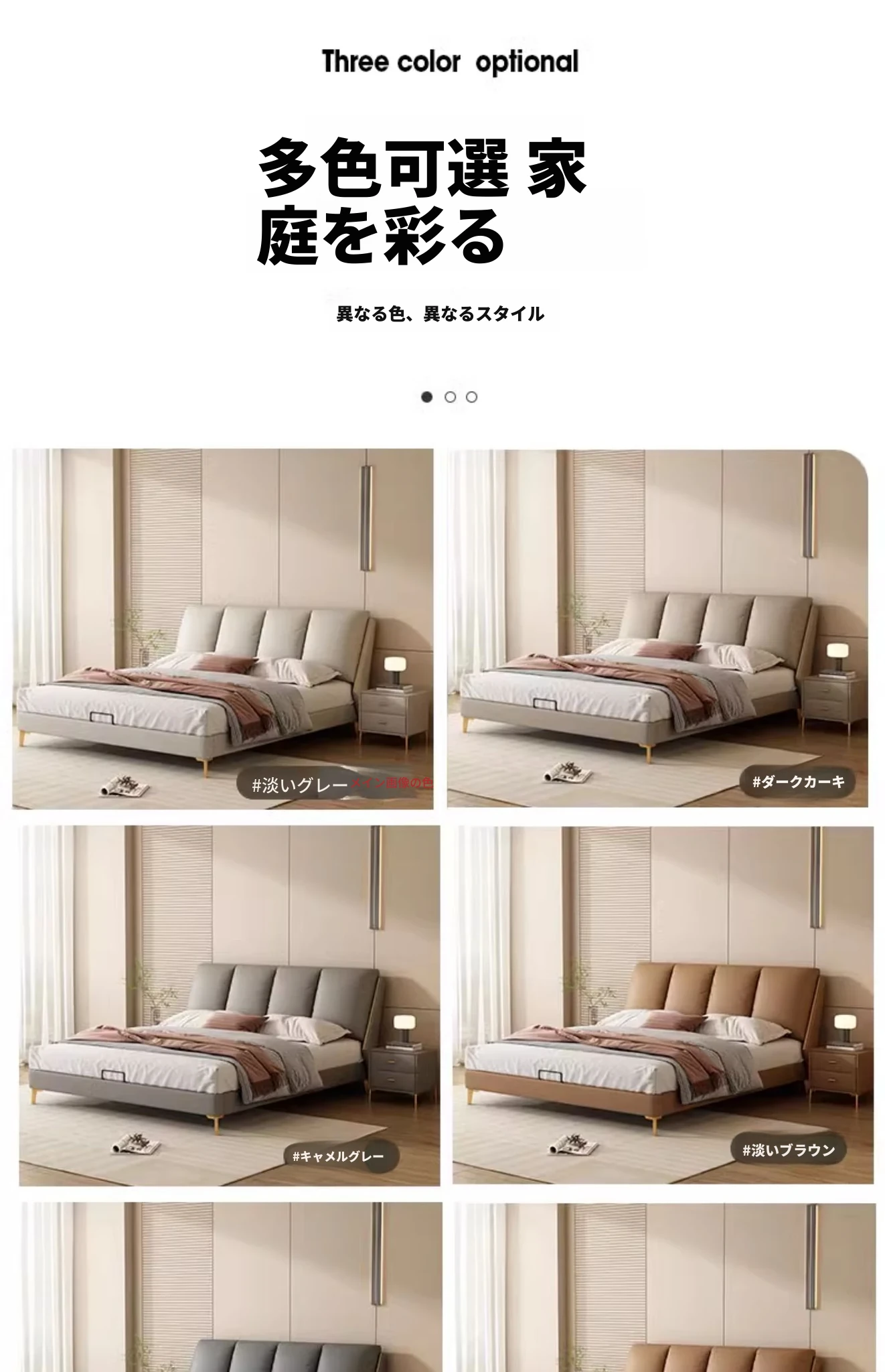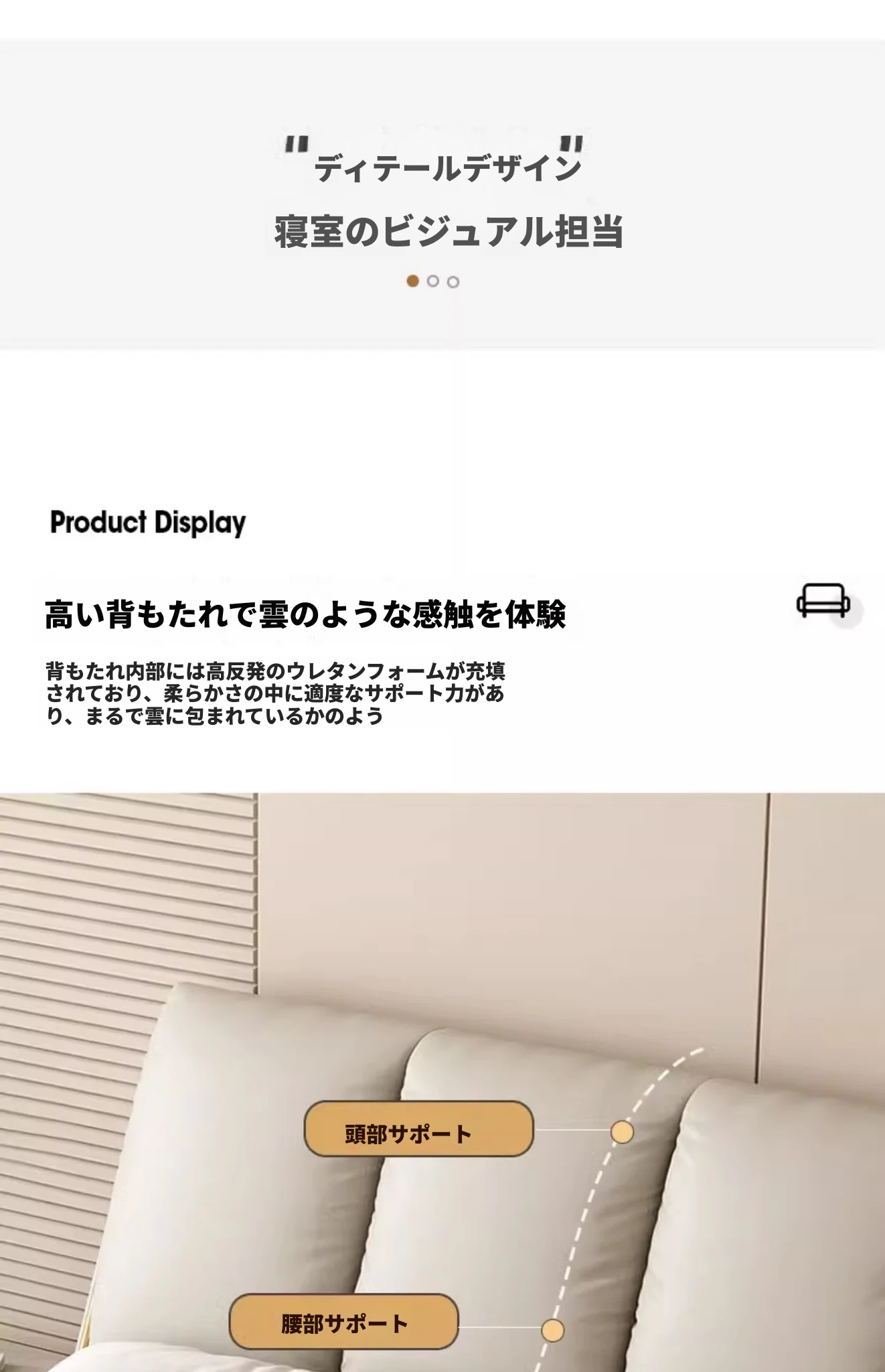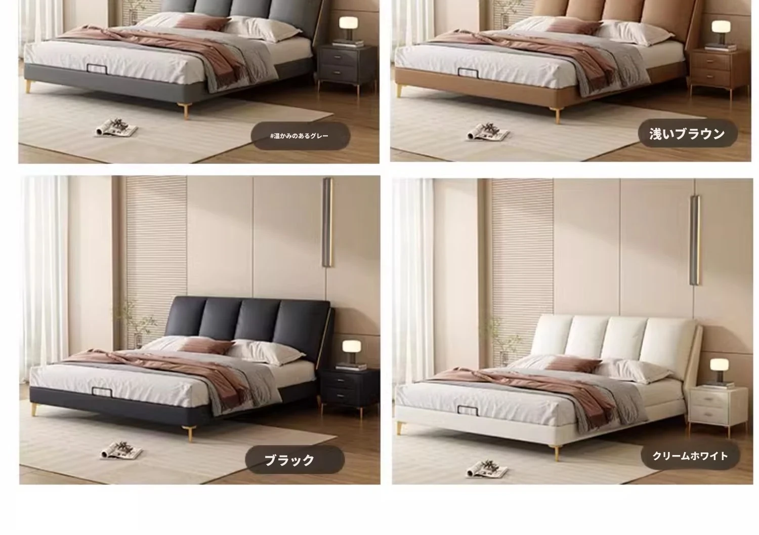 1.8MM厚S級黄牛革シングルベッド+ナイトスタンド*2
