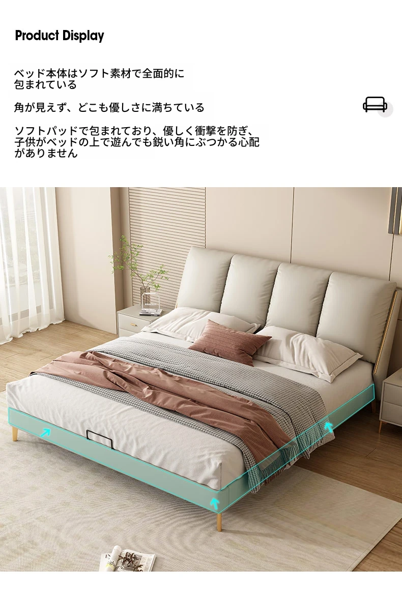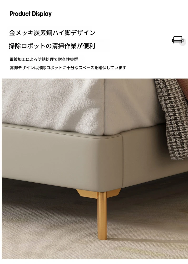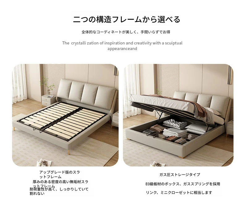 1.8MM厚S級黄牛革シングルベッド+ナイトスタンド*1