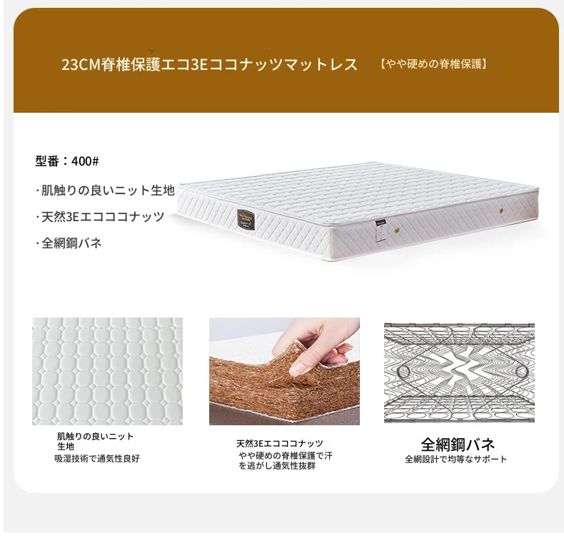 1.8MM厚S級黄牛革シングルベッド+脊椎保護ココナッツマットレス