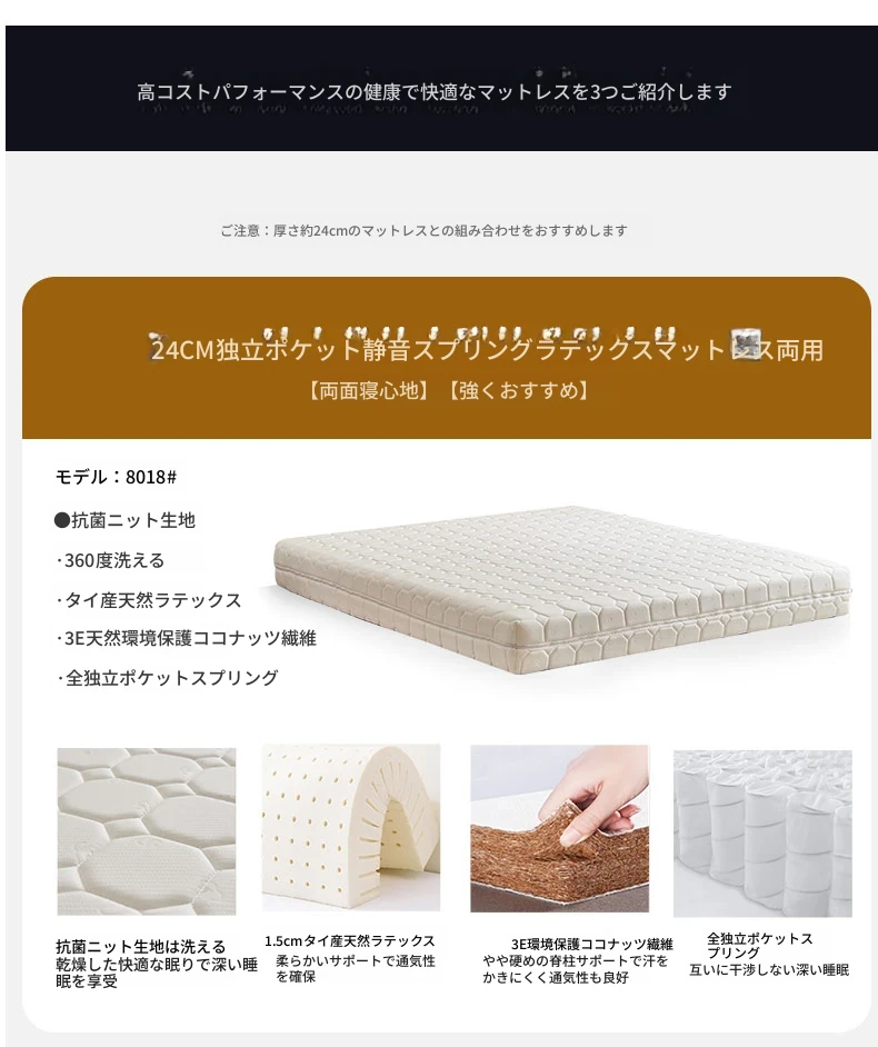 1.8MM厚S級黄牛革シングルベッド+9ゾーン艾草ラテックスマットレス