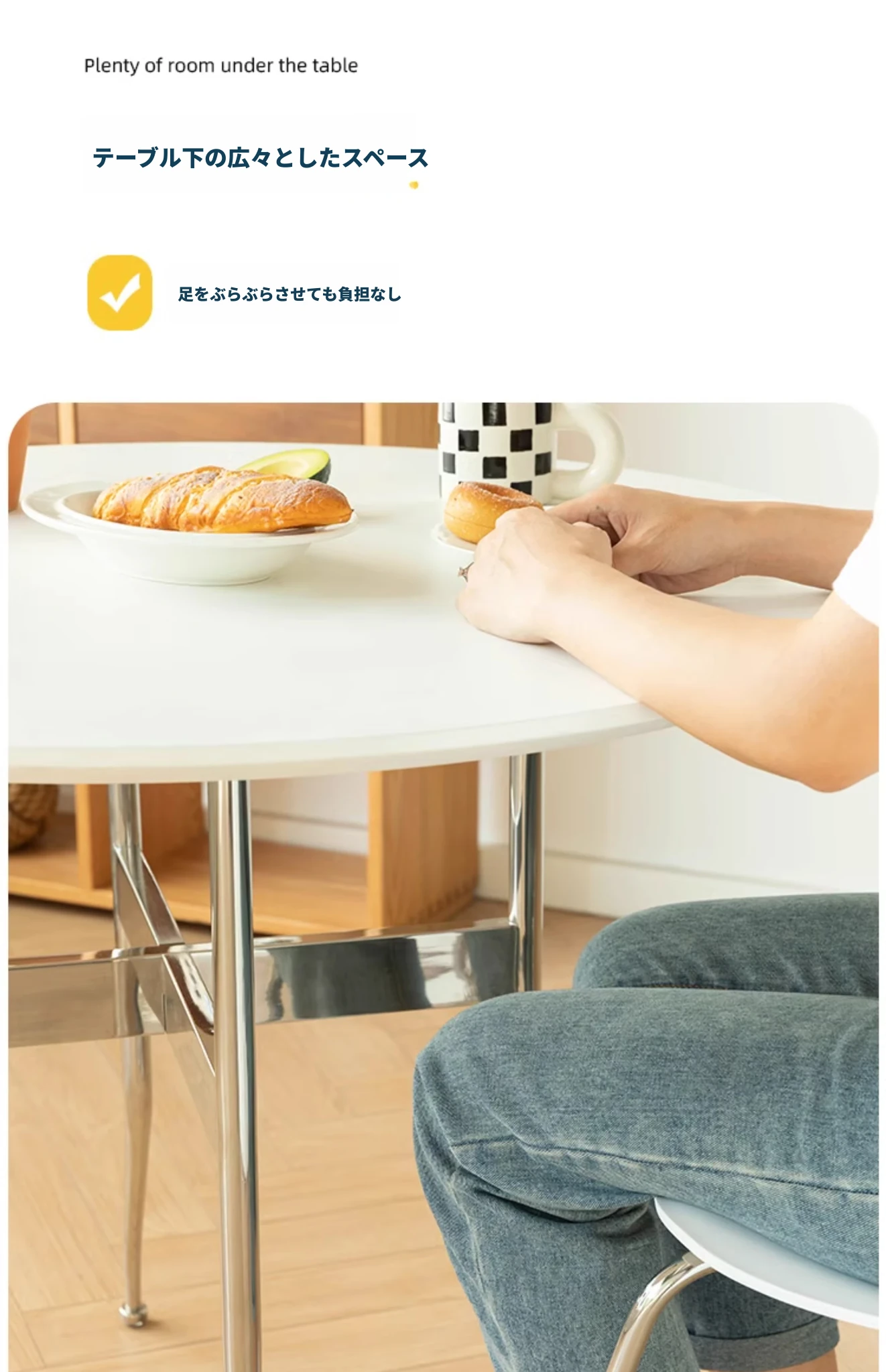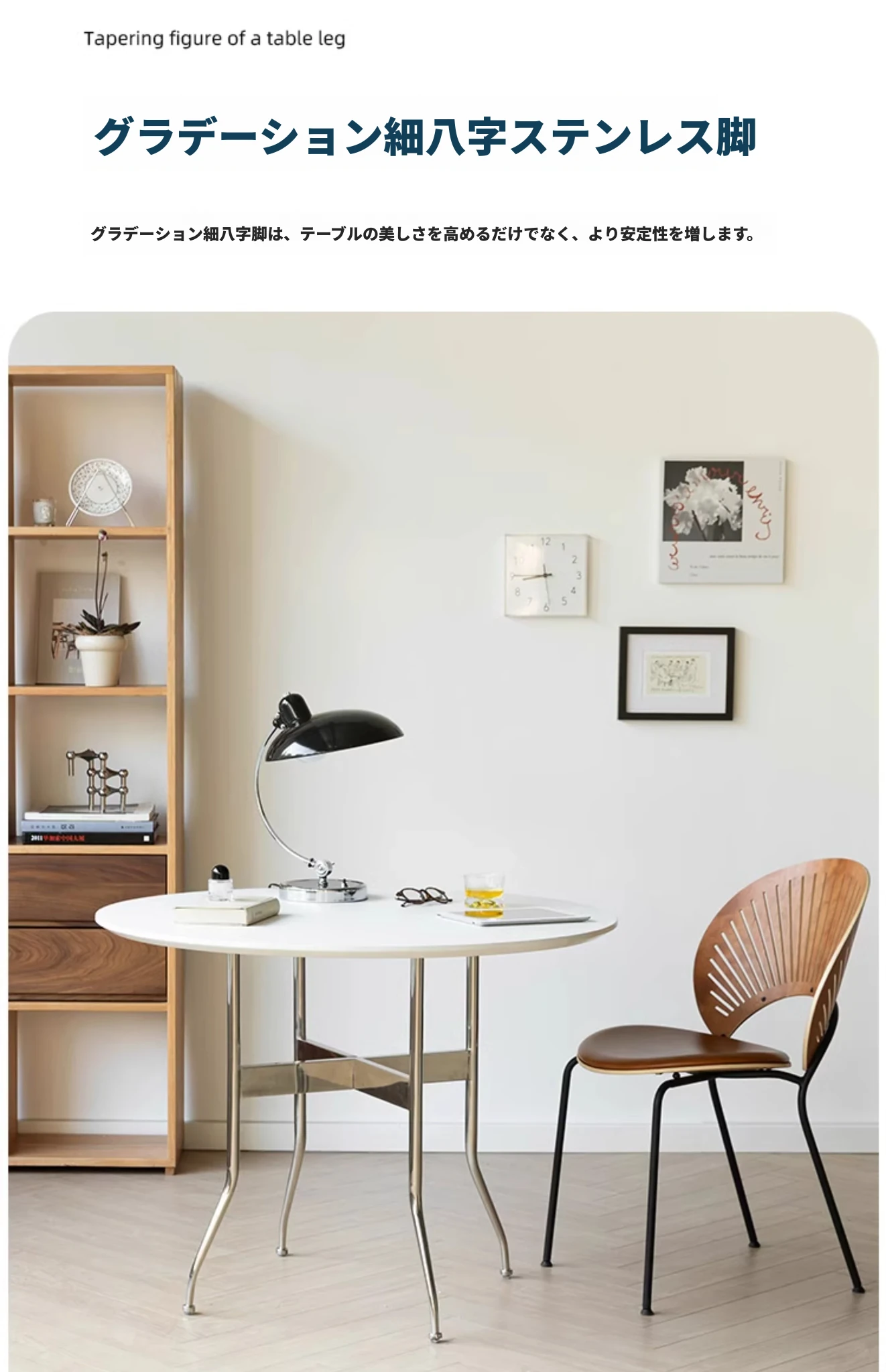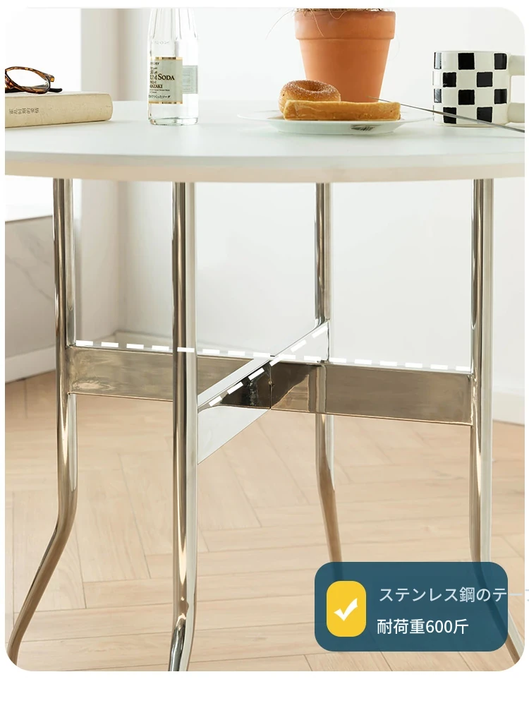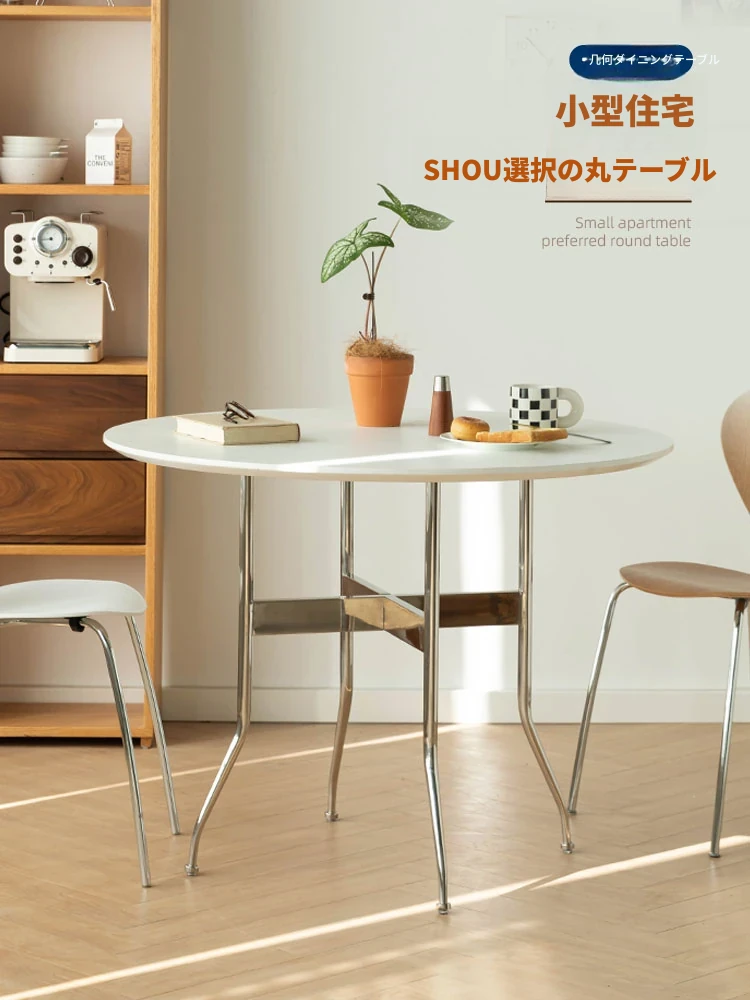 スタイリッシュな円形ステンレス製ダイニングテーブルセット|ミニマリストデザインのモダンな家庭用|シンプルで洗練された食卓を演出する鉄製家具!