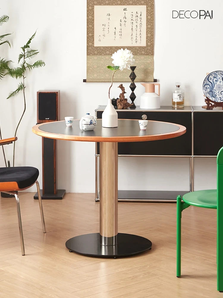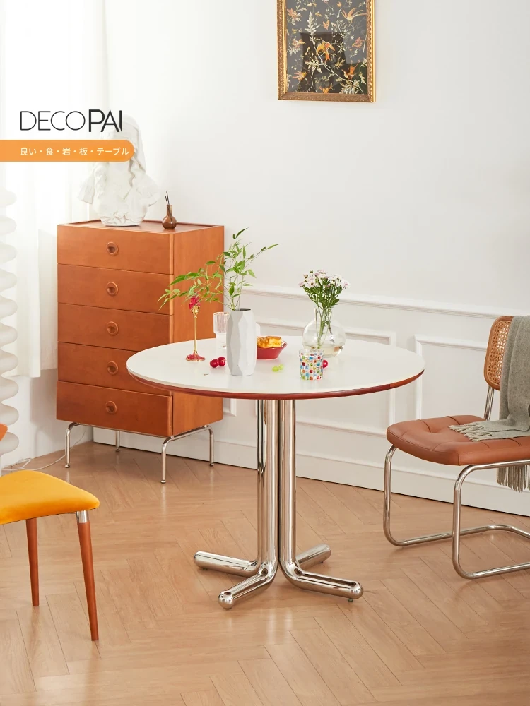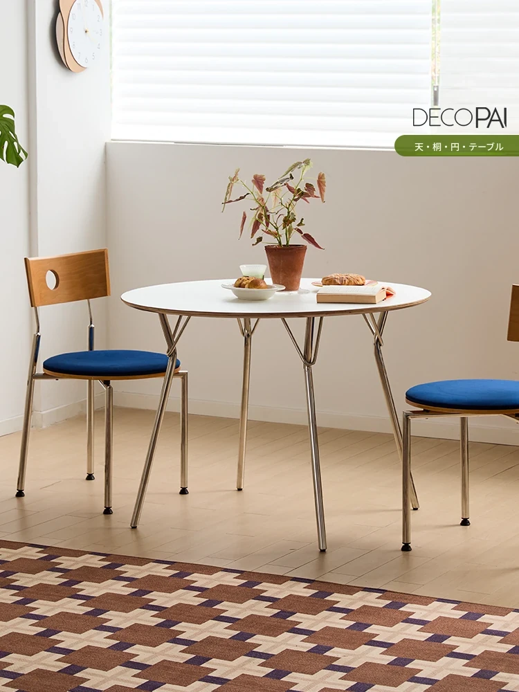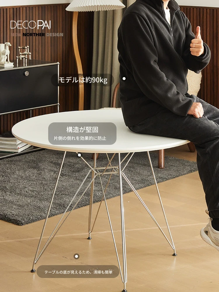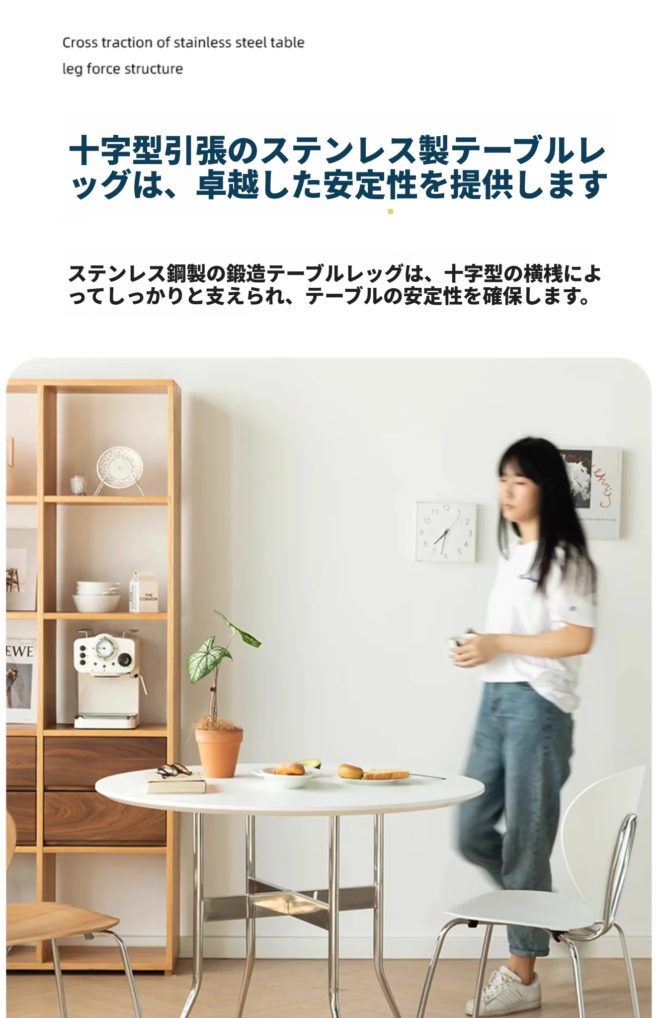 スタイリッシュな円形ステンレス製ダイニングテーブルセット|ミニマリストデザインのモダンな家庭用|シンプルで洗練された食卓を演出する鉄製家具!