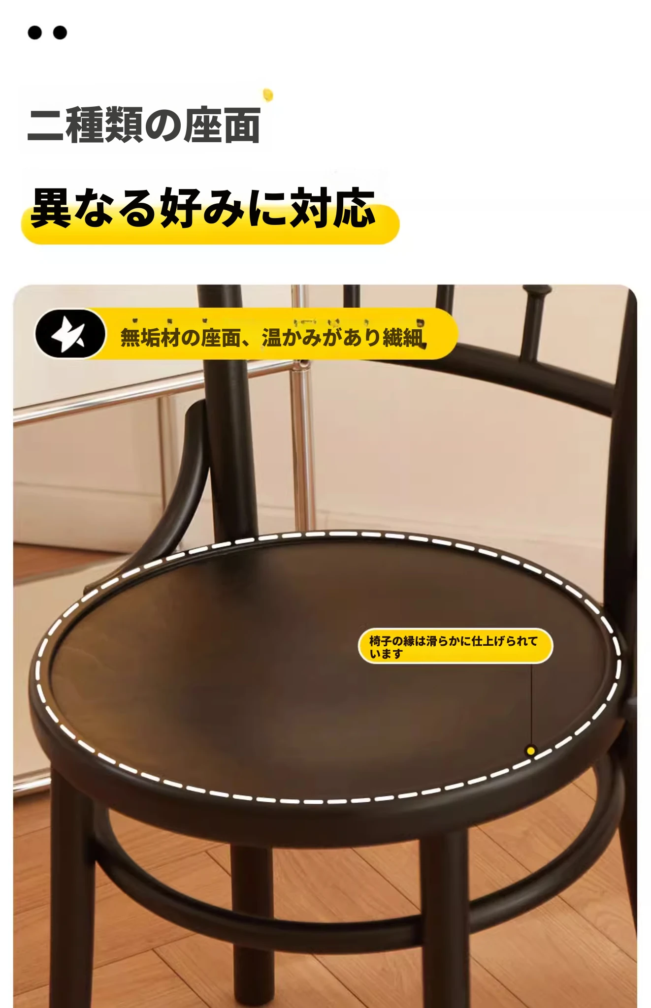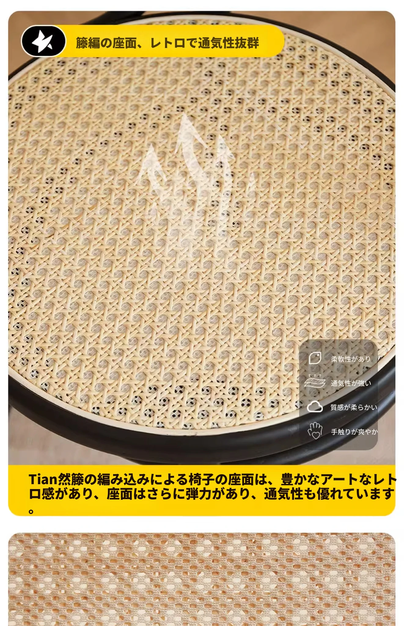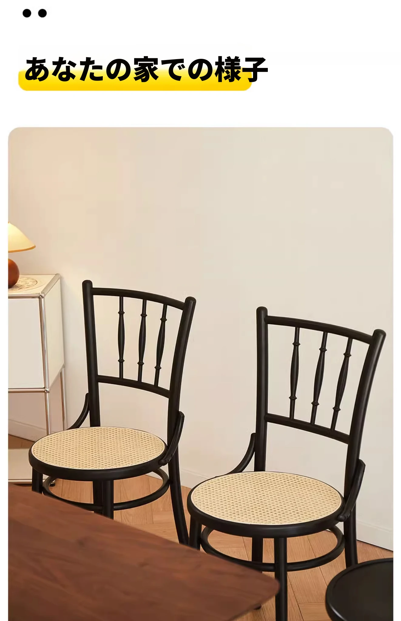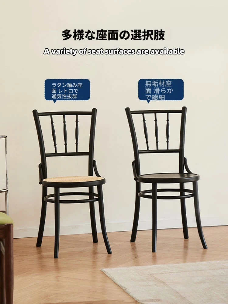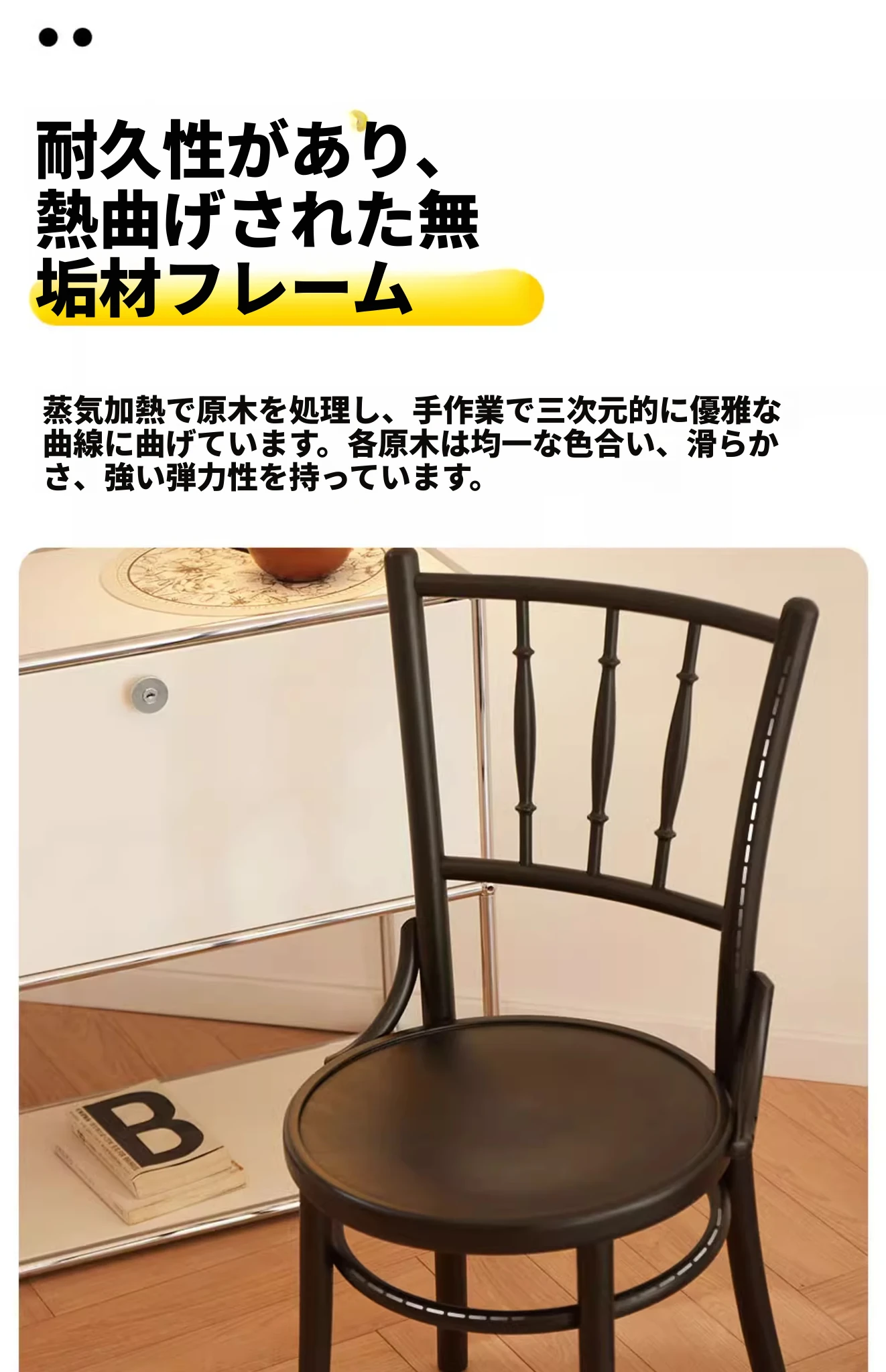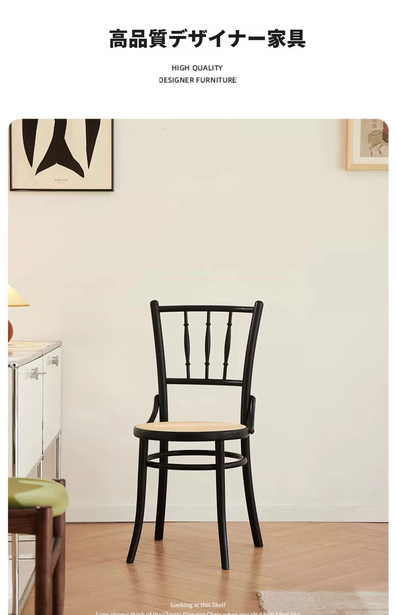 北欧スタイルの無垢材ダイニングチェア - おしゃれな背もたれ付き、家庭用に最適!ヴィンテージトン編みデザインで、化粧椅子としても使える。お部屋を素敵に演出するアイテムです!