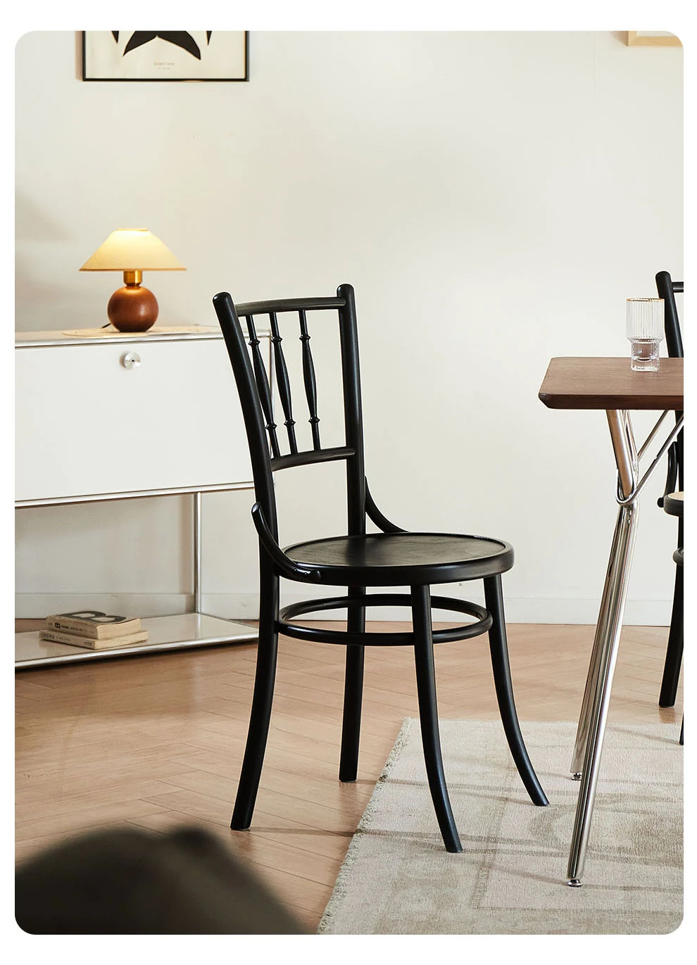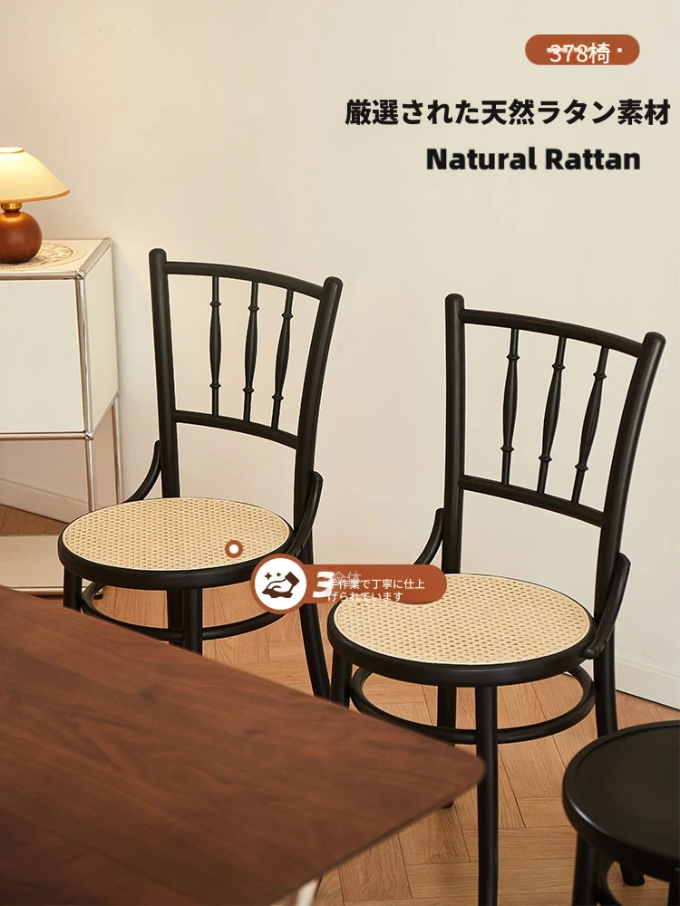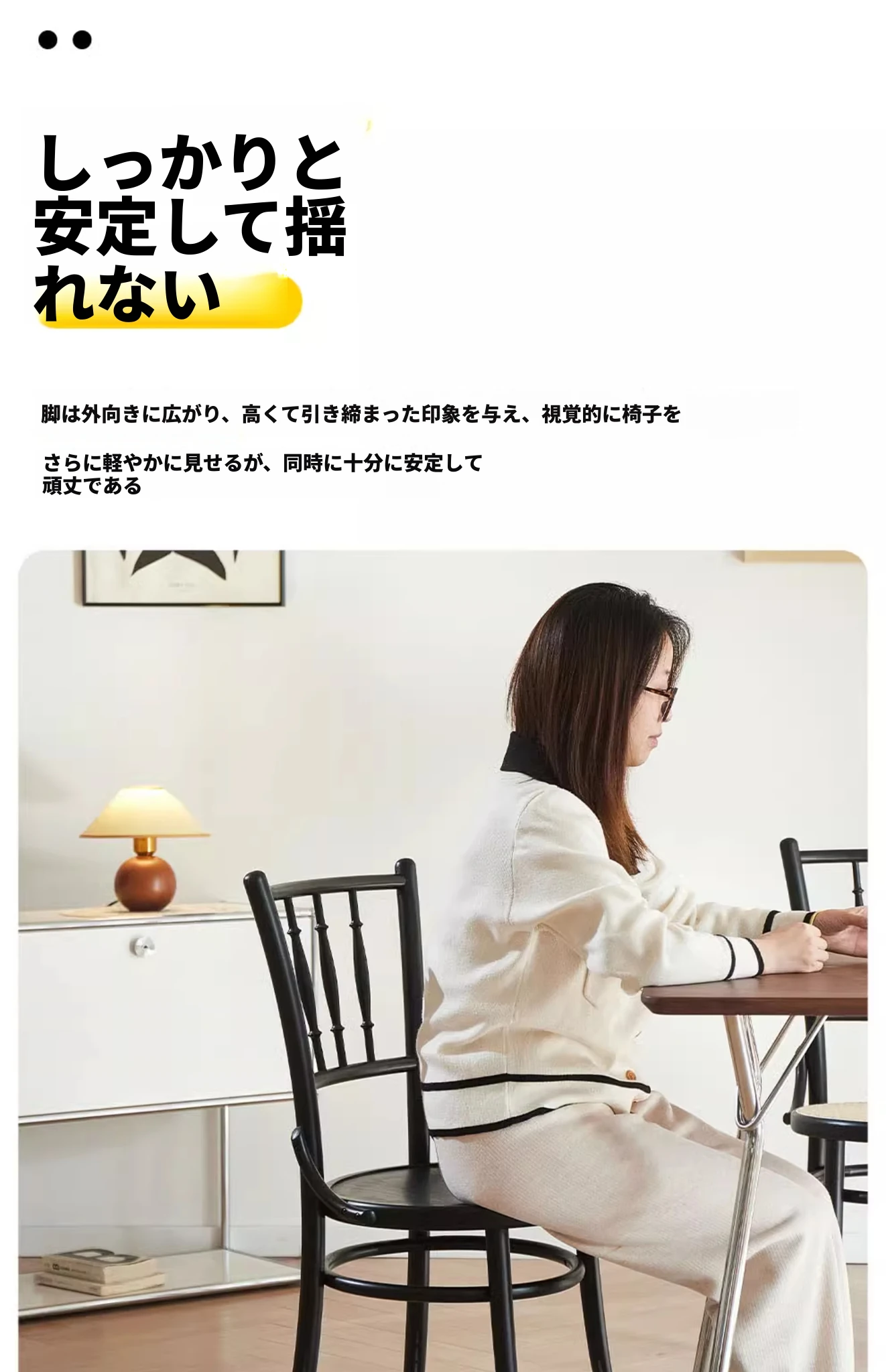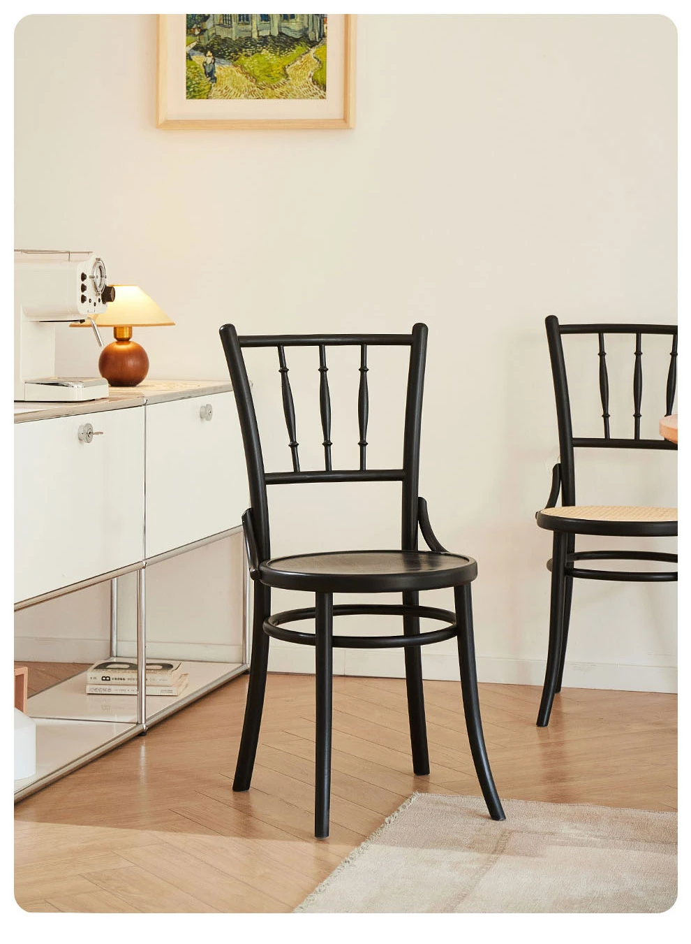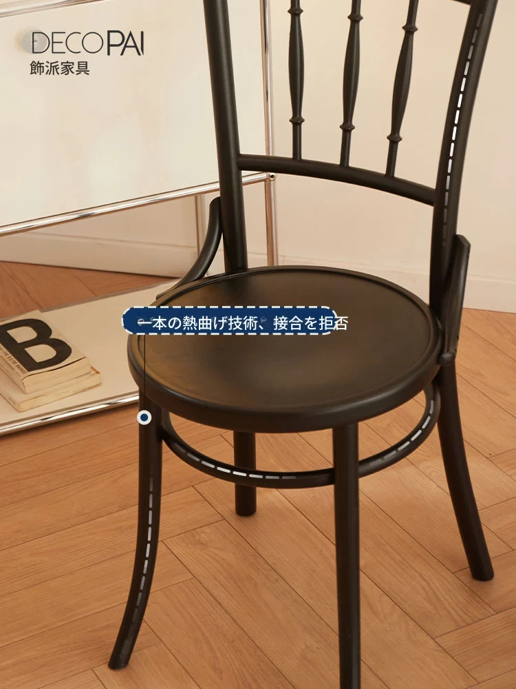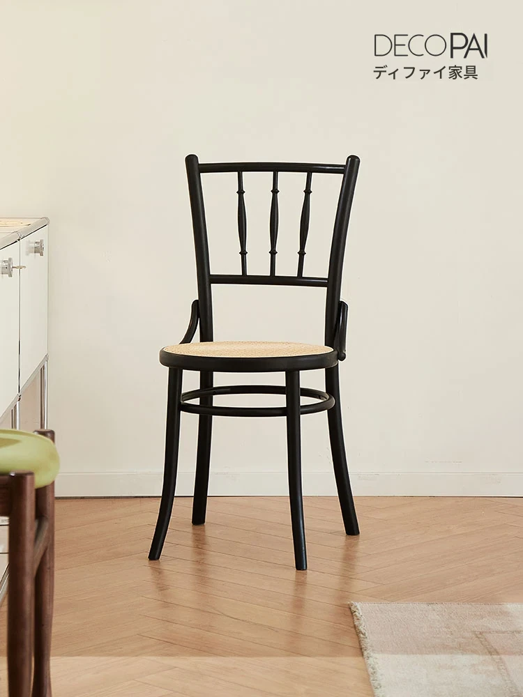 北欧スタイルの無垢材ダイニングチェア - おしゃれな背もたれ付き、家庭用に最適!ヴィンテージトン編みデザインで、化粧椅子としても使える。お部屋を素敵に演出するアイテムです!