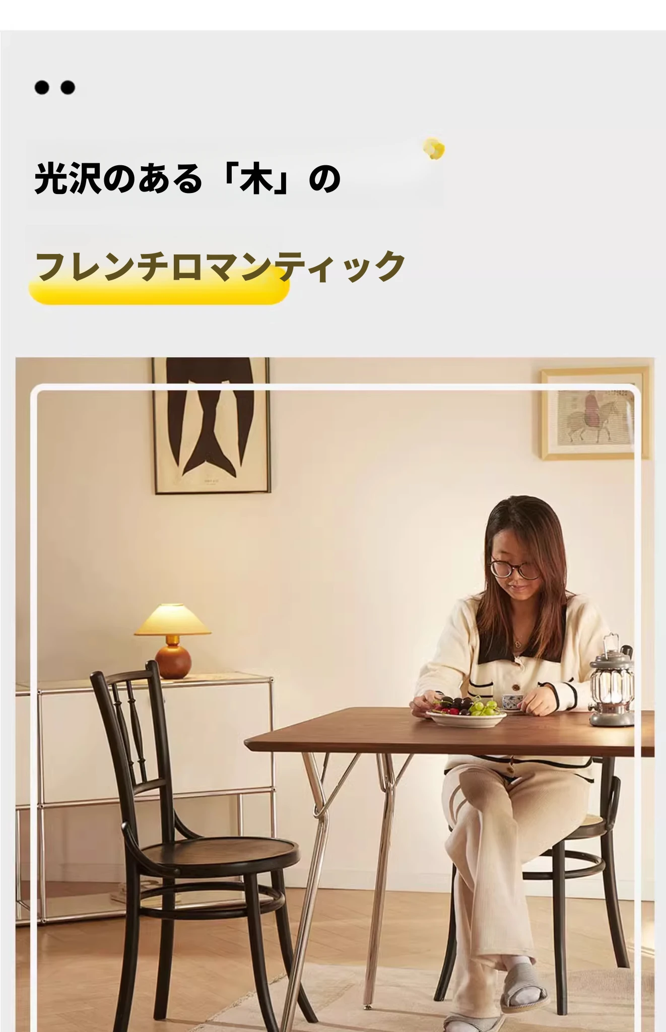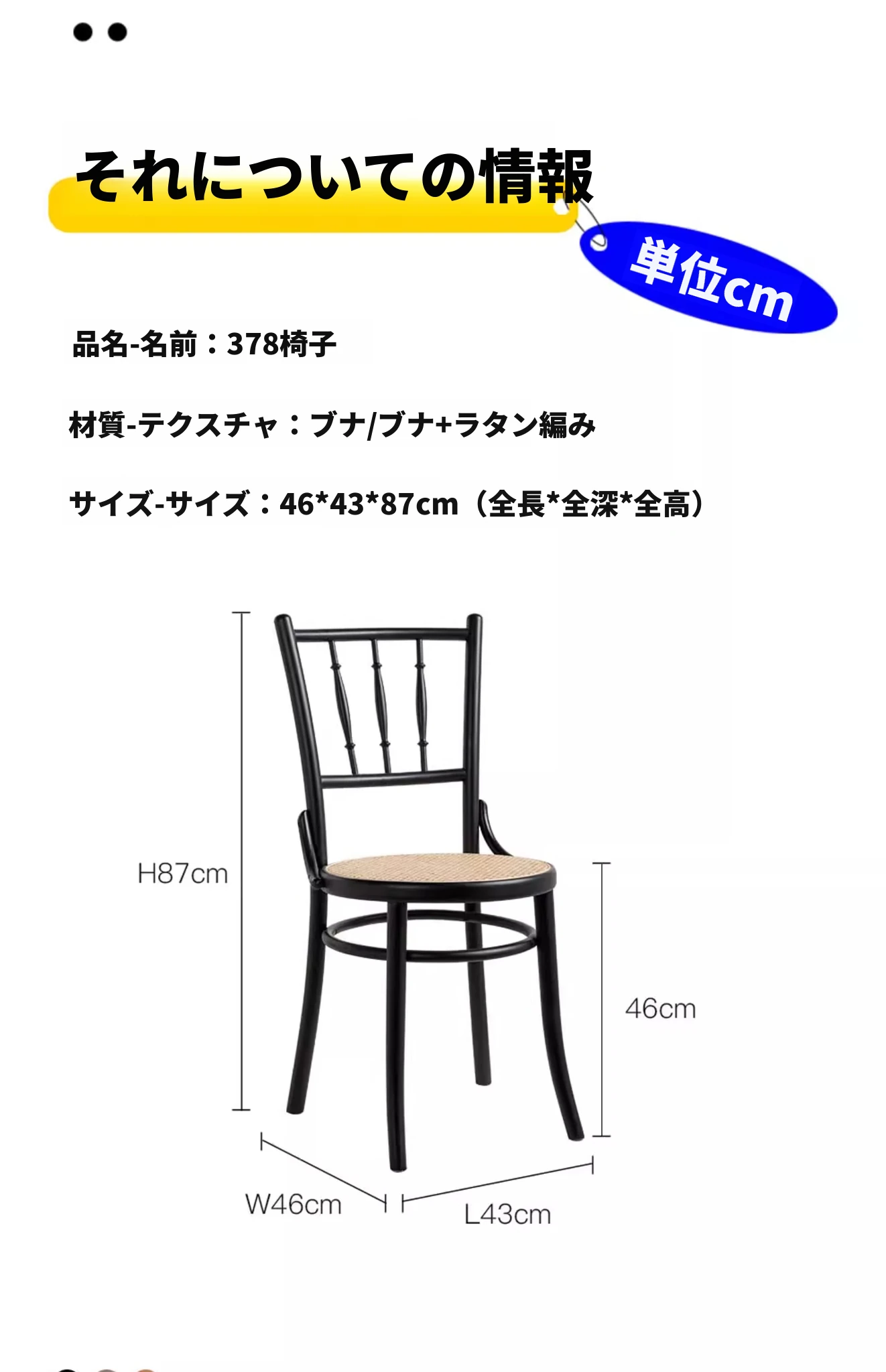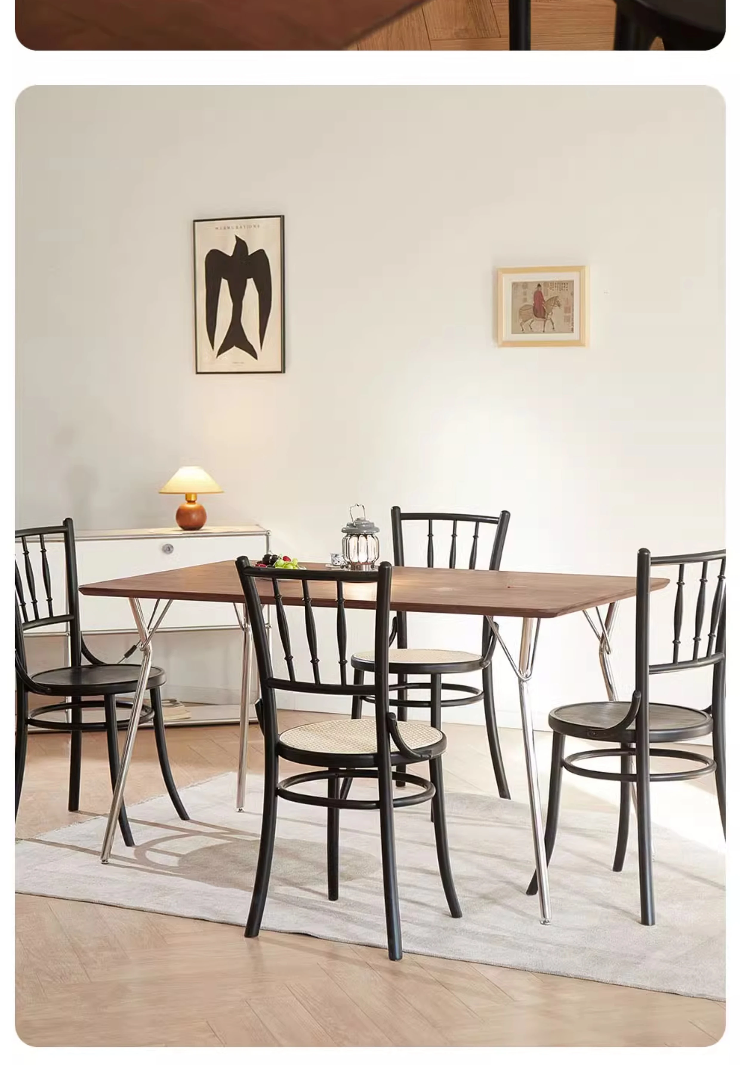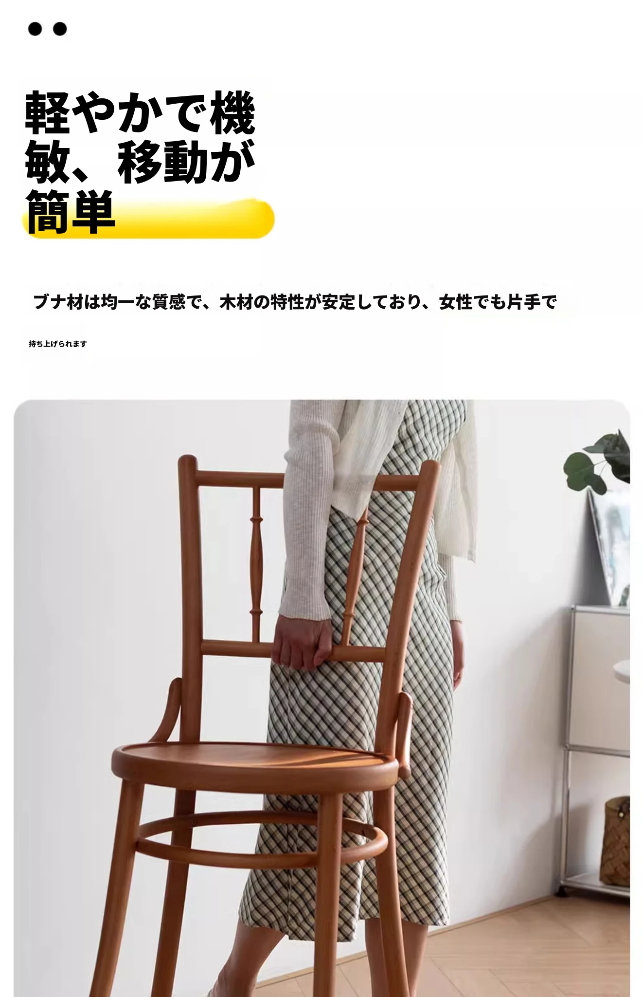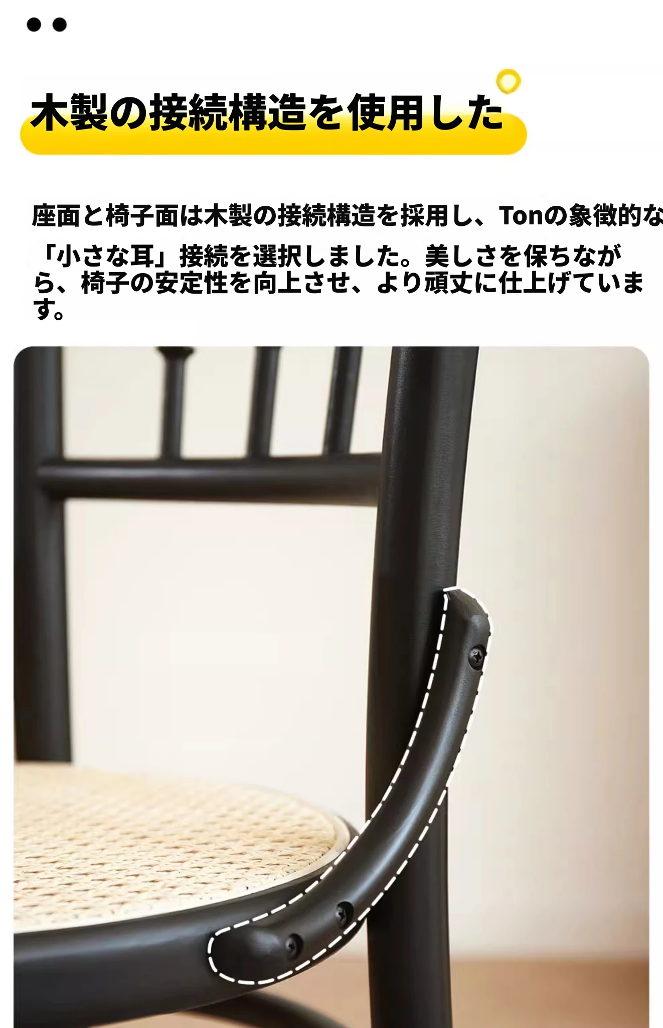 北欧スタイルの無垢材ダイニングチェア - おしゃれな背もたれ付き、家庭用に最適!ヴィンテージトン編みデザインで、化粧椅子としても使える。お部屋を素敵に演出するアイテムです!