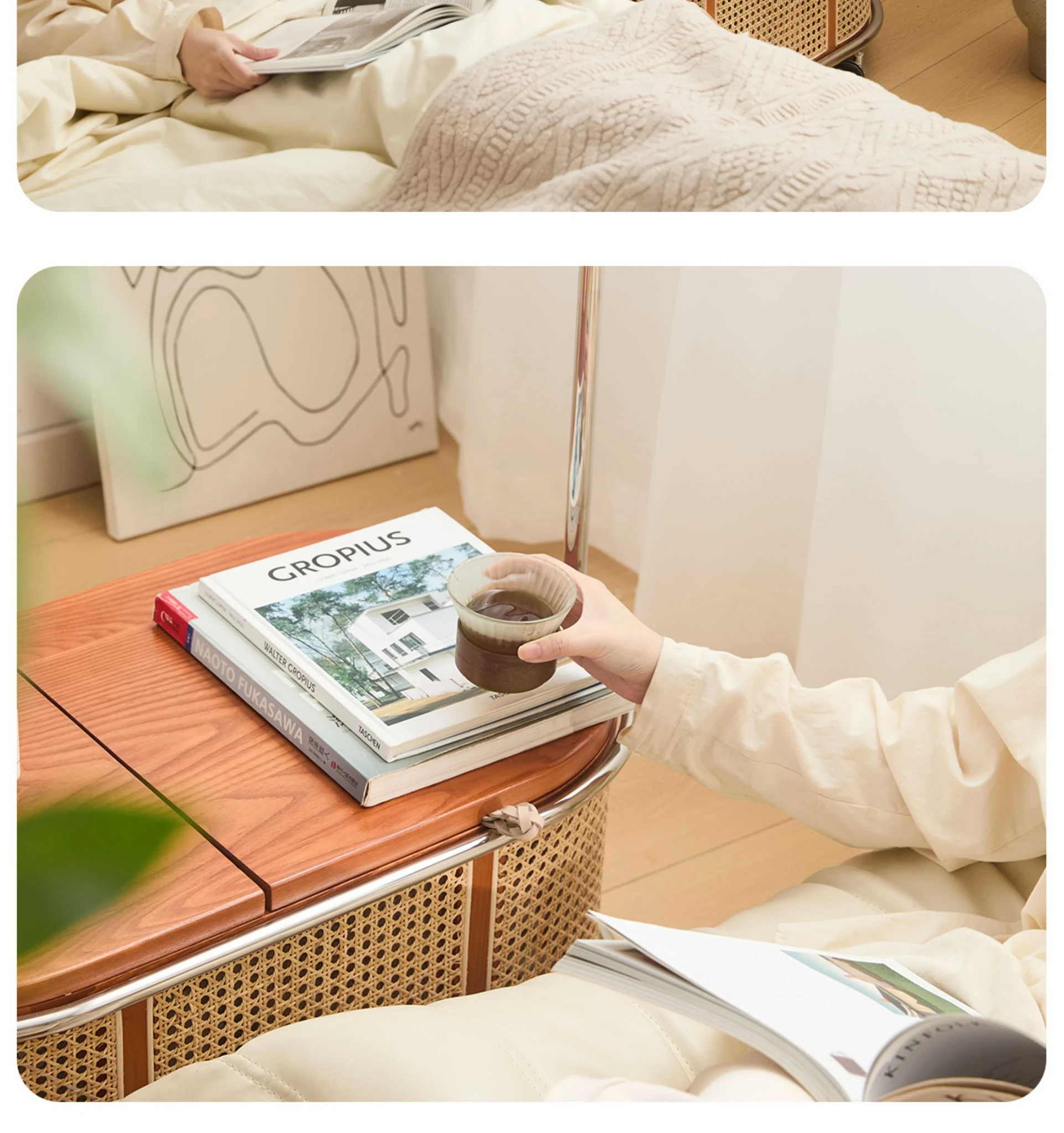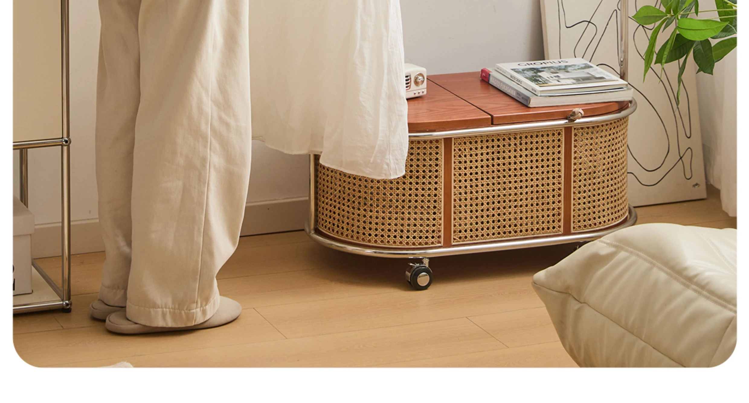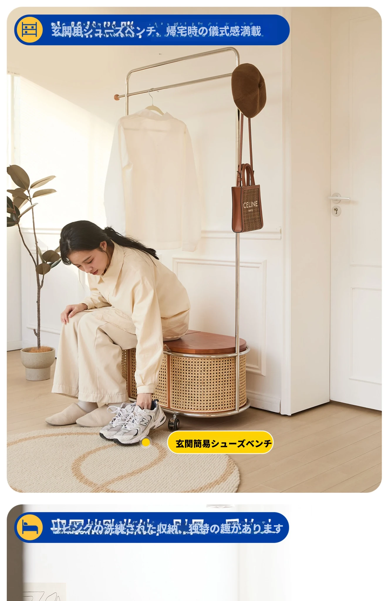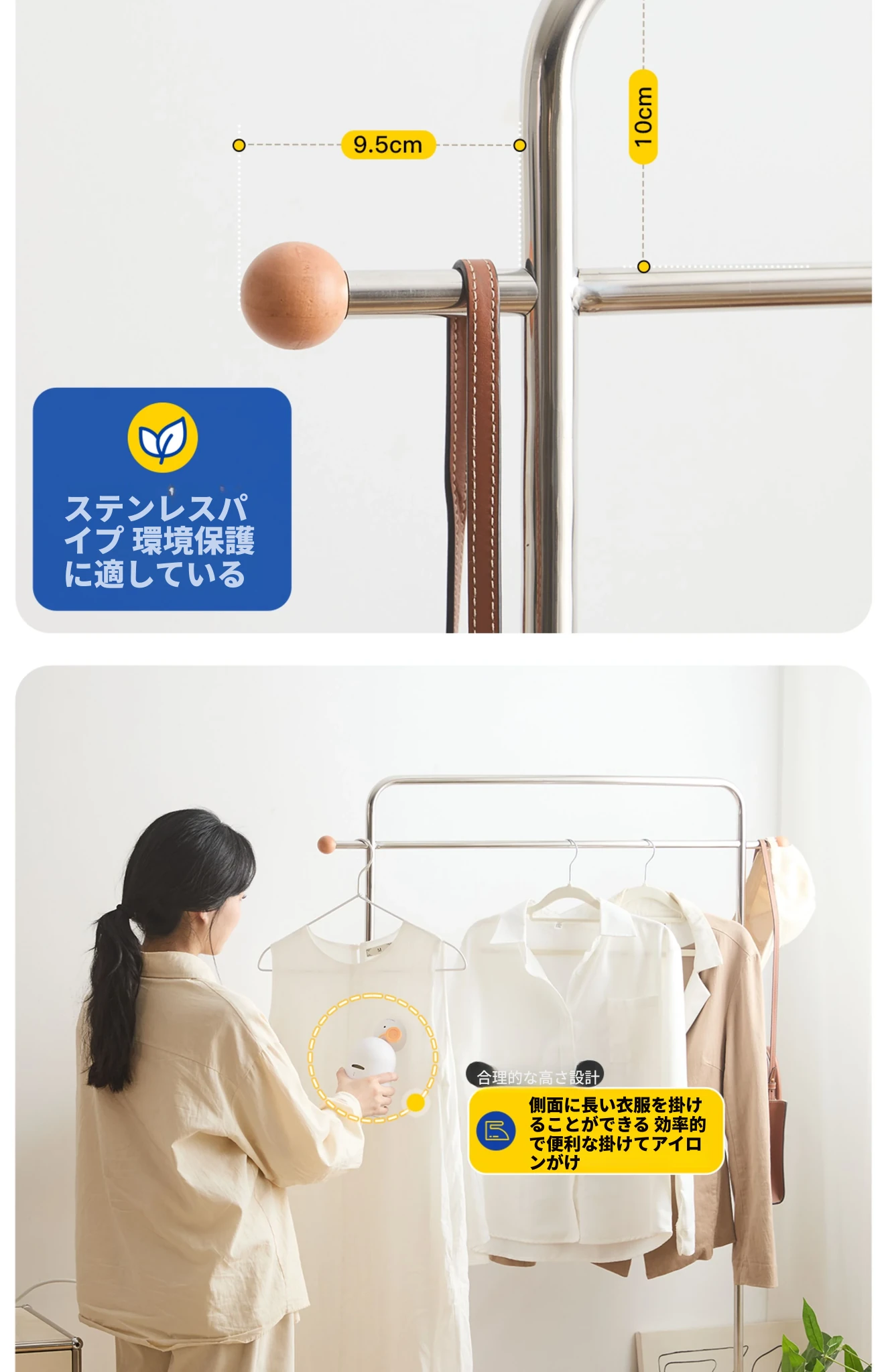 おしゃれな籐編みと無垢材の組み合わせ!シンプルで使いやすいベッドサイドのスタンド型マルチ機能衣類ハンガー。寝室にぴったりの、移動可能なデザインでお部屋をスッキリ整頓!
