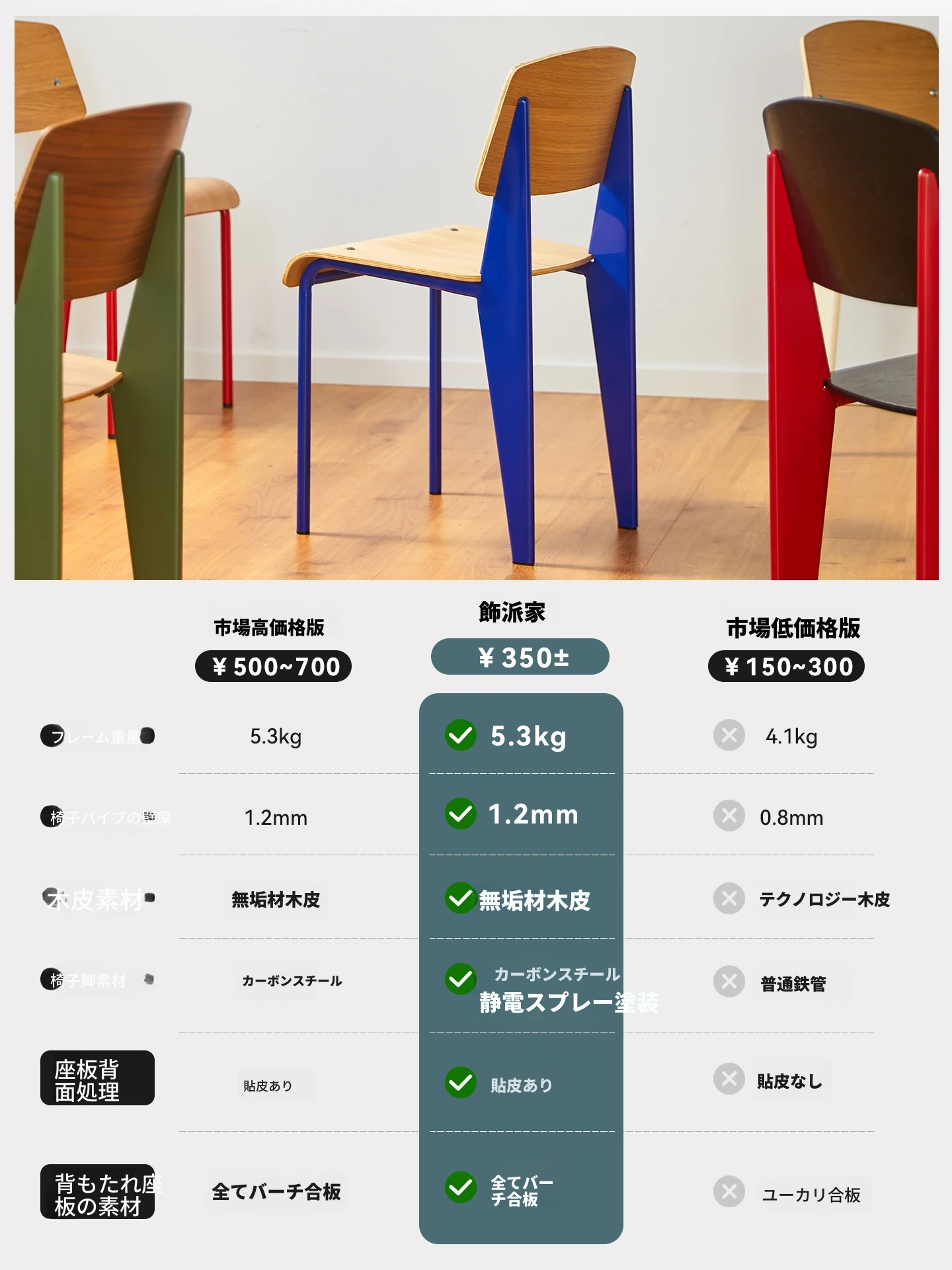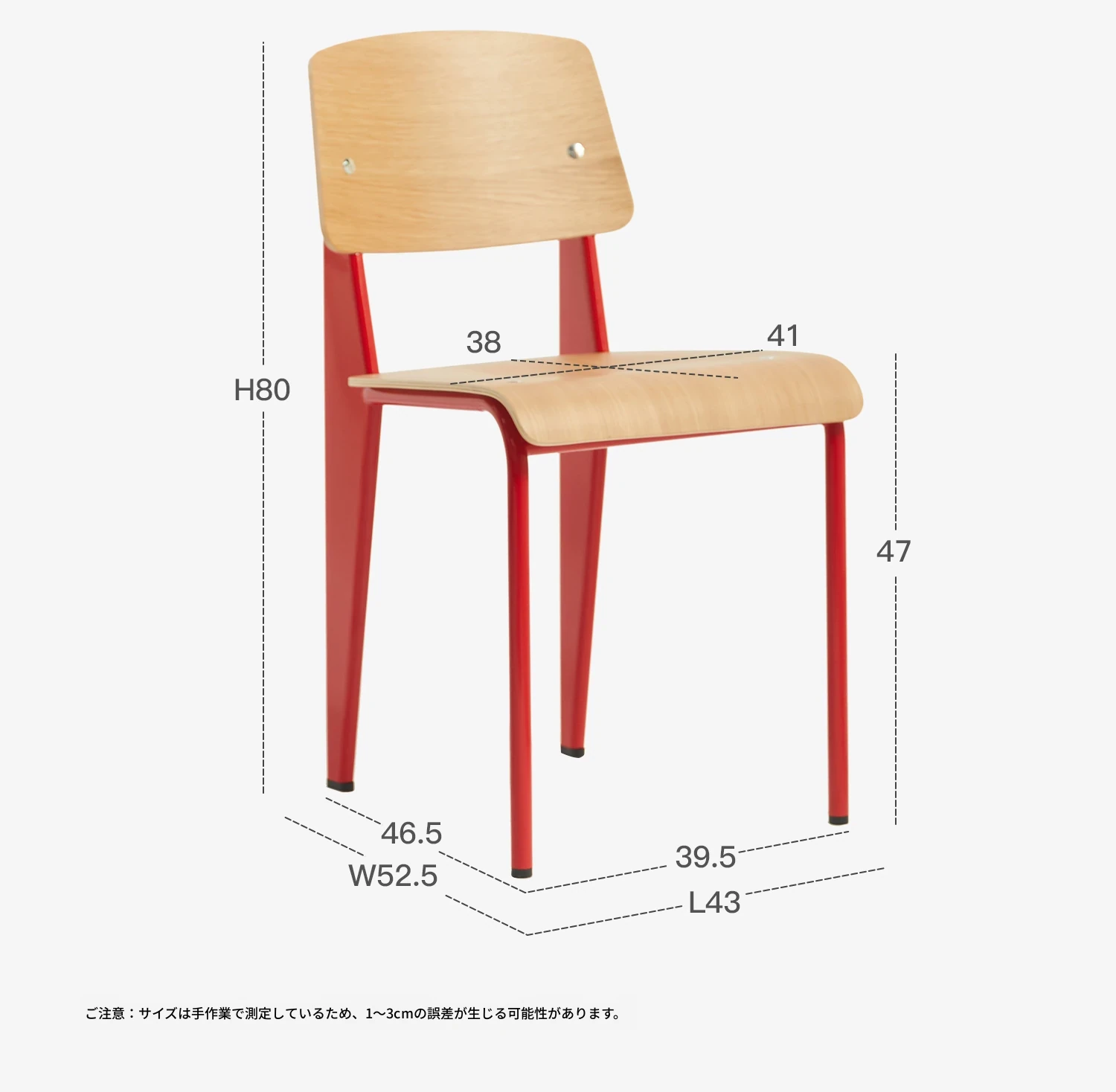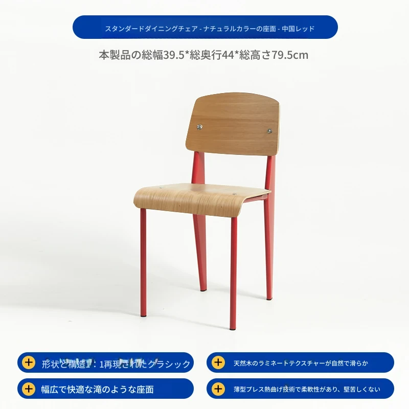 標準ダイニングチェア - ナチュラルカラー座面 - 中国レッド