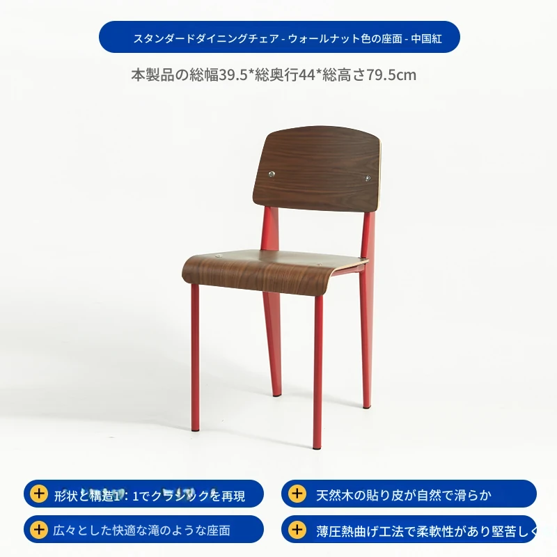 標準ダイニングチェア - ウォールナットカラー座面 - 中国レッド