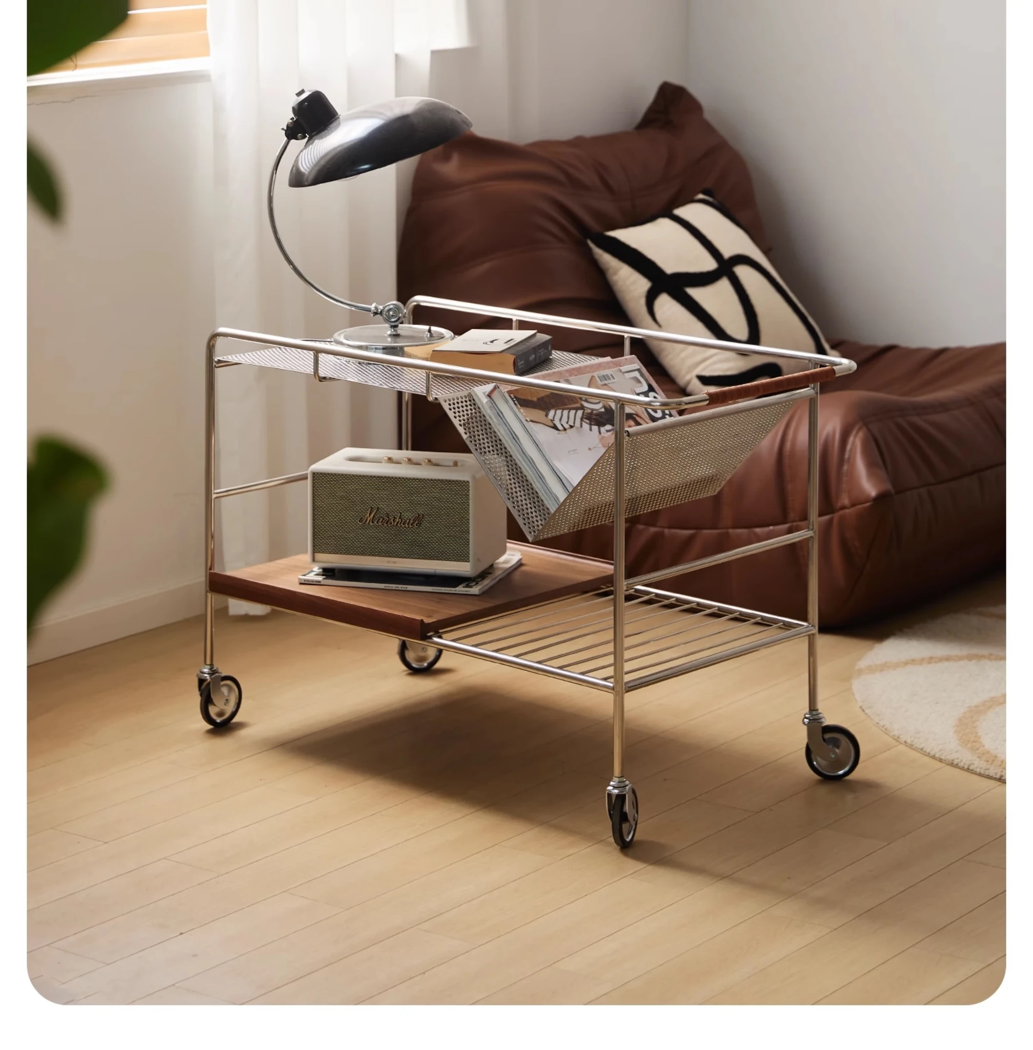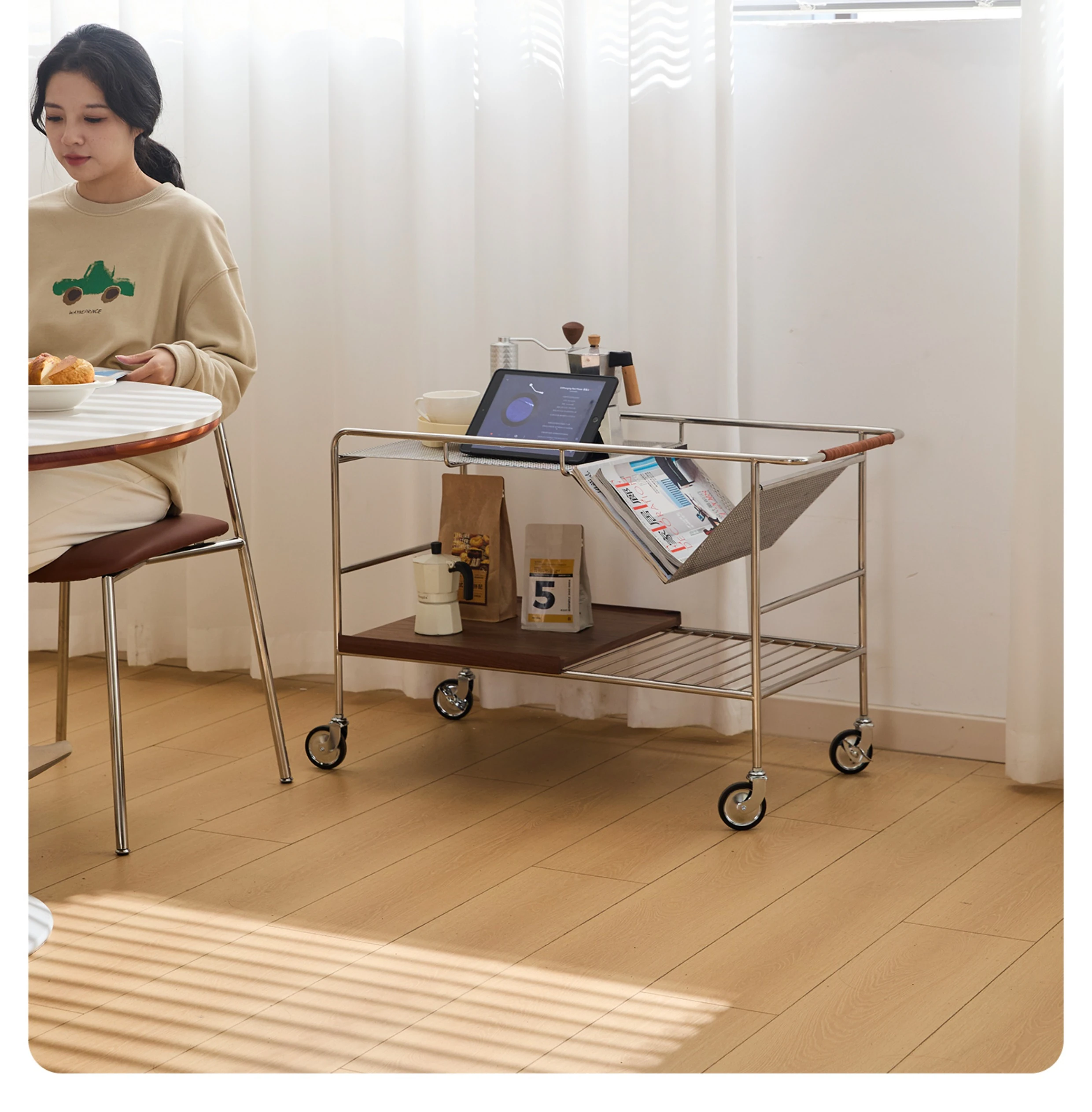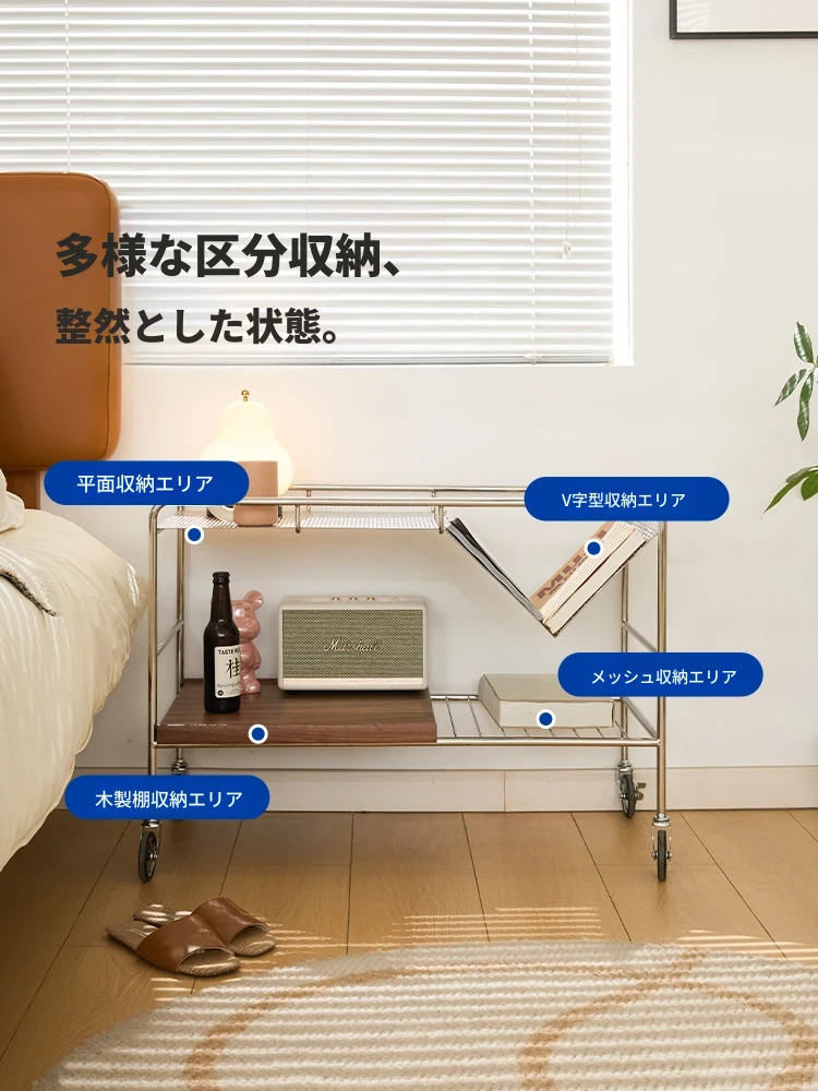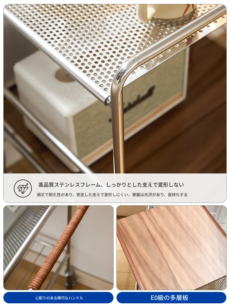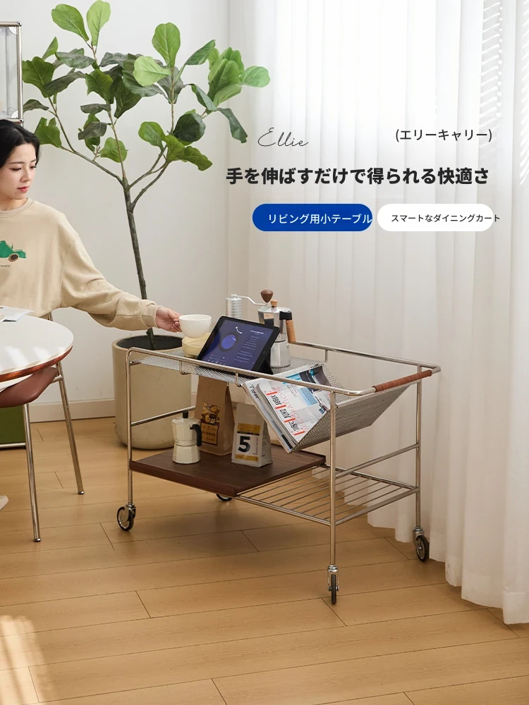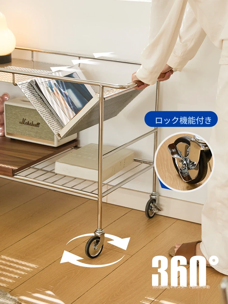 中古の移動式ソファサイドテーブル|ステンレス製のコンパクトな収納カート|リビングにぴったりなトレンディなティーテーブル|創造的な小型ダイニングカートでおしゃれな空間を演出!