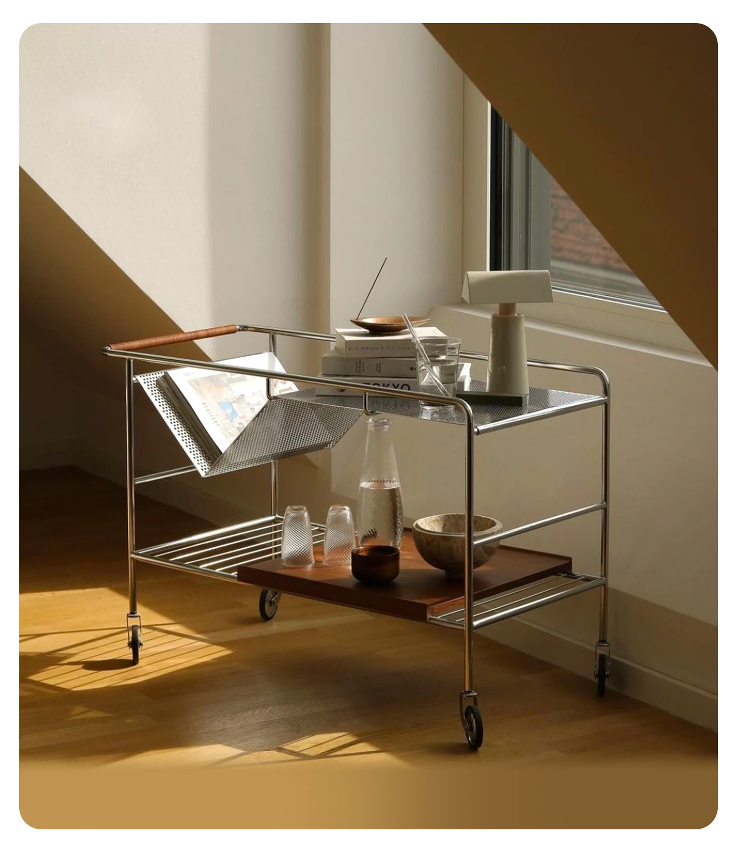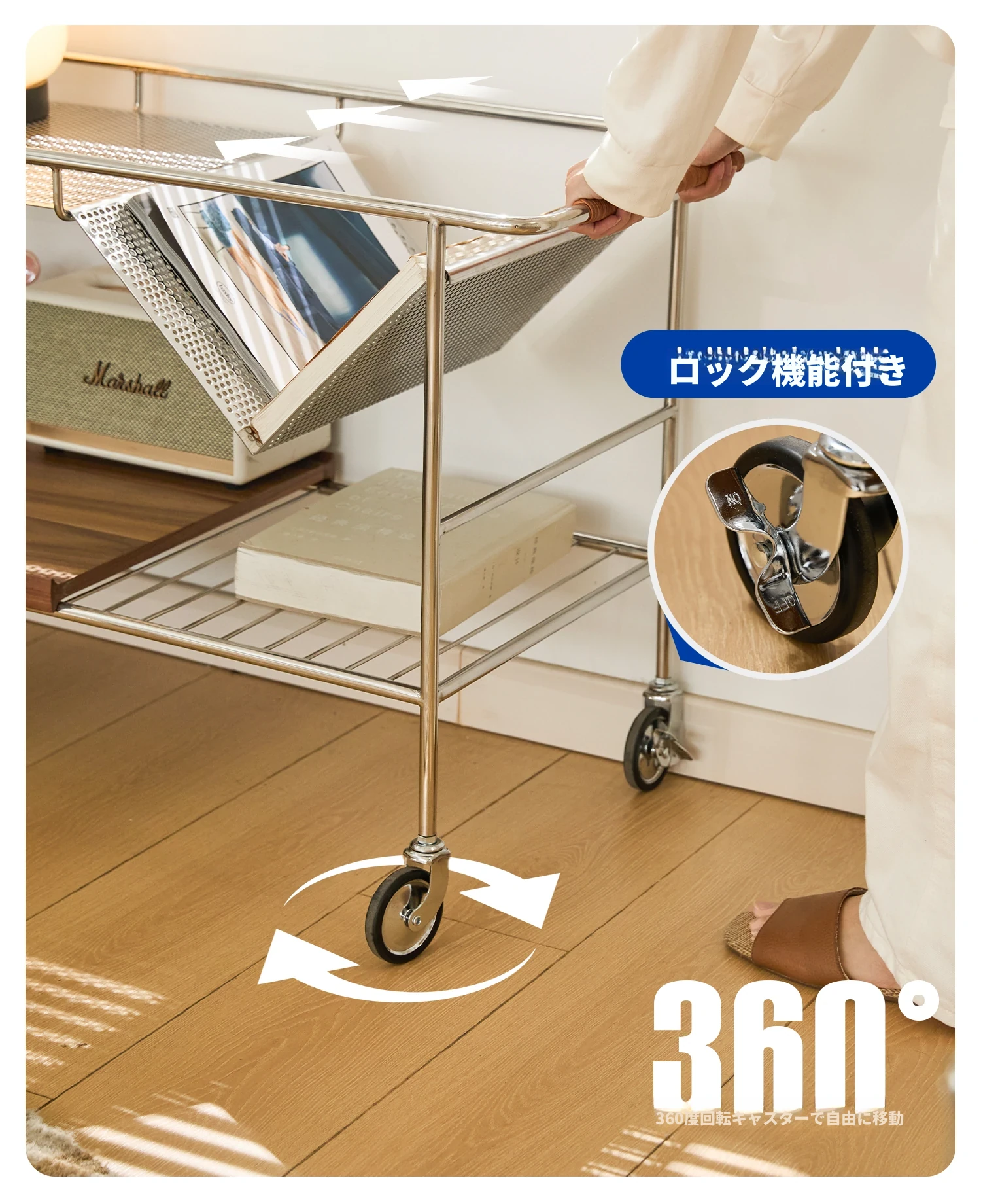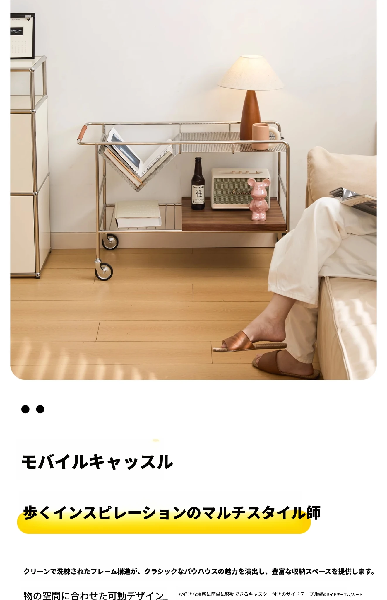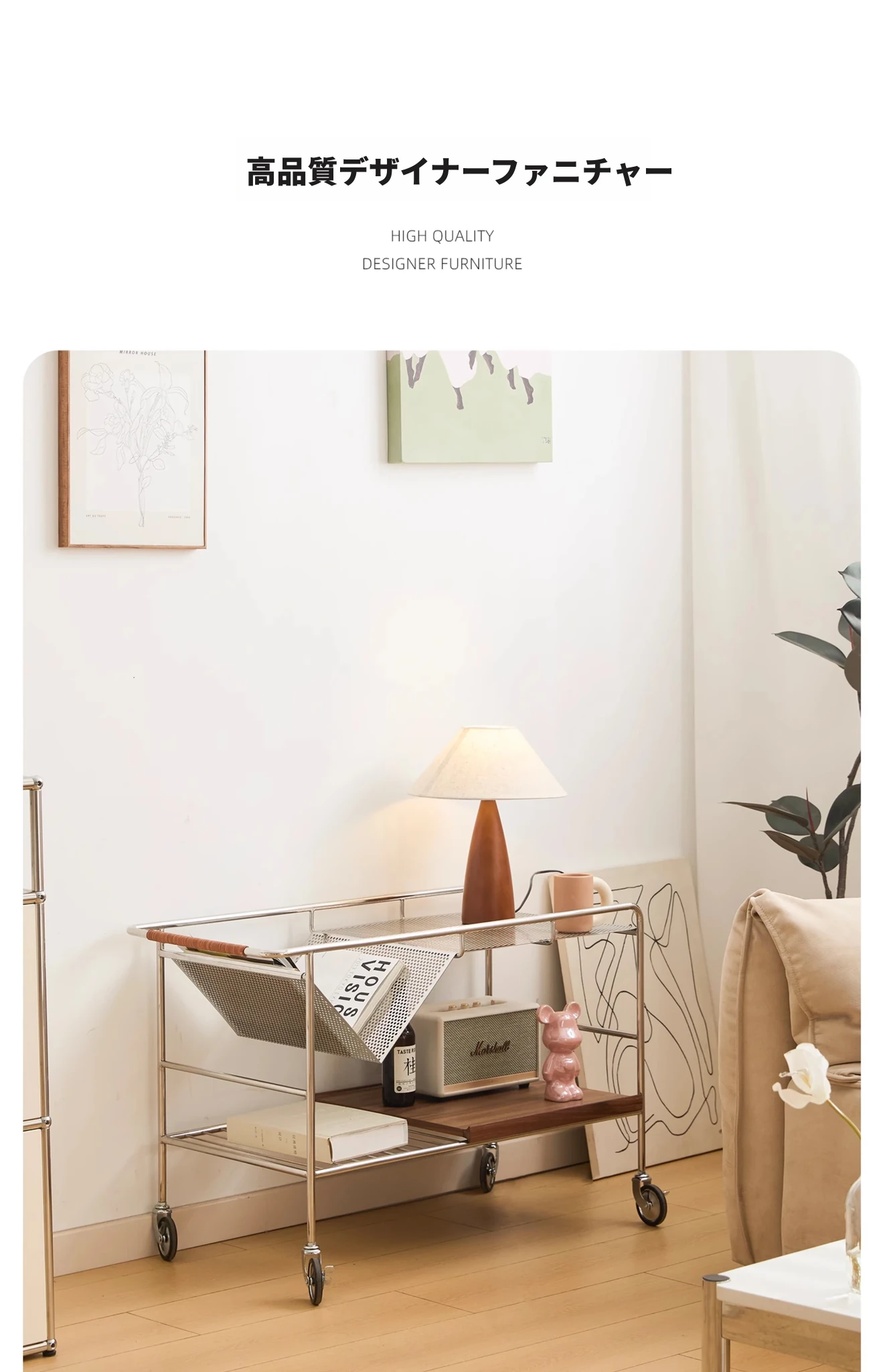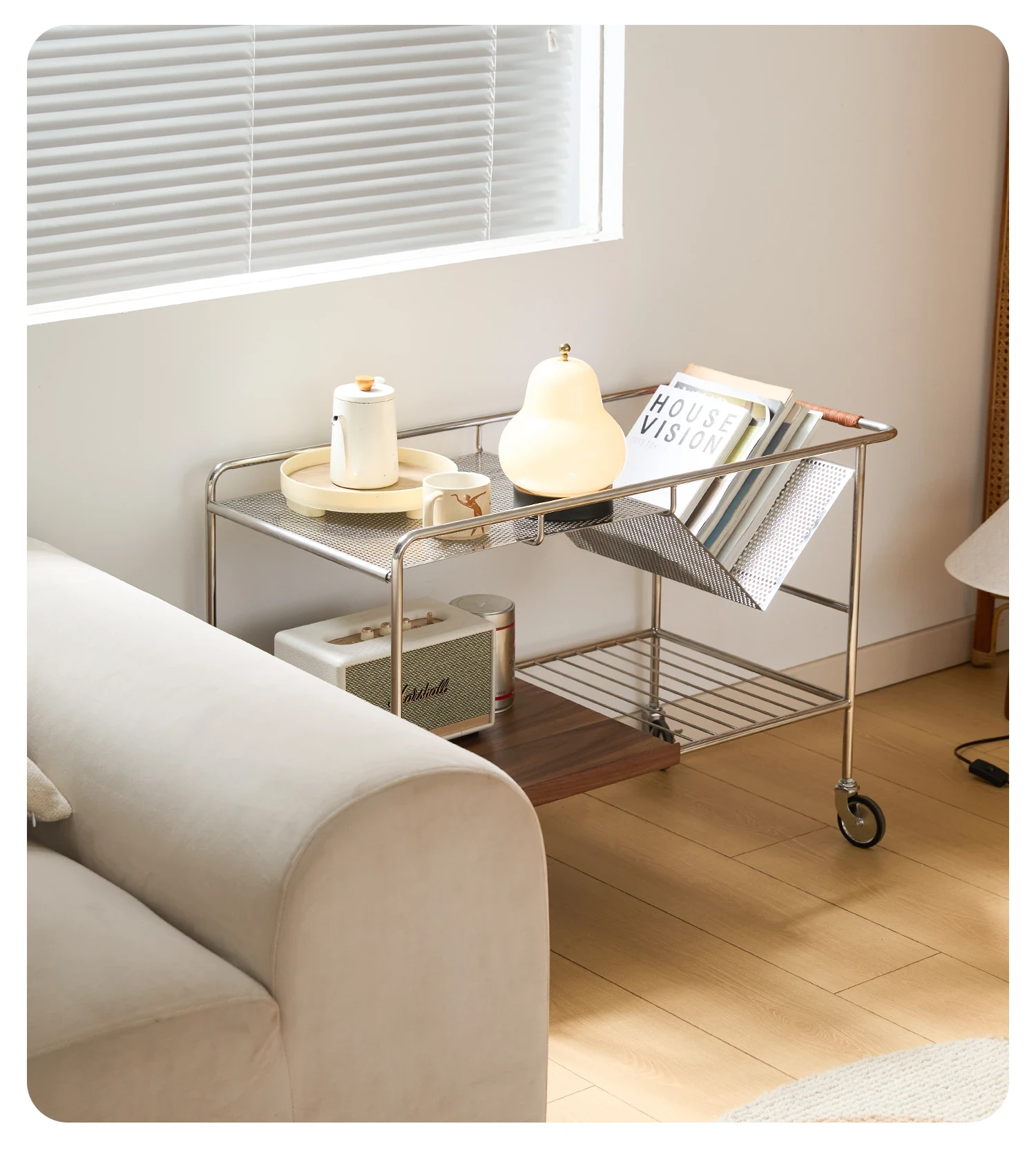 中古の移動式ソファサイドテーブル|ステンレス製のコンパクトな収納カート|リビングにぴったりなトレンディなティーテーブル|創造的な小型ダイニングカートでおしゃれな空間を演出!