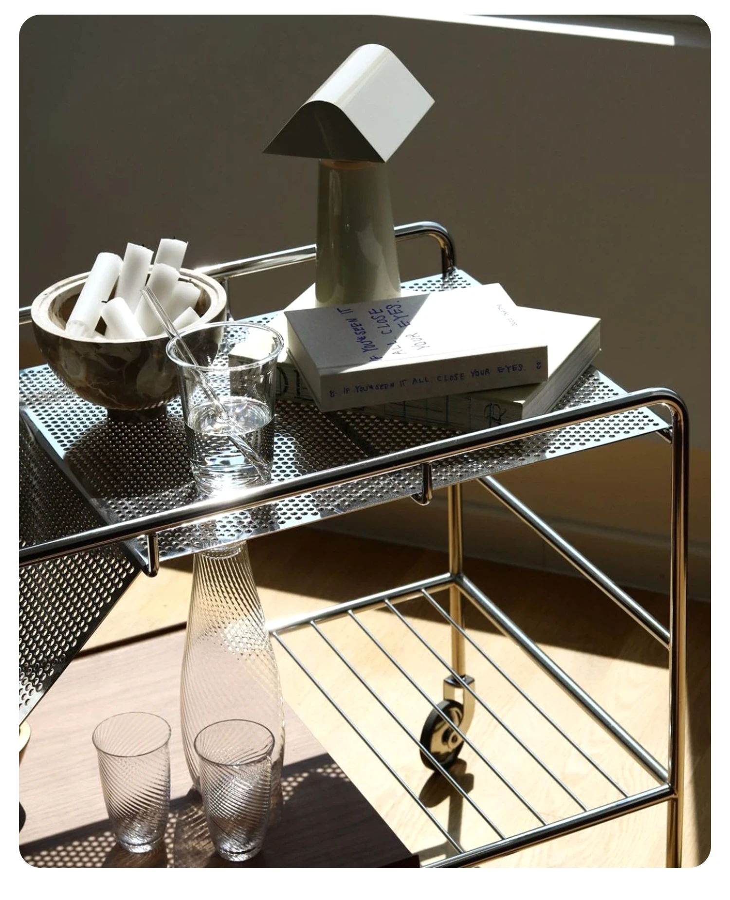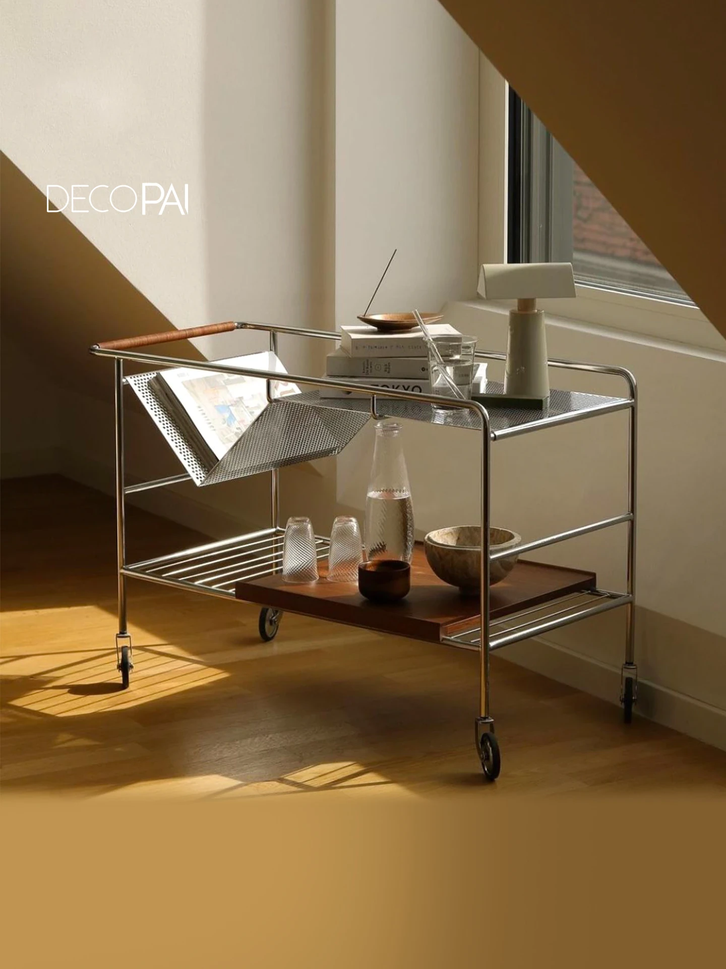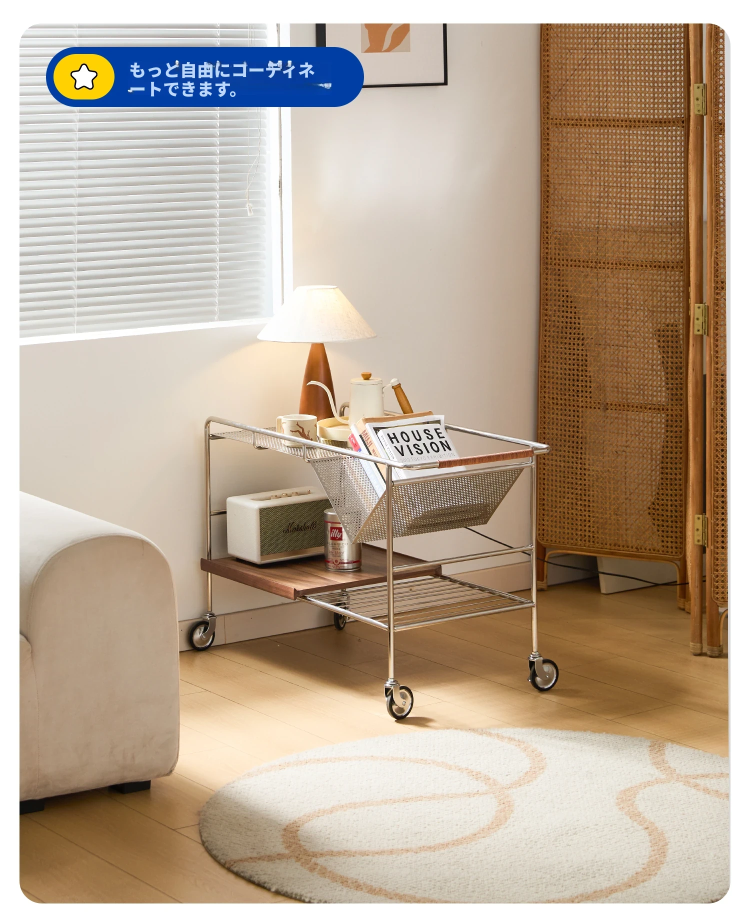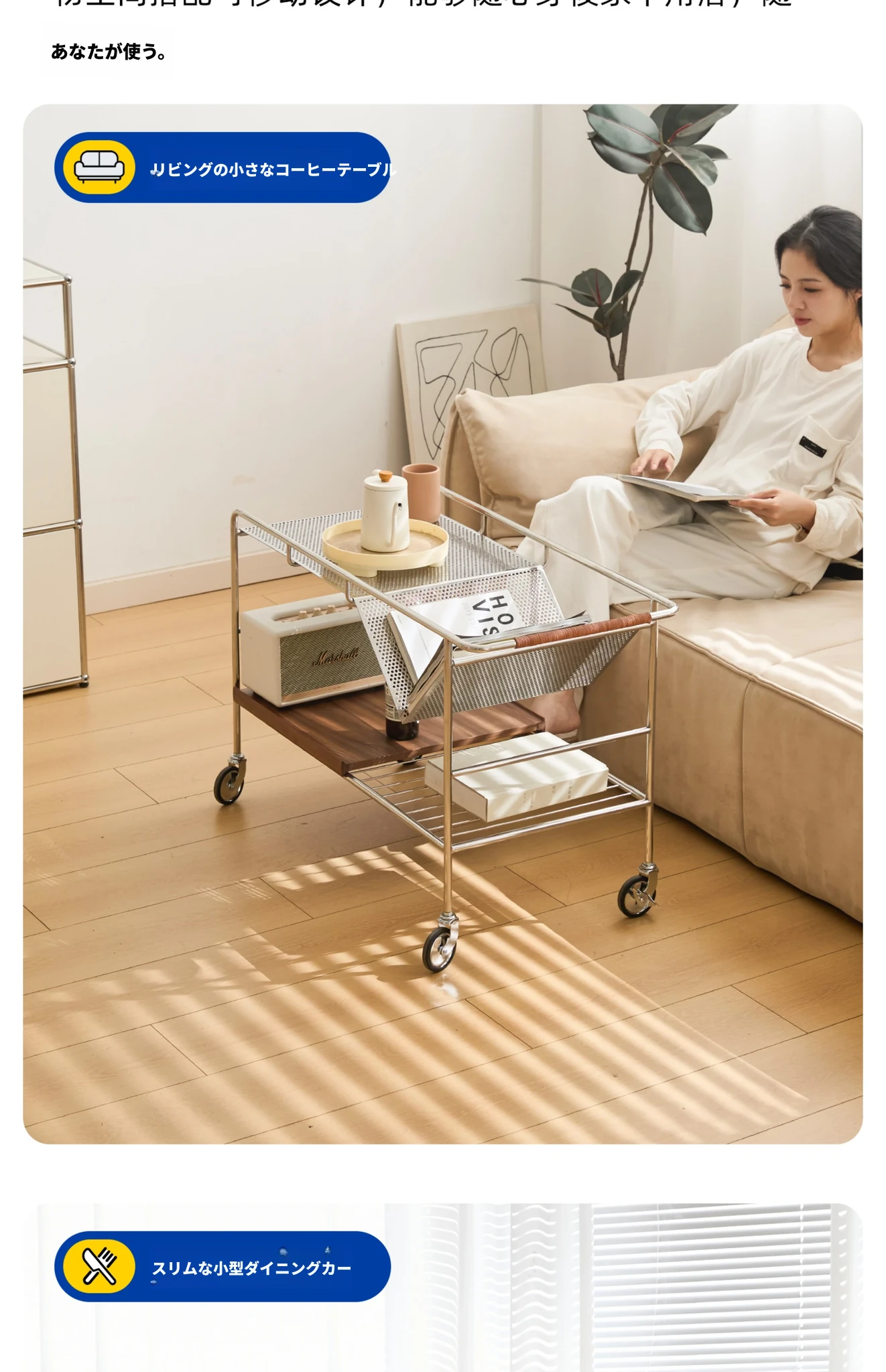 中古の移動式ソファサイドテーブル|ステンレス製のコンパクトな収納カート|リビングにぴったりなトレンディなティーテーブル|創造的な小型ダイニングカートでおしゃれな空間を演出!
