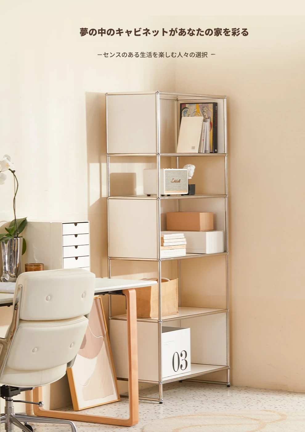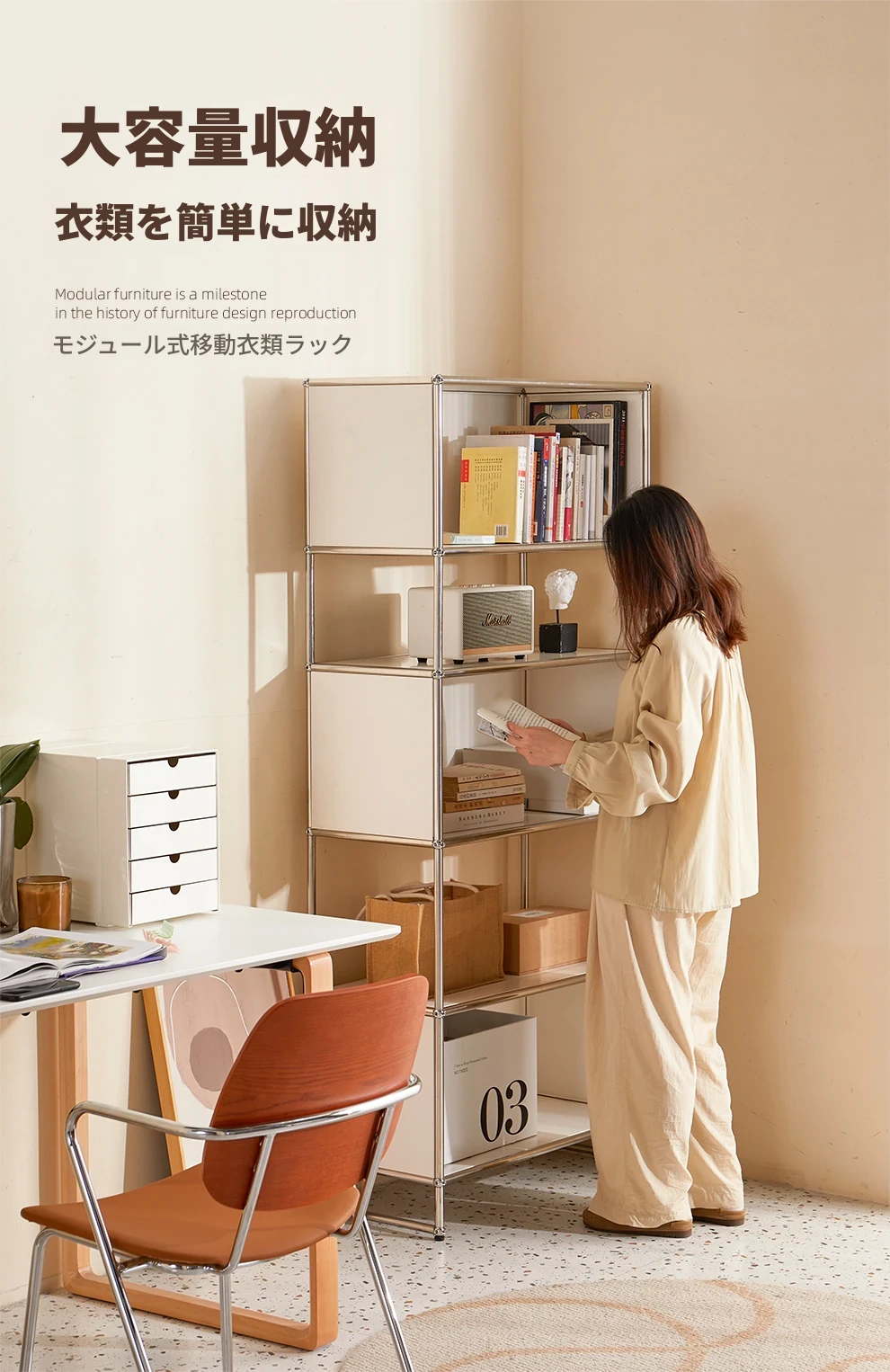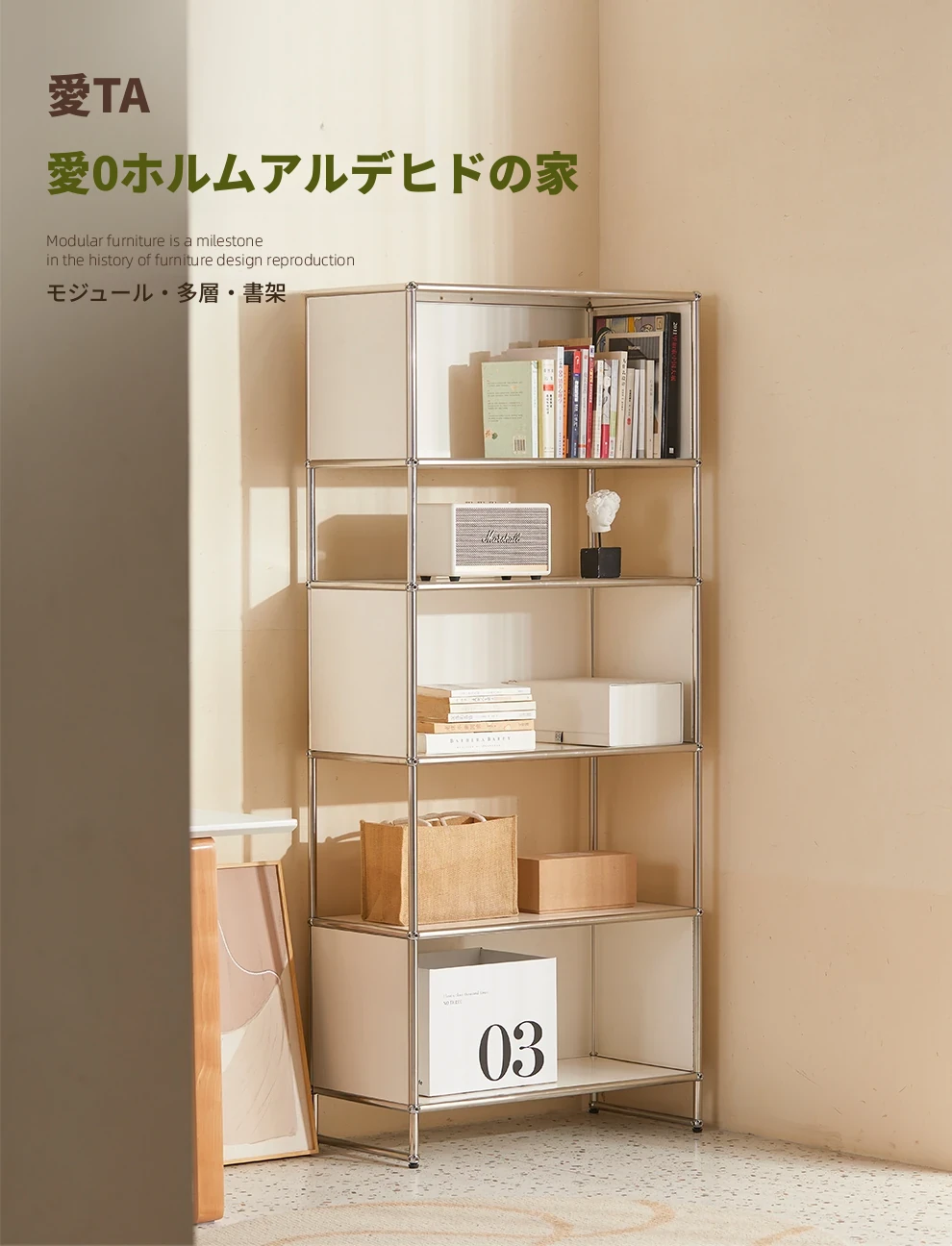 スタイリッシュなUSMモジュラー書棚 - 自由に組み合わせ可能なステンレス製の多層ディスプレイラック!おしゃれなインテリアで、あなたの空間をスマートに演出します。理想的な収納ソリューションを今すぐ手に入れましょう!