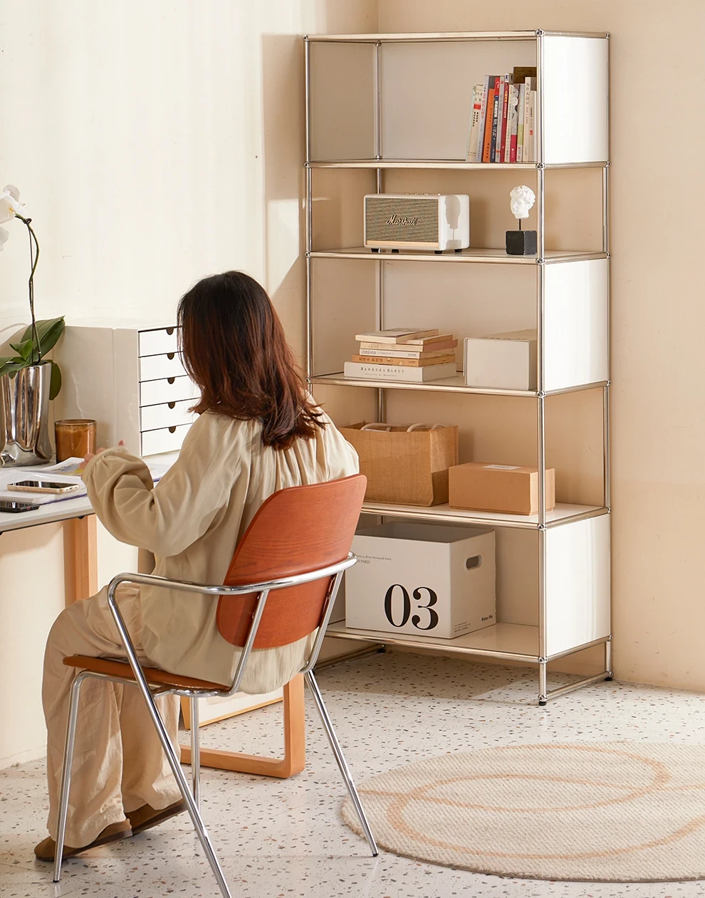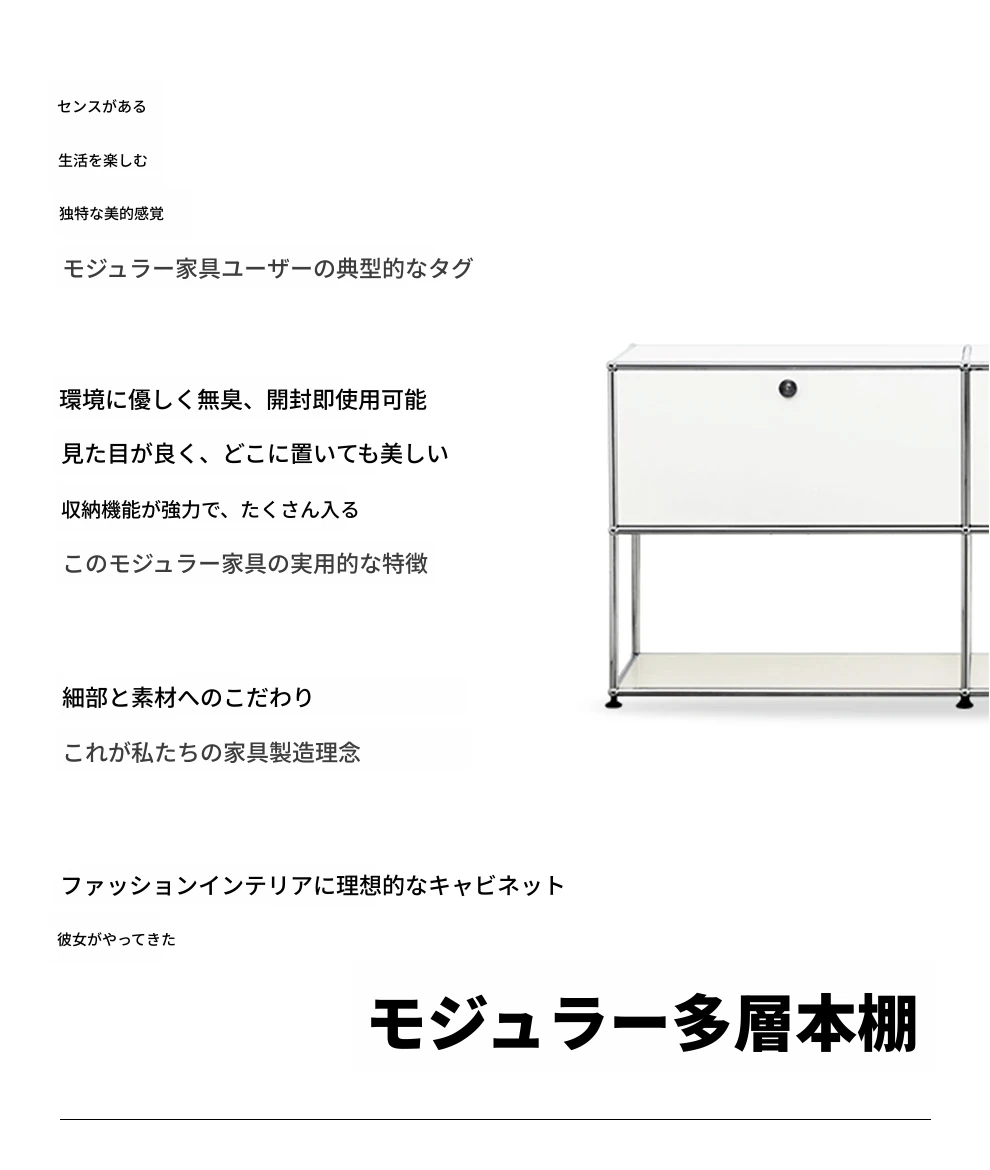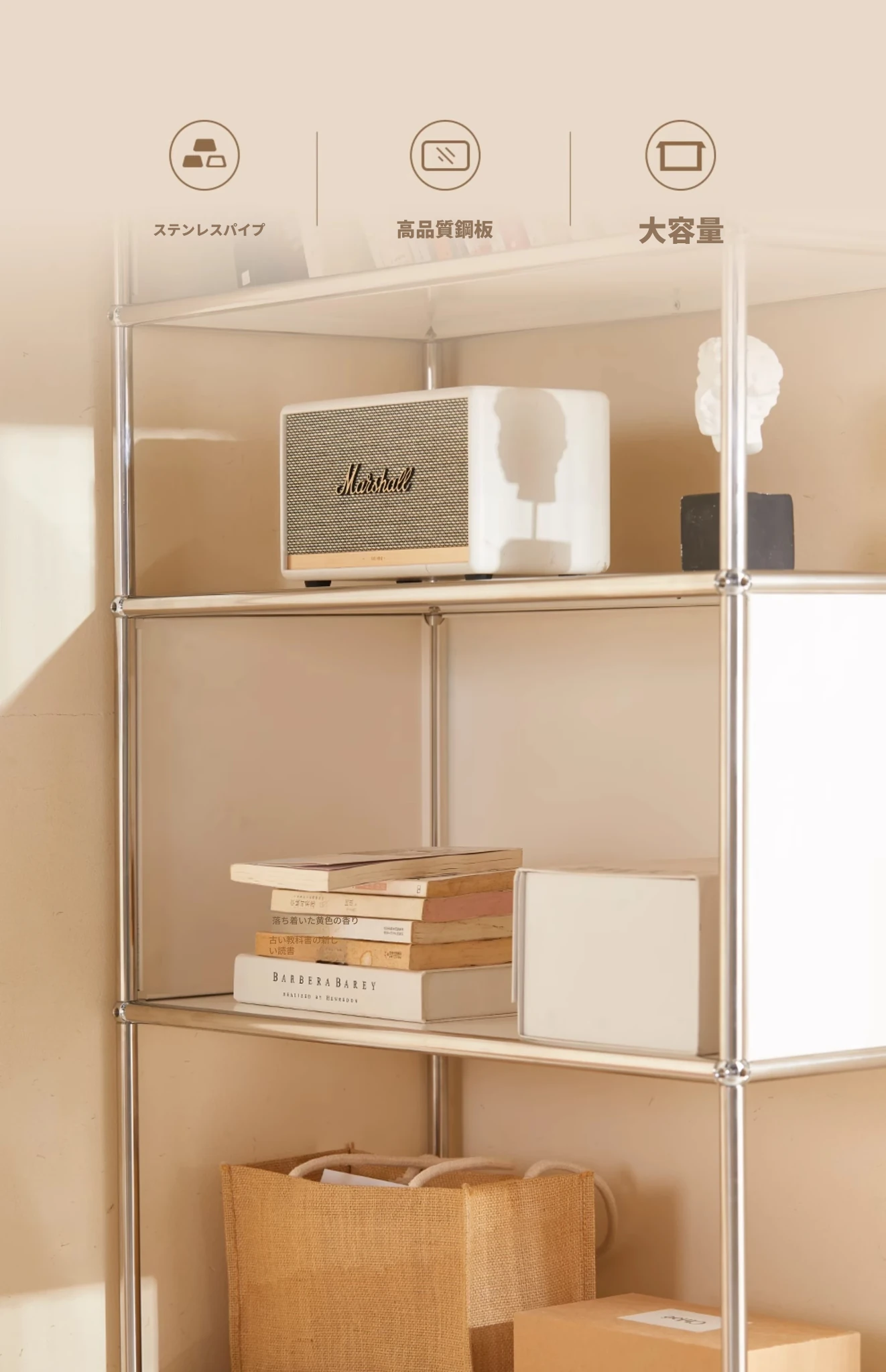 スタイリッシュなUSMモジュラー書棚 - 自由に組み合わせ可能なステンレス製の多層ディスプレイラック!おしゃれなインテリアで、あなたの空間をスマートに演出します。理想的な収納ソリューションを今すぐ手に入れましょう!